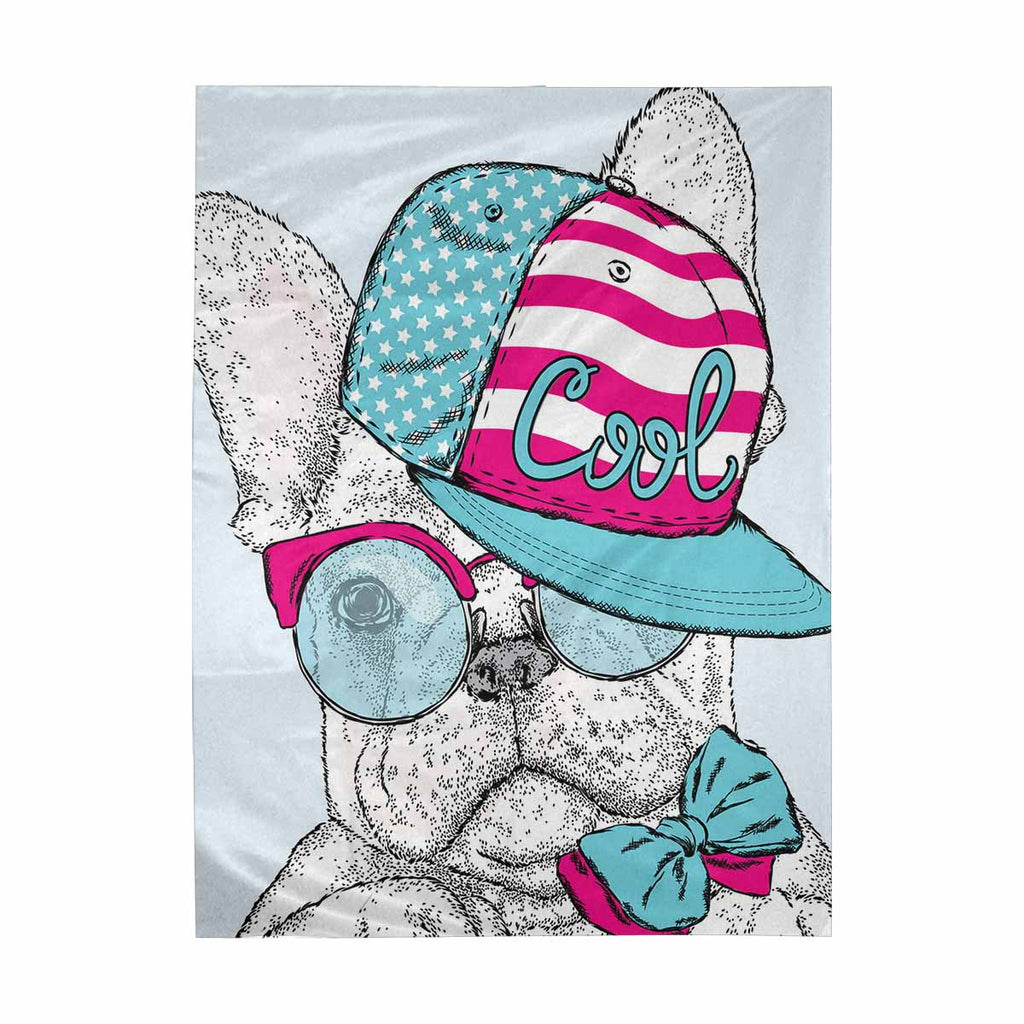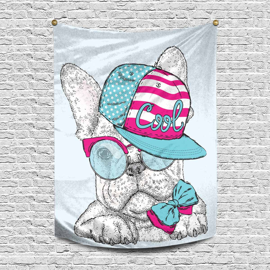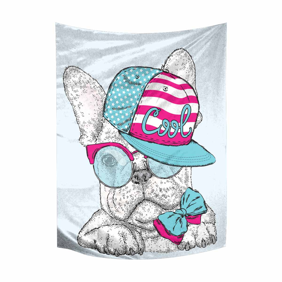 Animals themed long Wall Tapestry print with French Bulldog in glasses and a cap