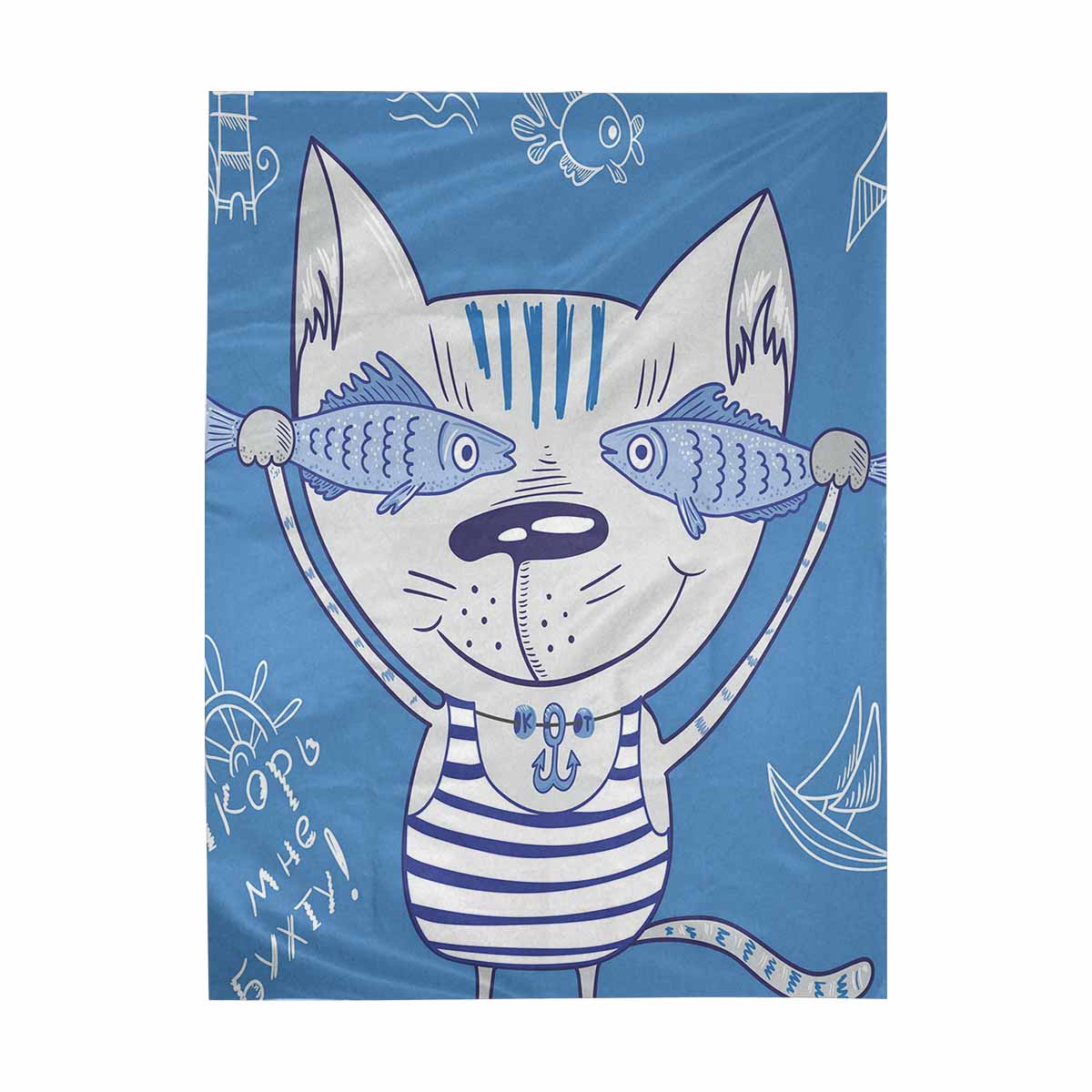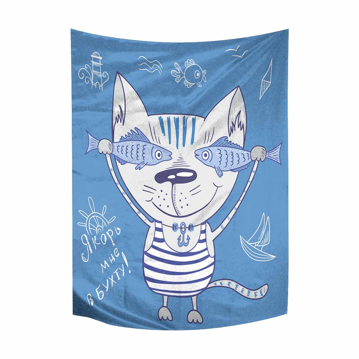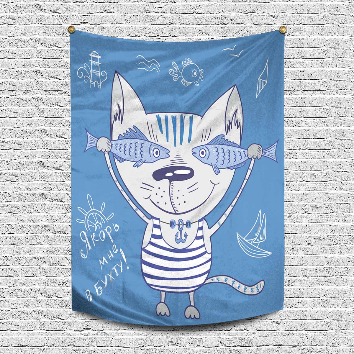 Animals themed long Wall Tapestry print with funny baby doodle design character with fishes and sea symbols