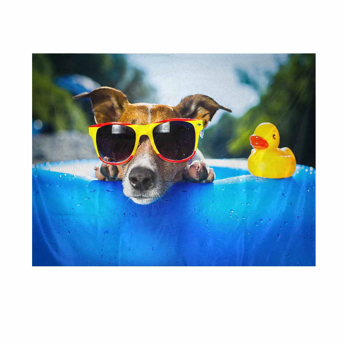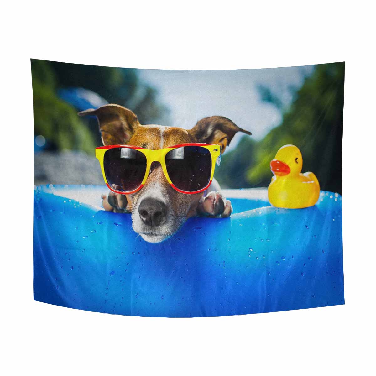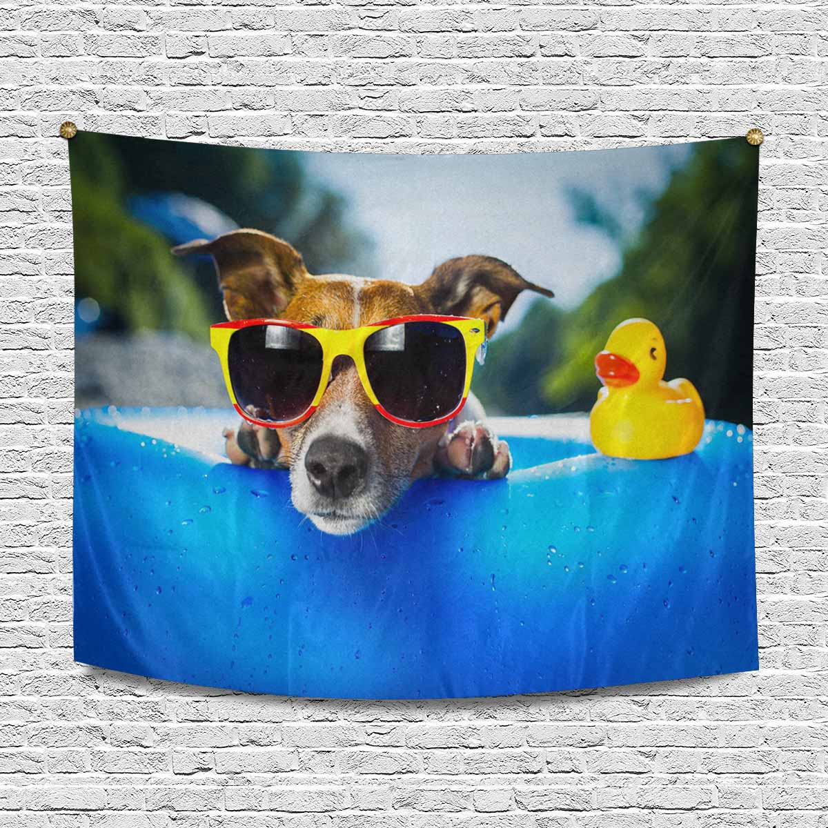 Animals themed Wall Tapestries print with dog on blue air mattress in water refreshing