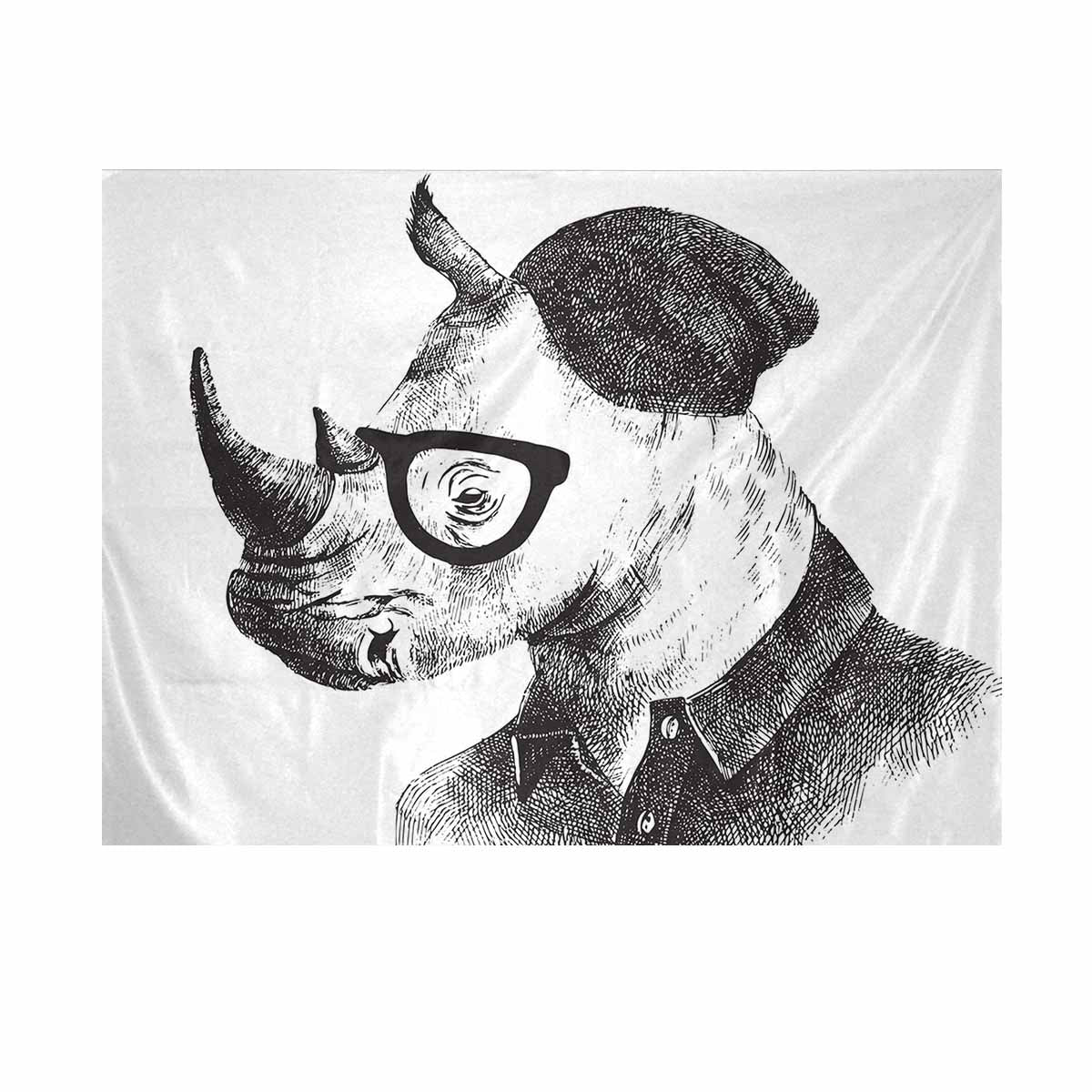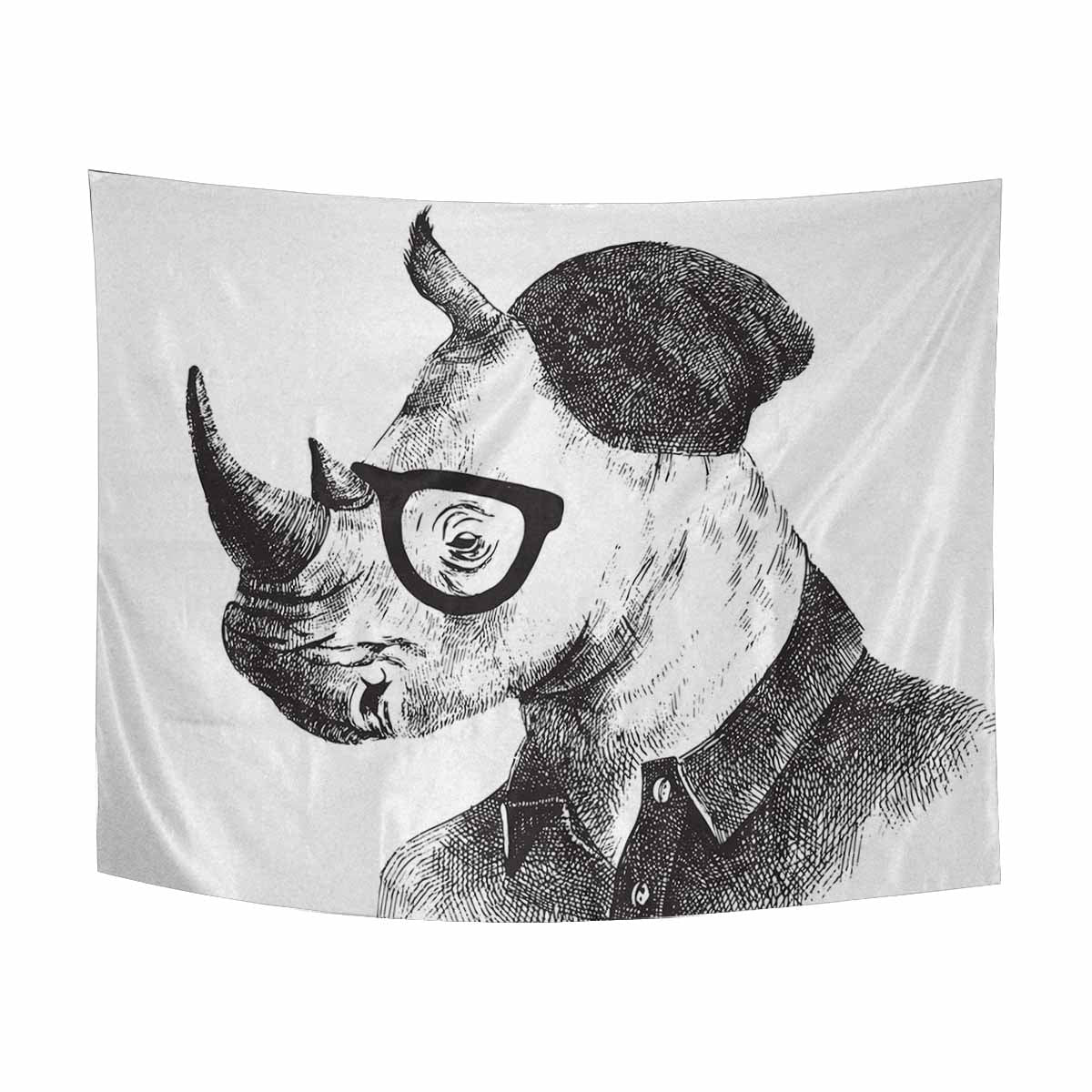 Animals themed Wall Tapestries print with dressed up rhino in hipster style
