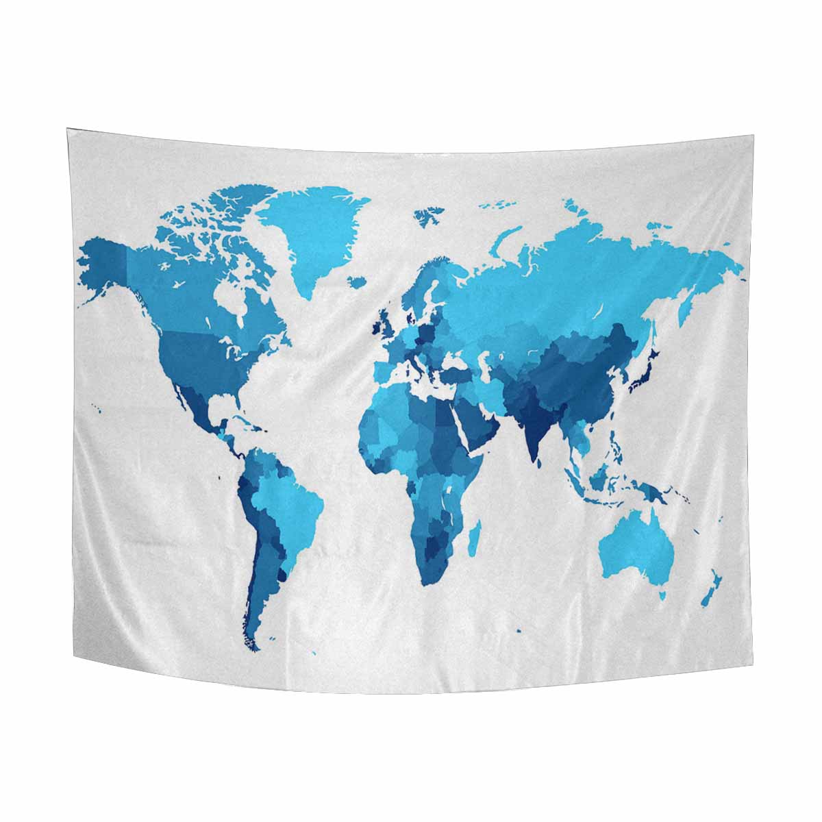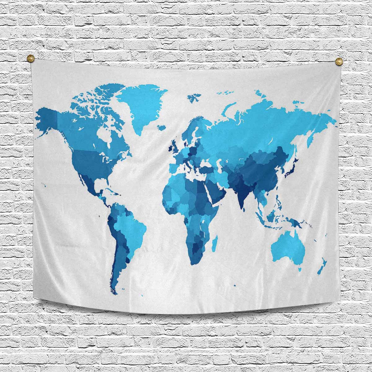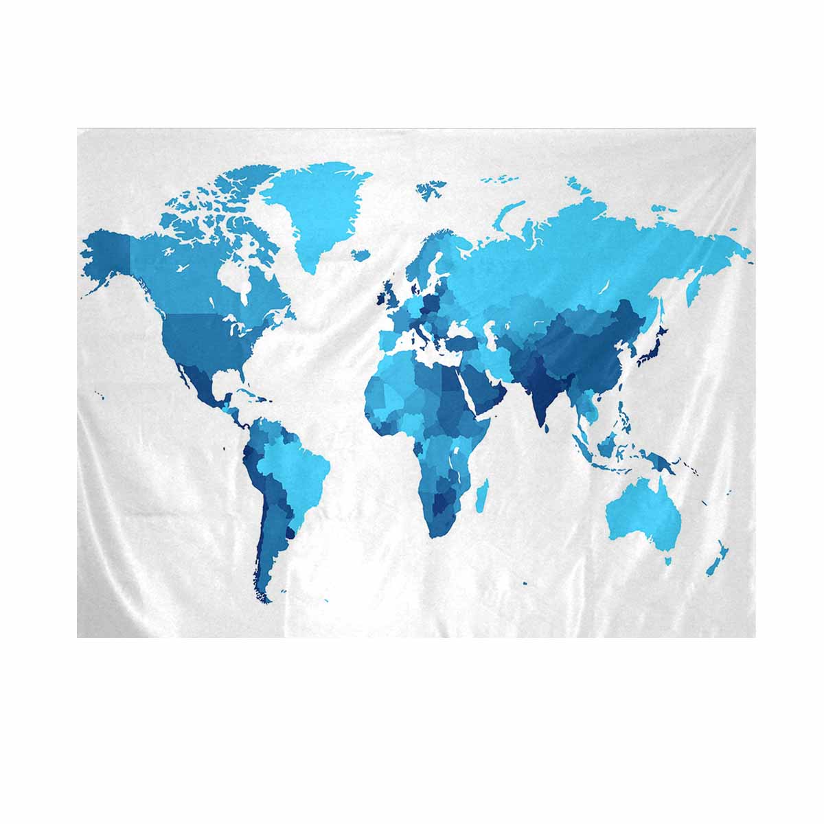 Map themed Wall Tapestries map of the World with countries in blue colors
