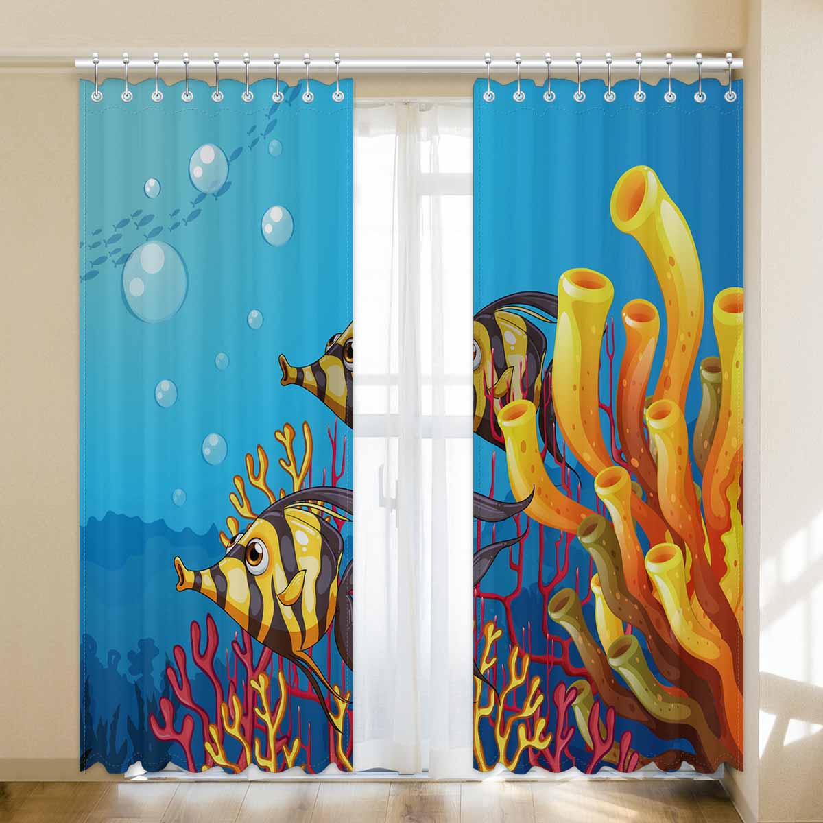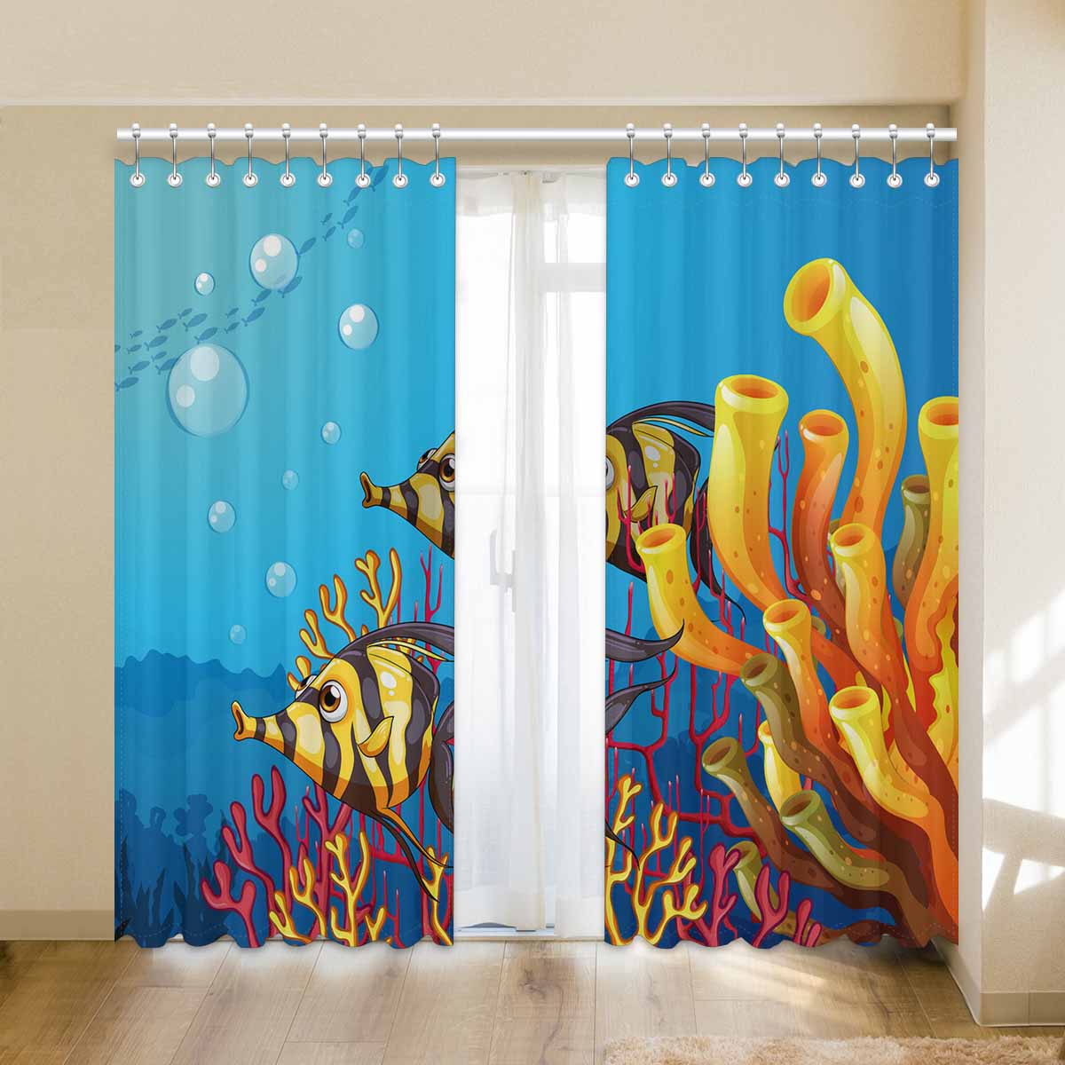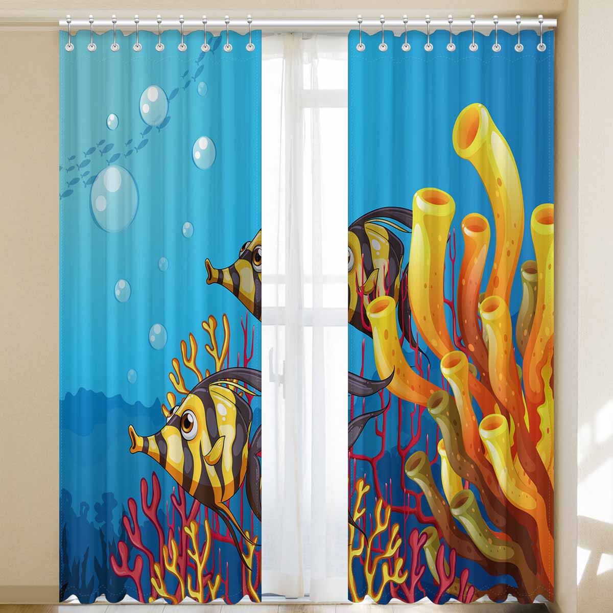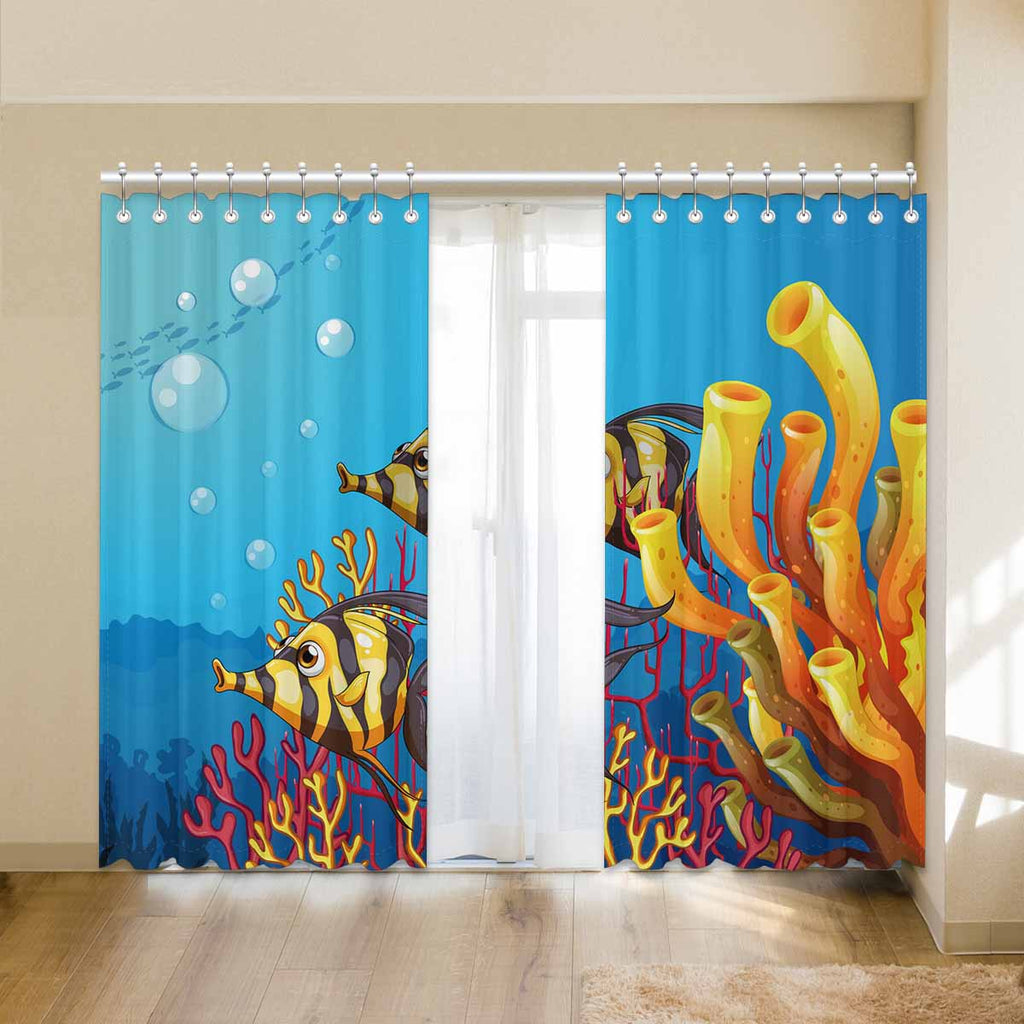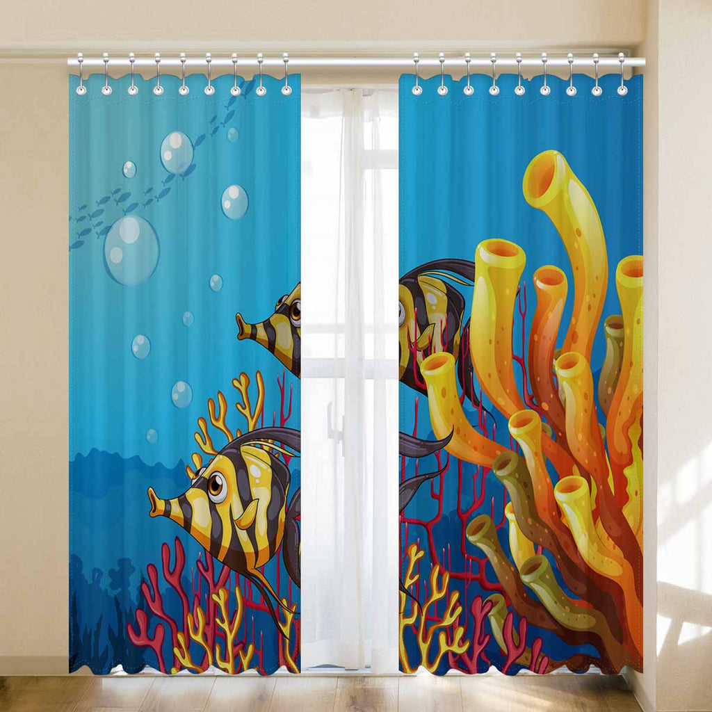 Seaworld Window Curtains print A deep sea with beautiful coral reefs and fish