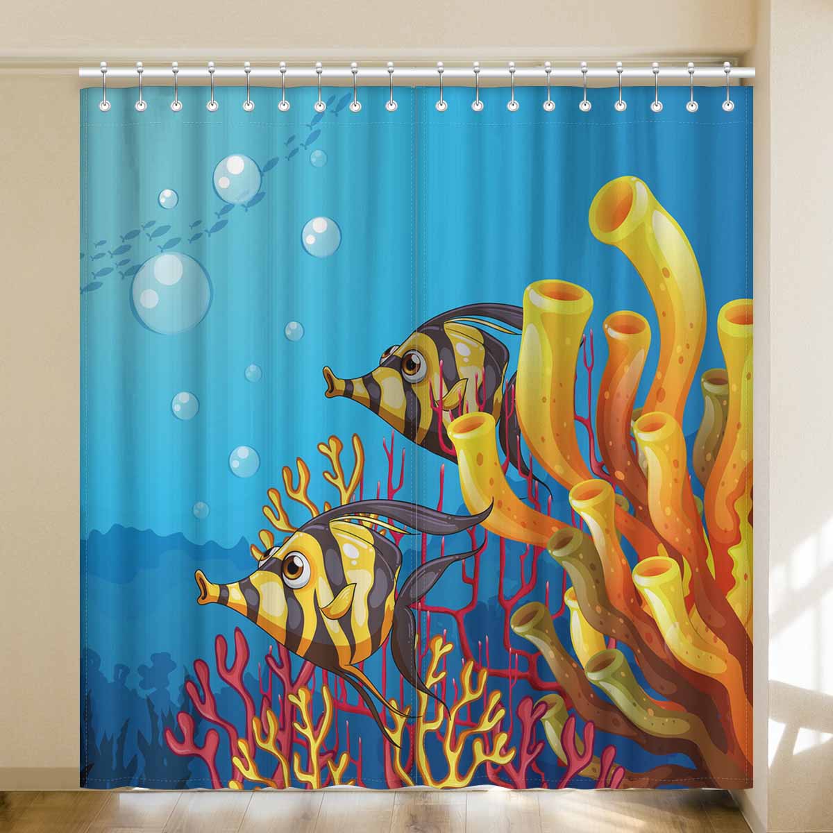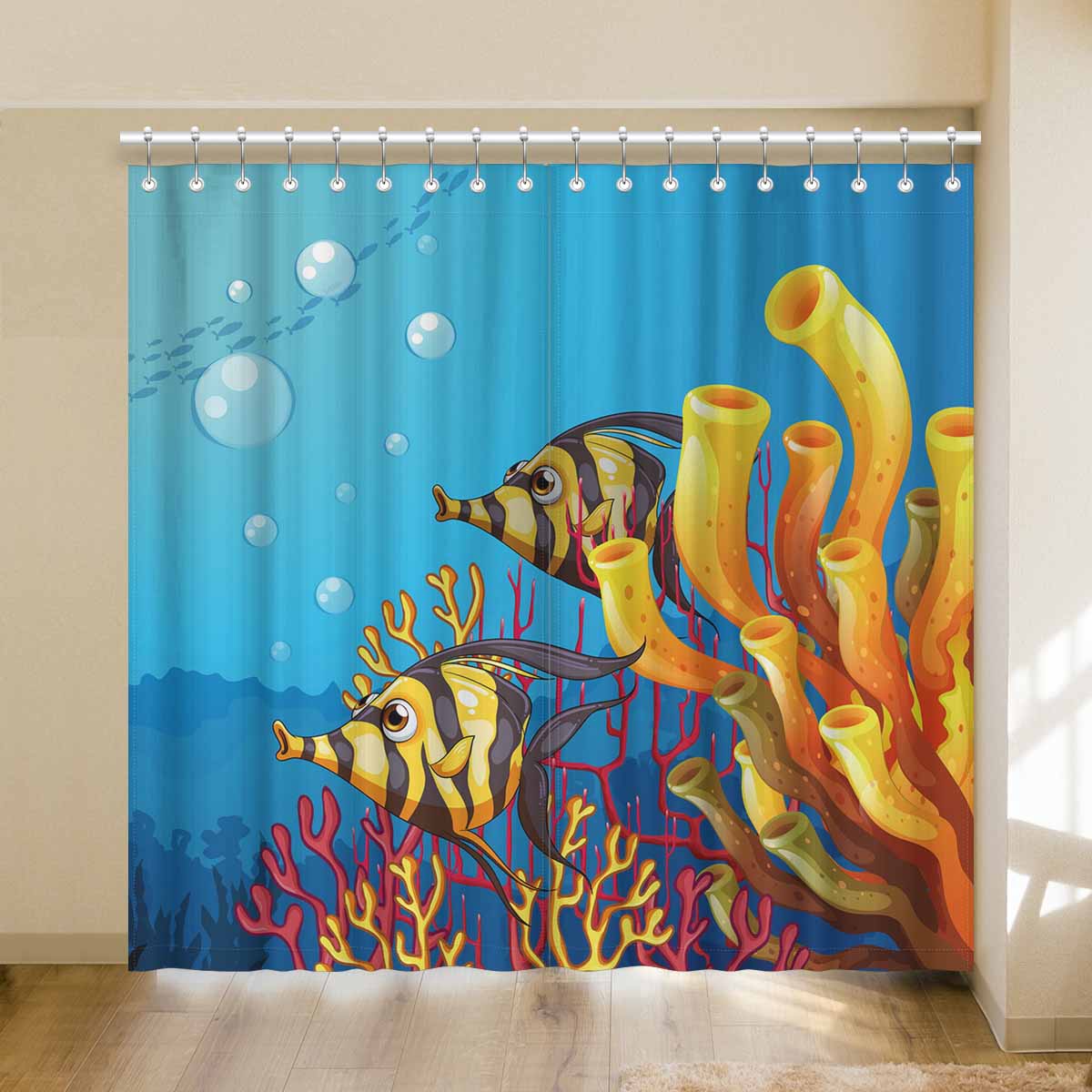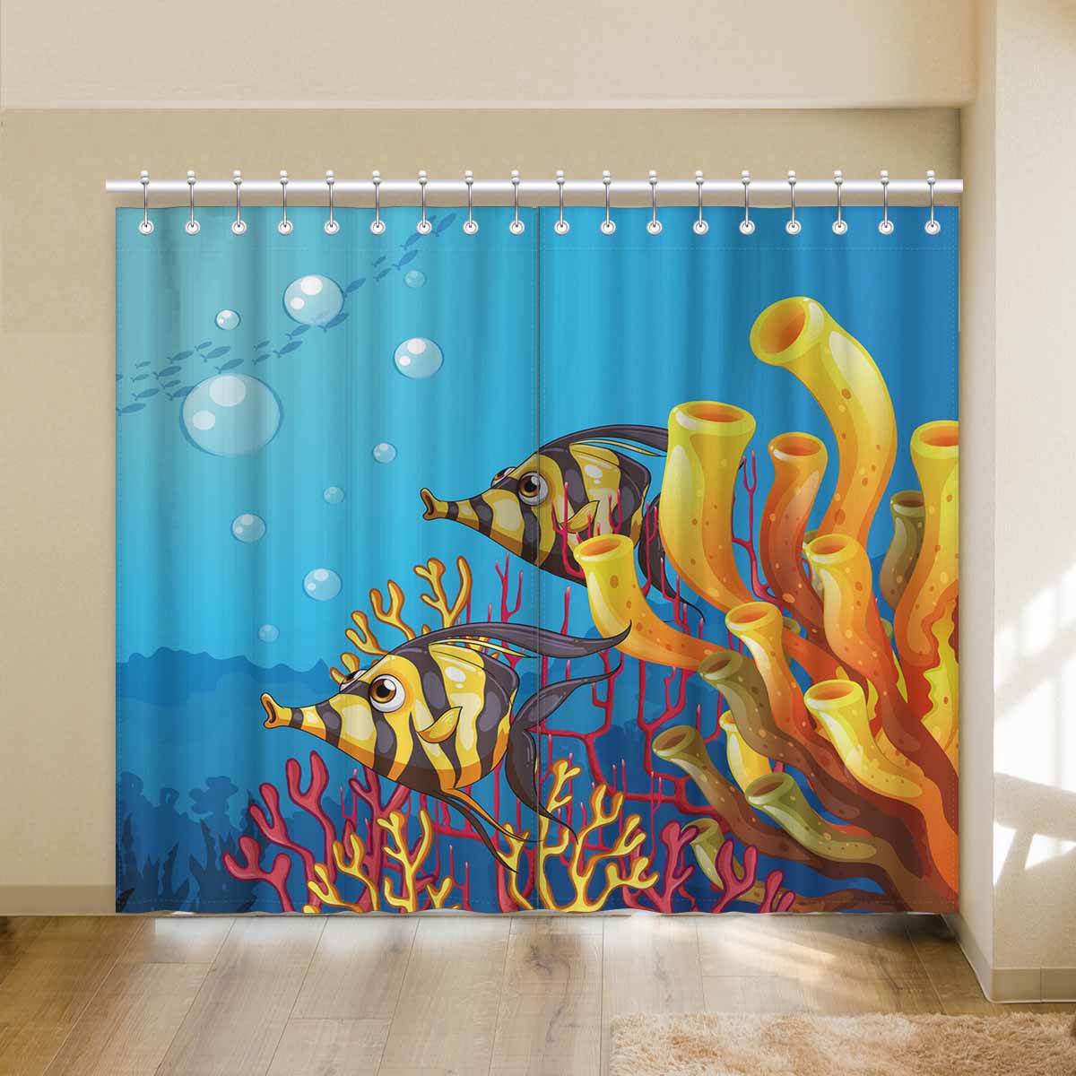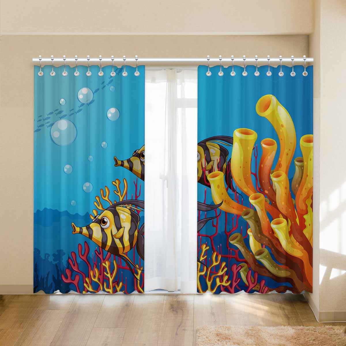 Seaworld Window Curtains print A deep sea with beautiful coral reefs and fish