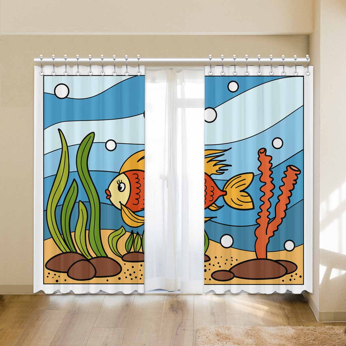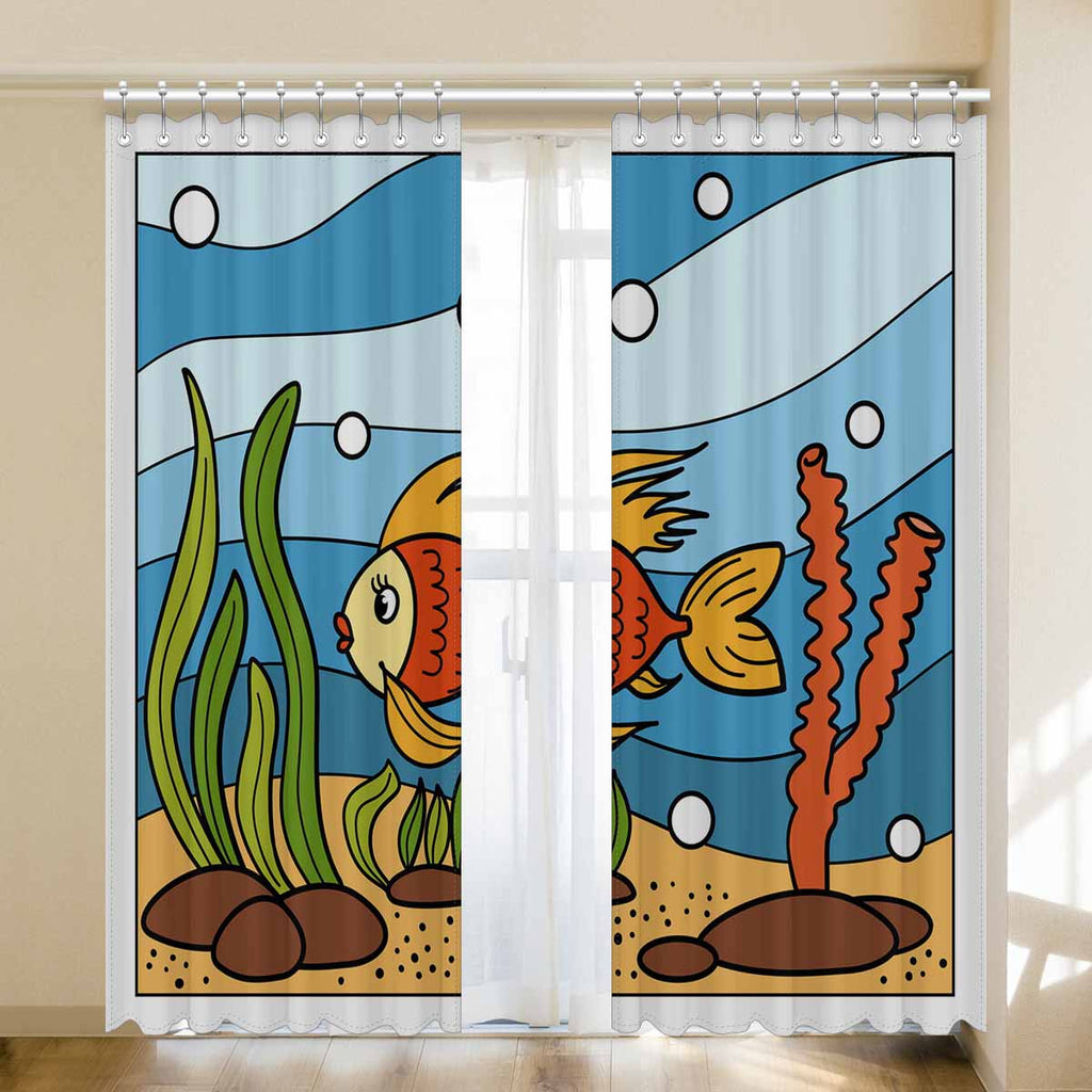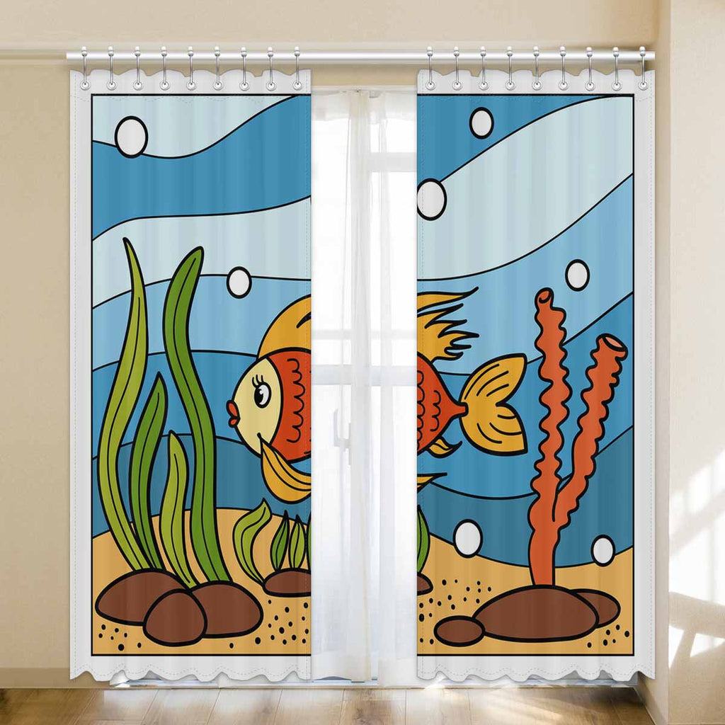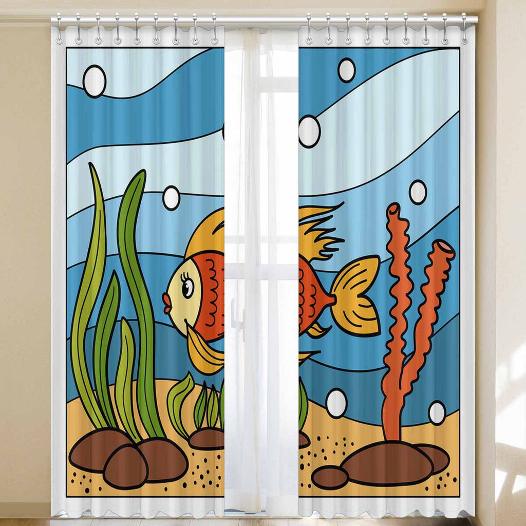 Seaworld Window Curtains print Beautiful corals and tropical fish