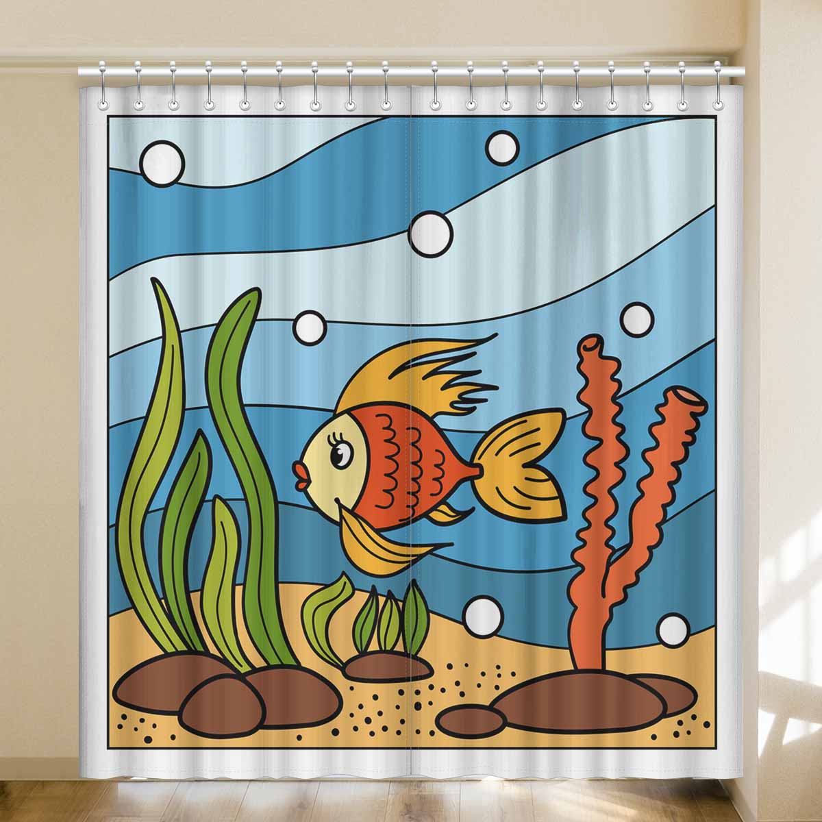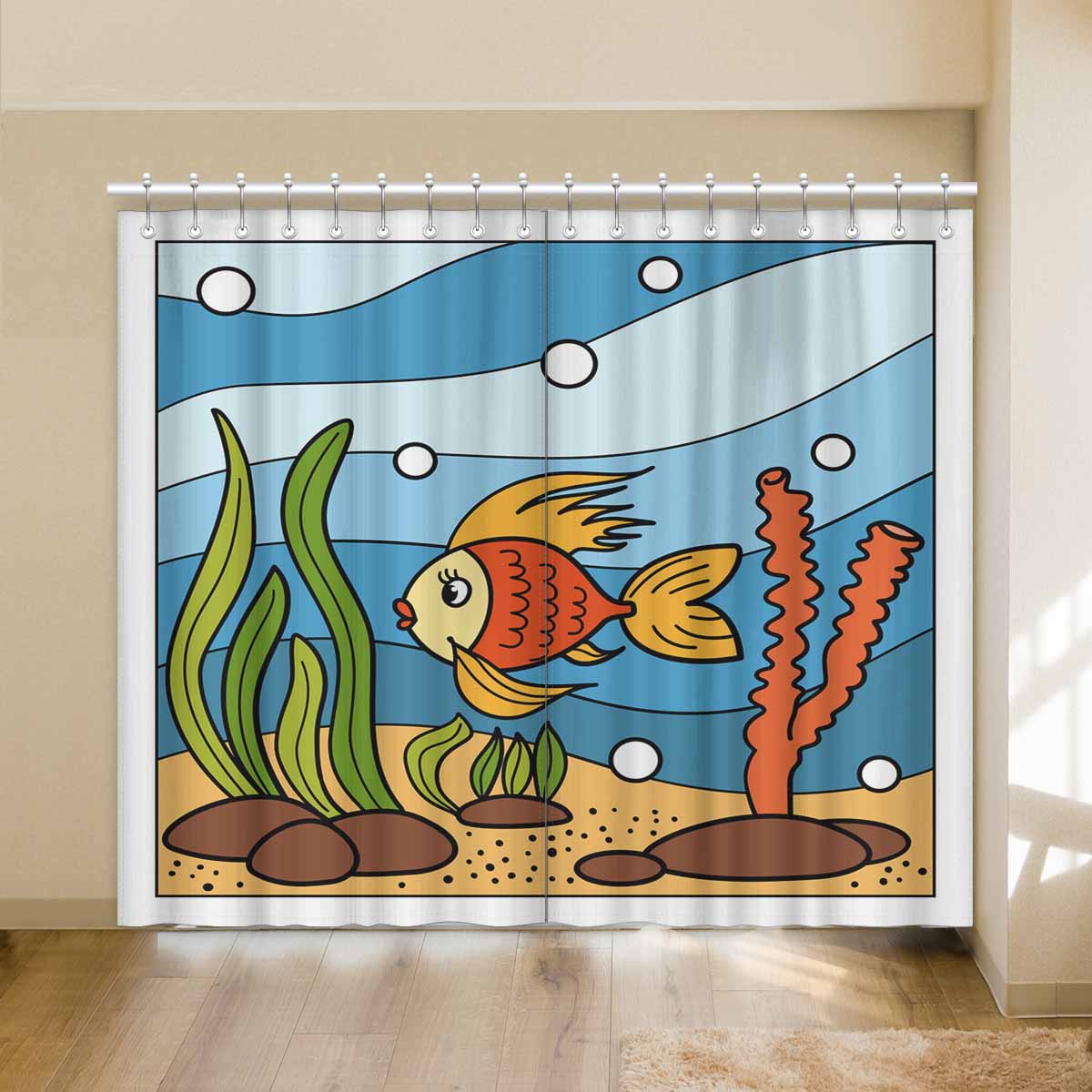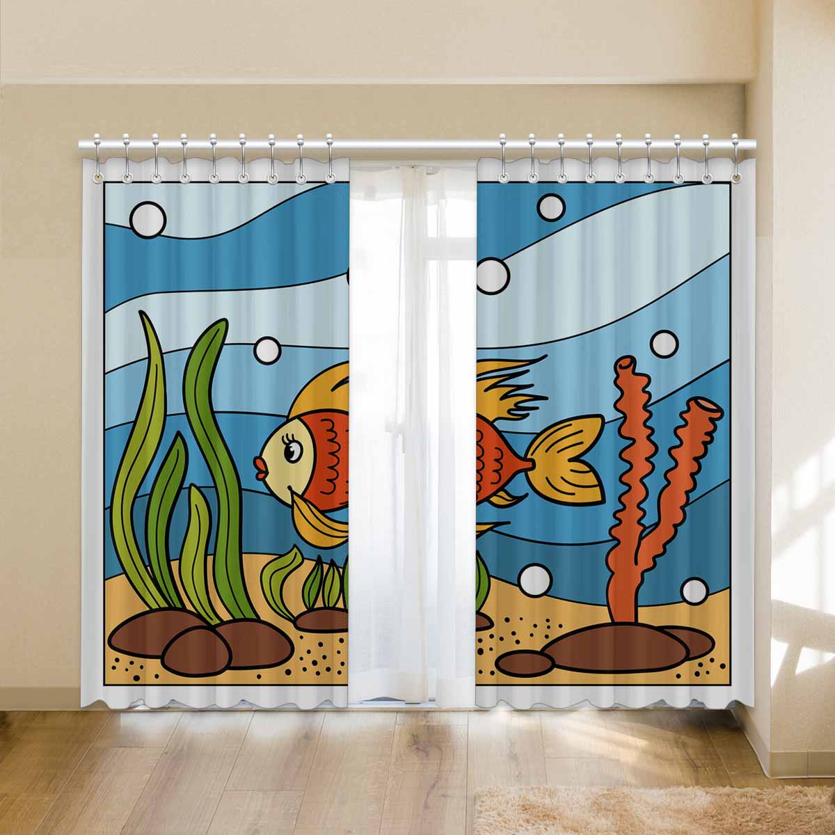 Seaworld Window Curtains print Beautiful corals and tropical fish