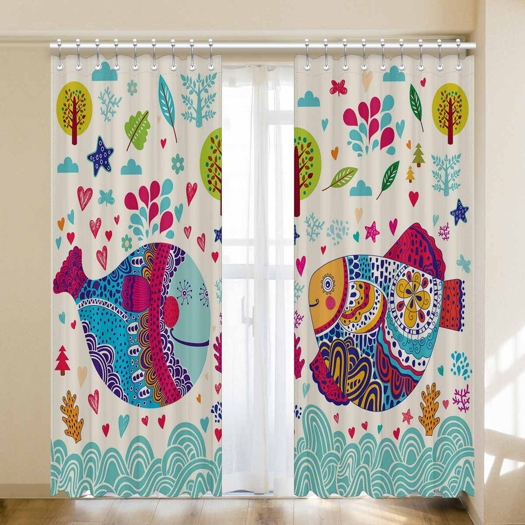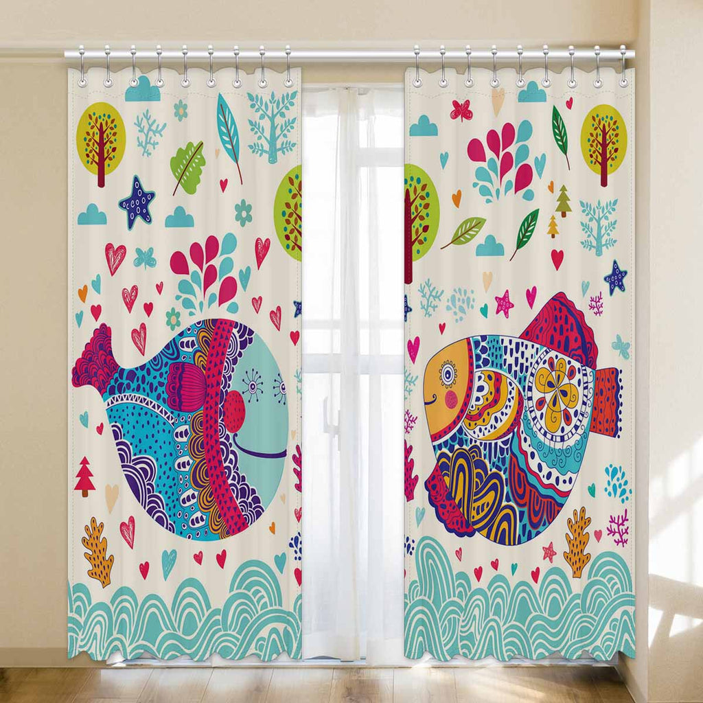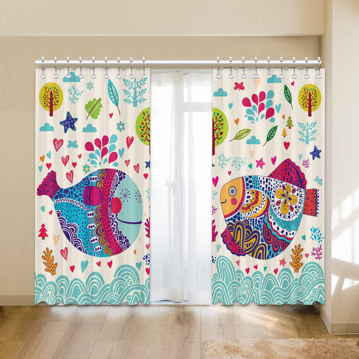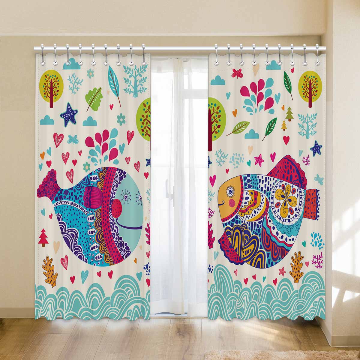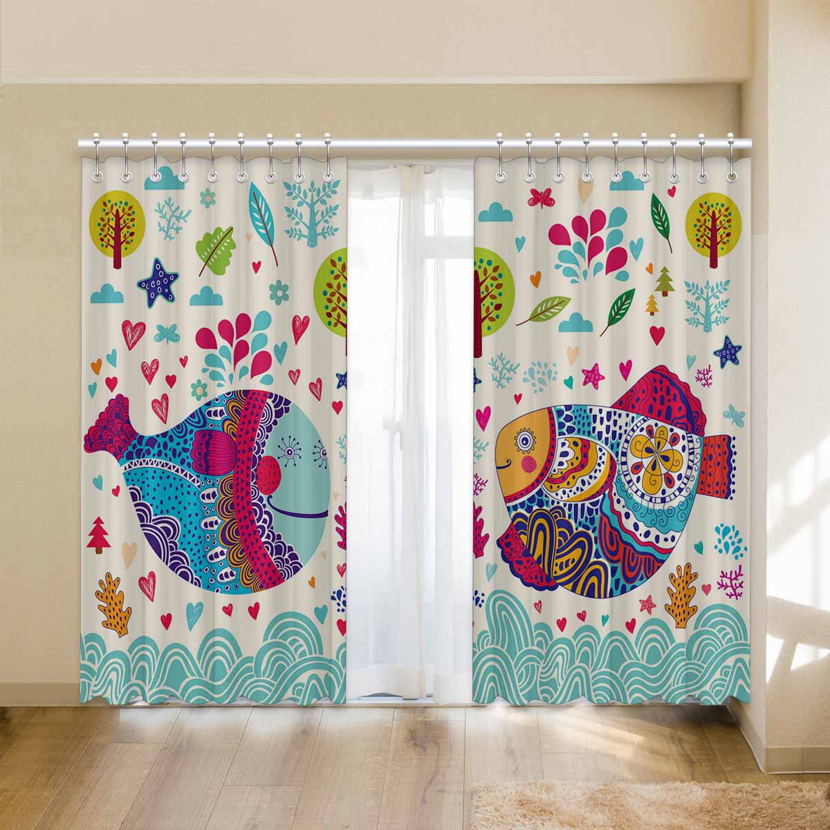 Seaworld Window Curtains print Cartoon funny fish and whale