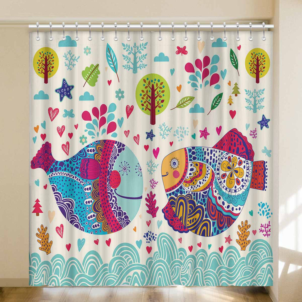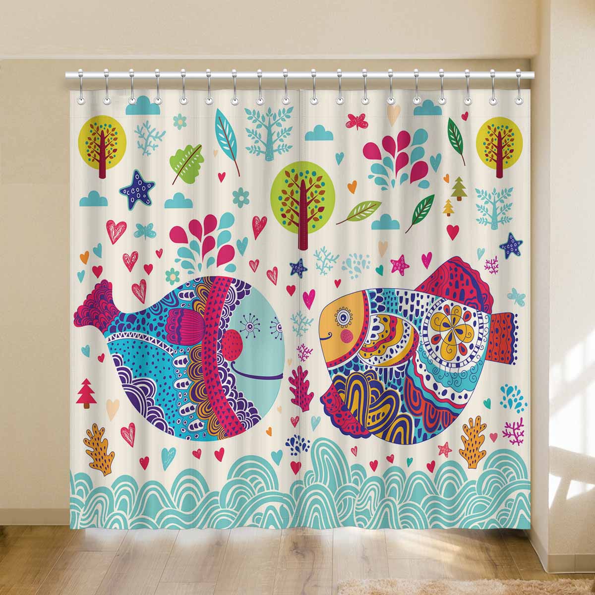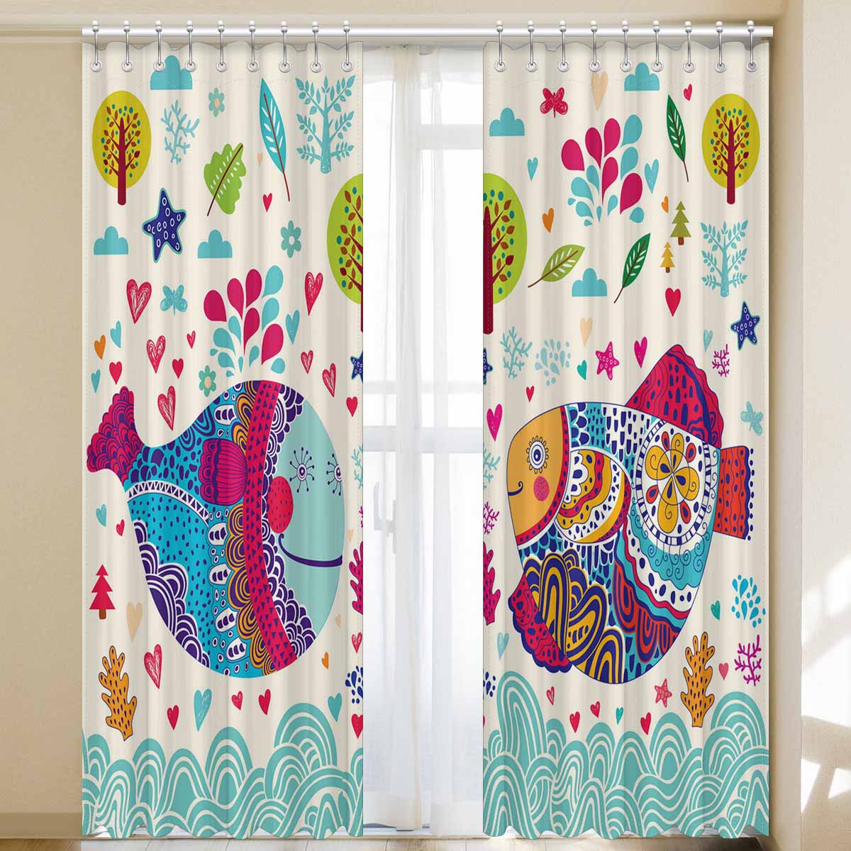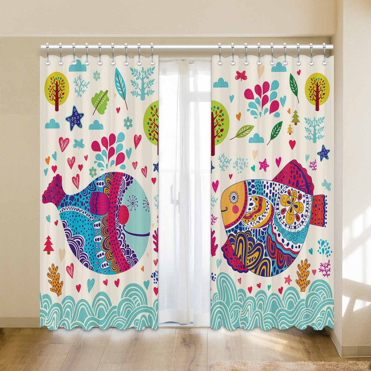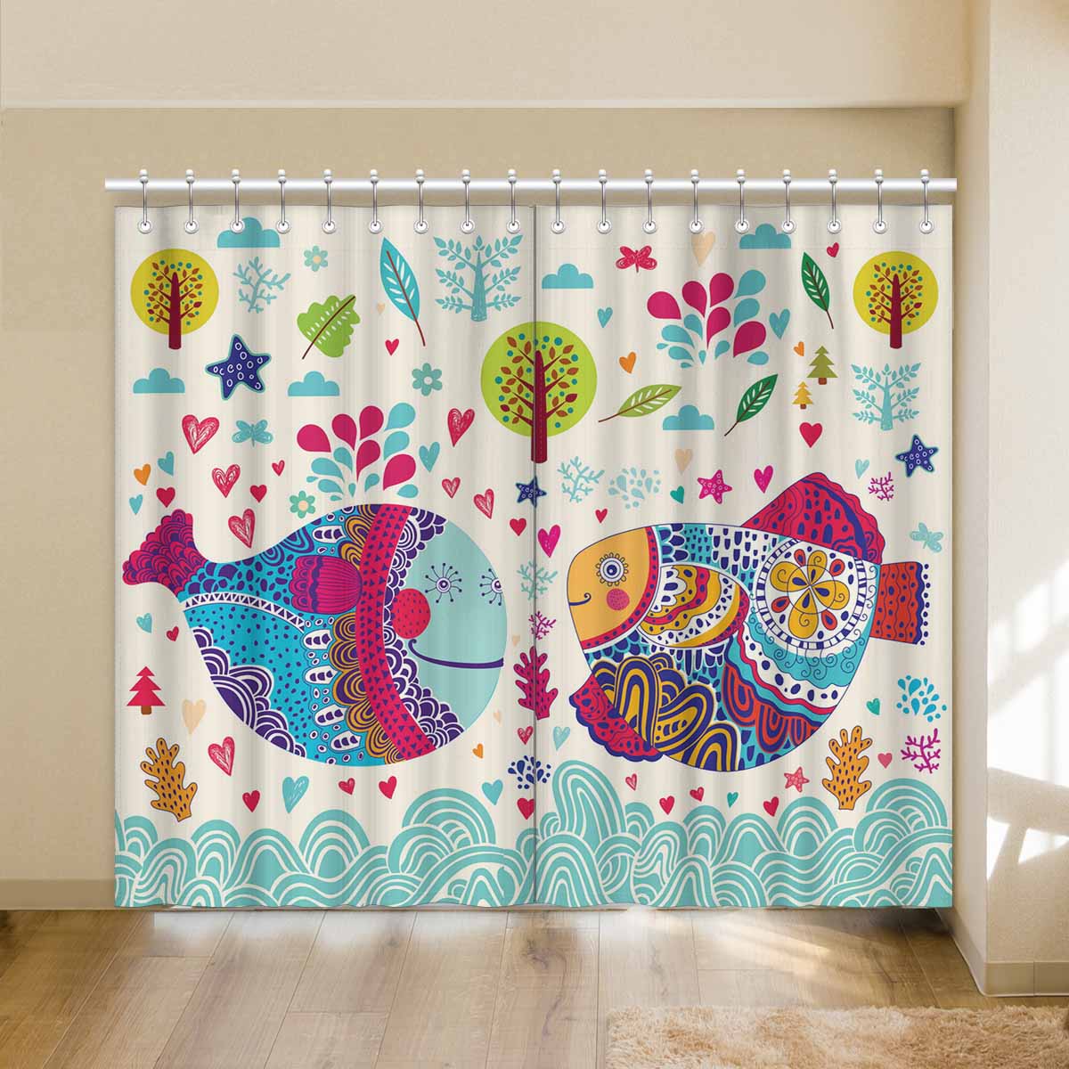 Seaworld Window Curtains print Cartoon funny fish and whale