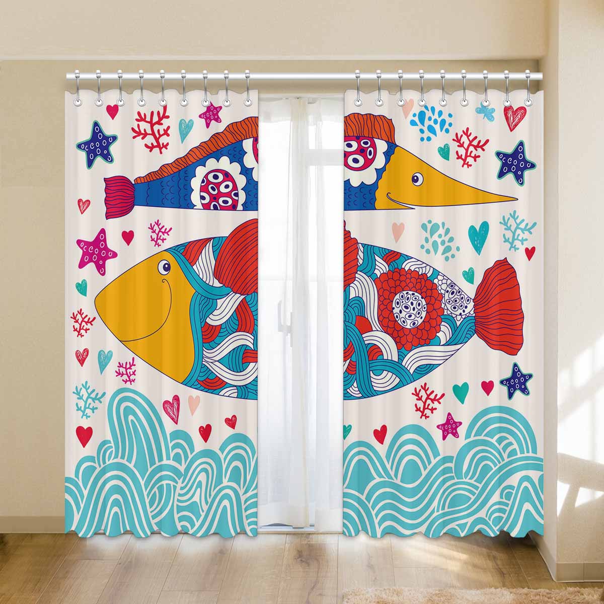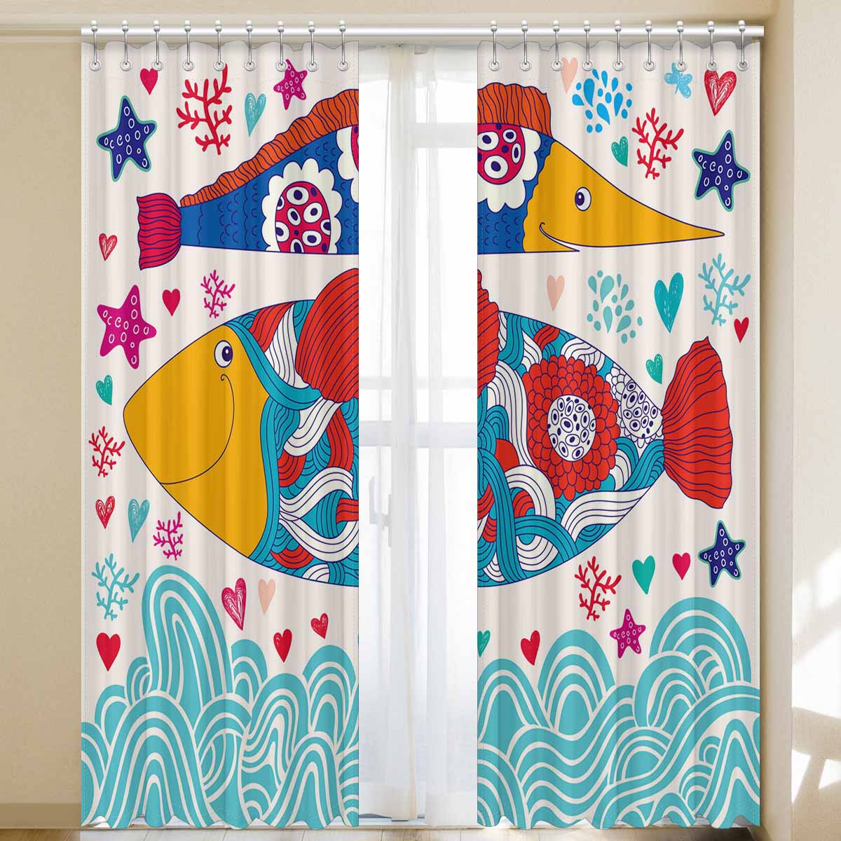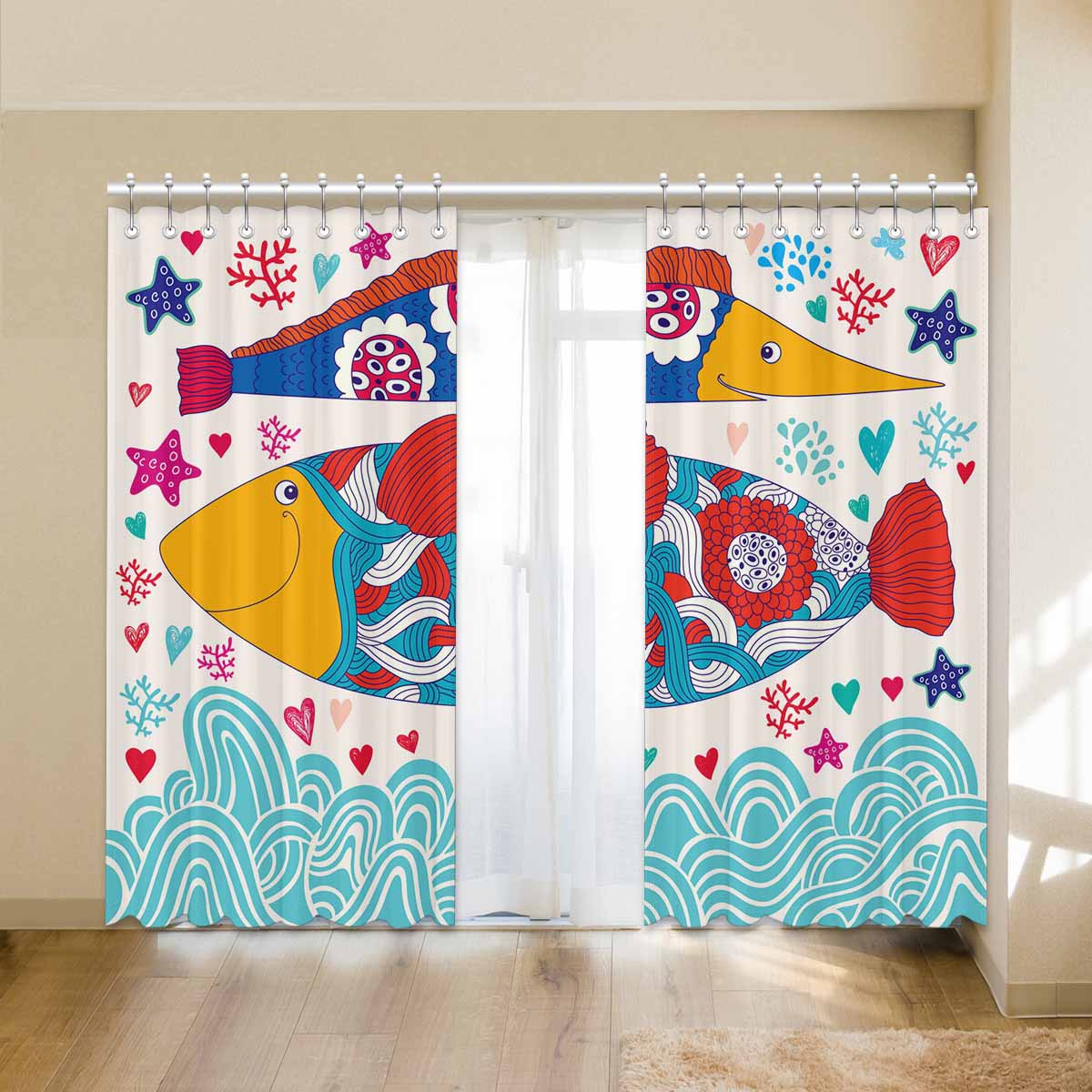 Seaworld Window Curtains print Cartoon funny fishes pattern