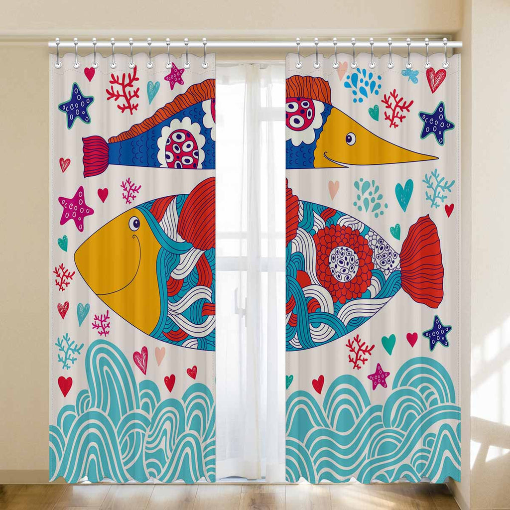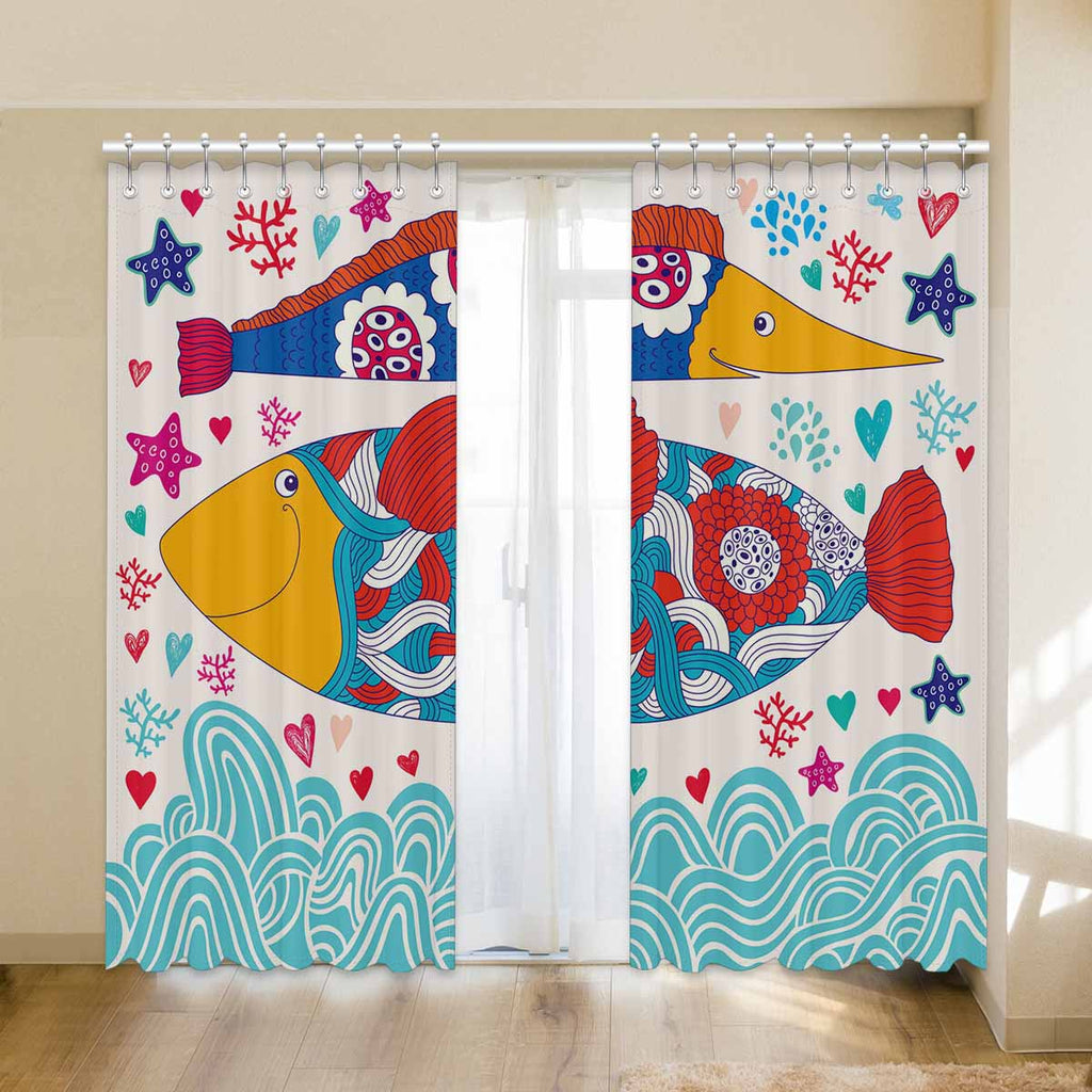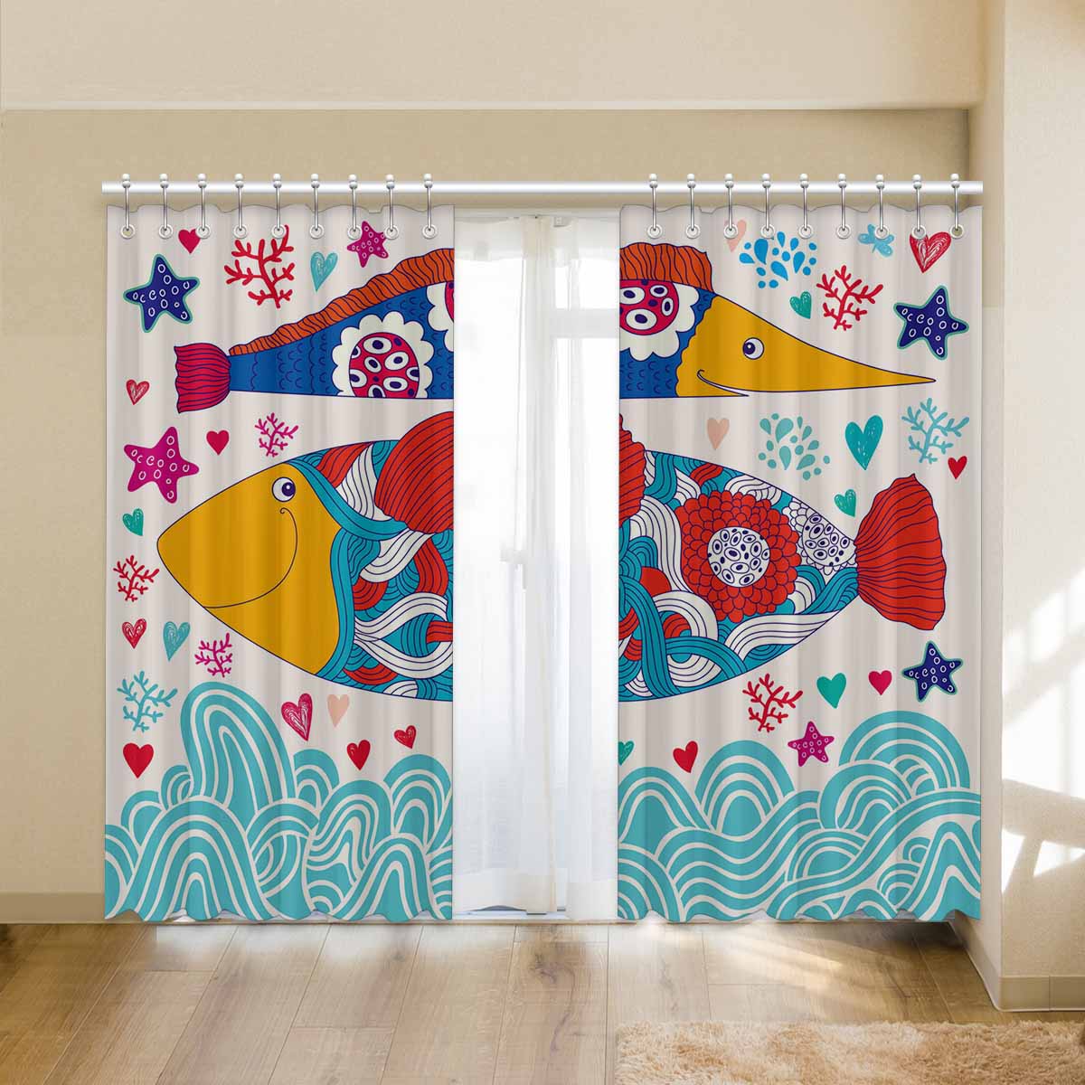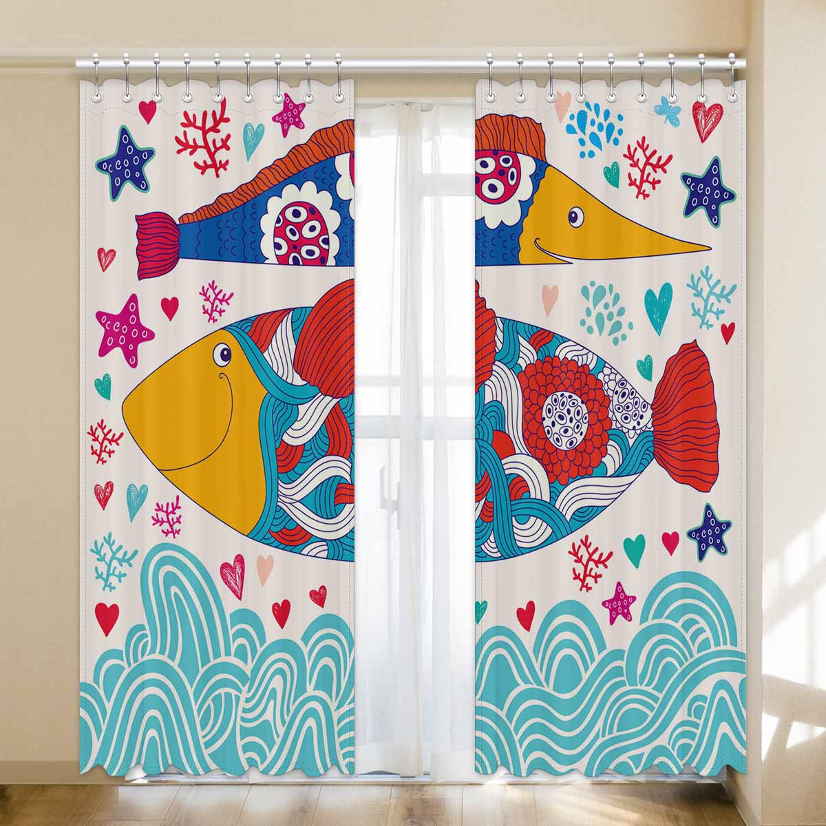 Seaworld Window Curtains print Cartoon funny fishes pattern