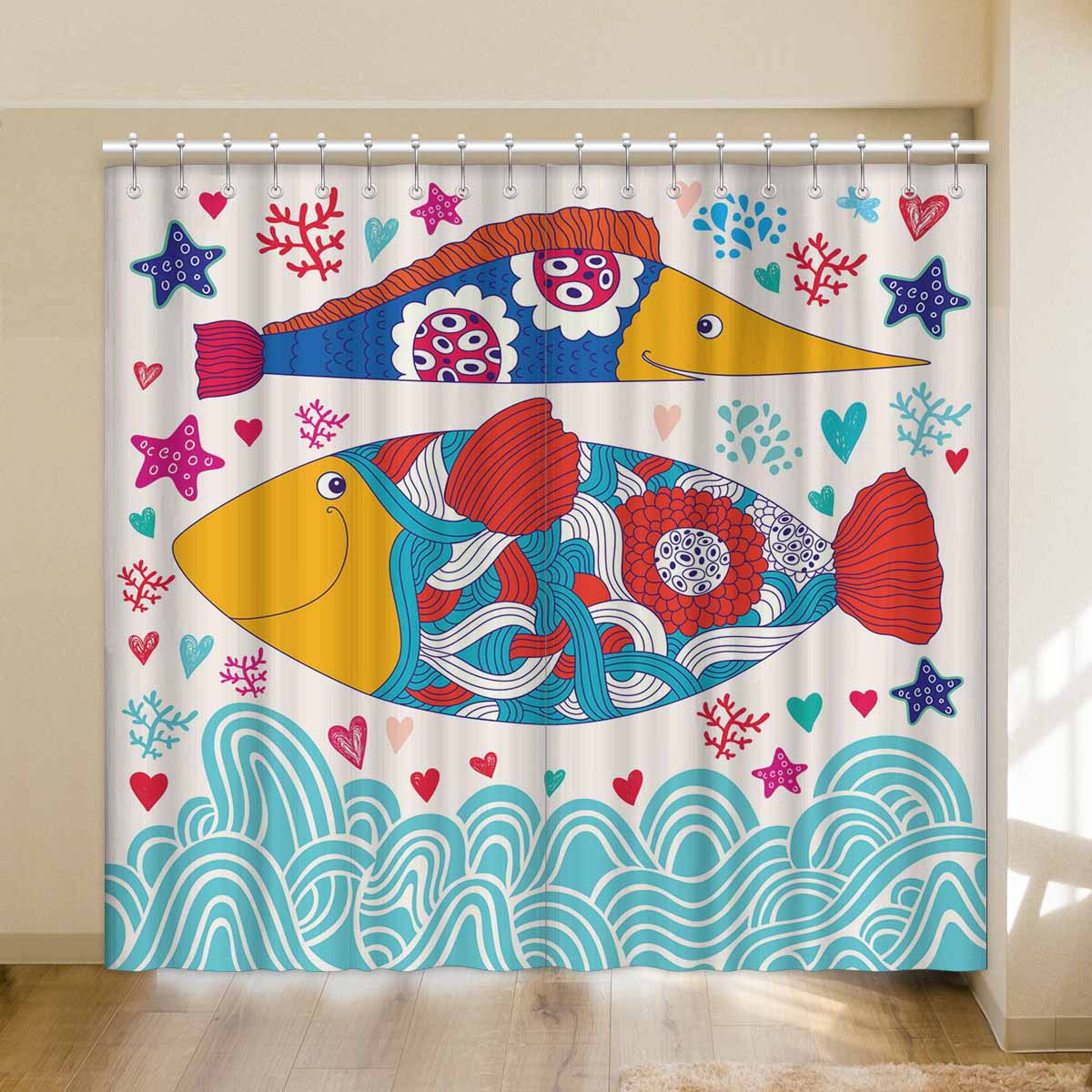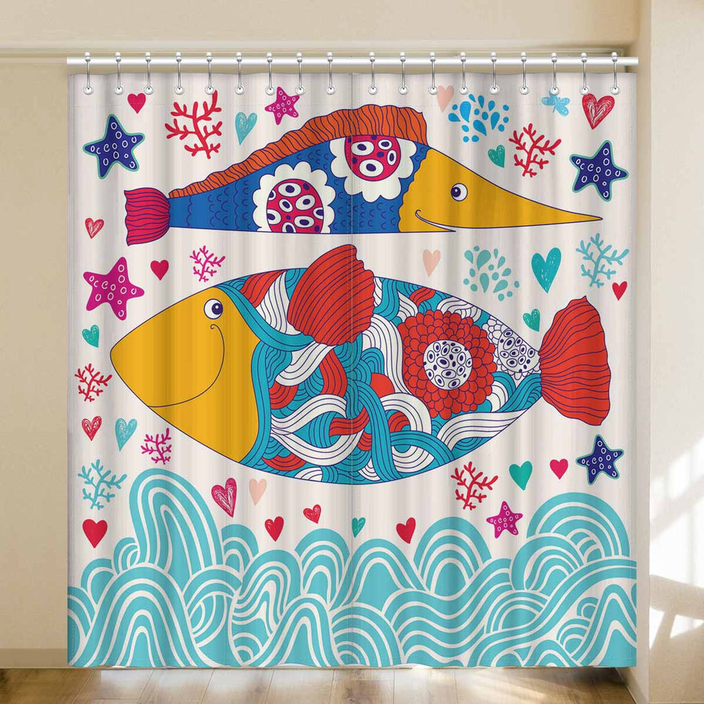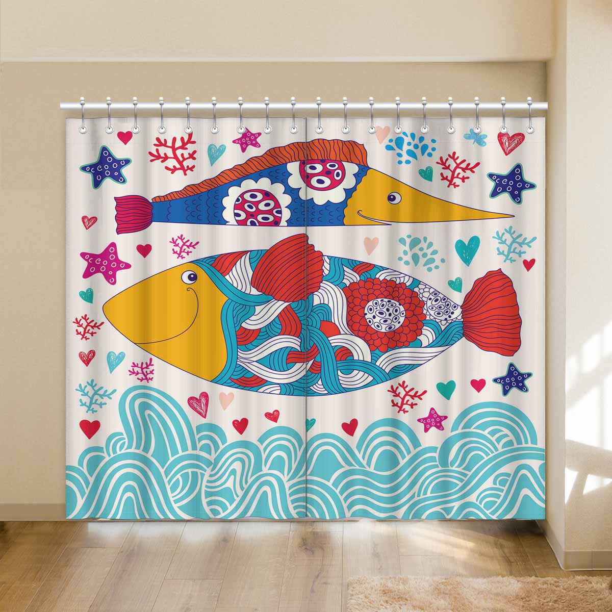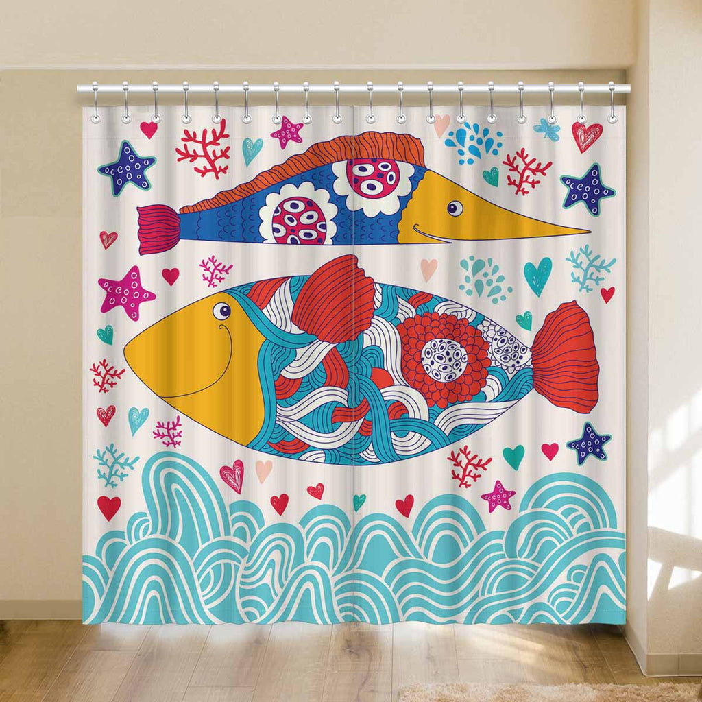Seaworld Window Curtains print Cartoon funny fishes pattern