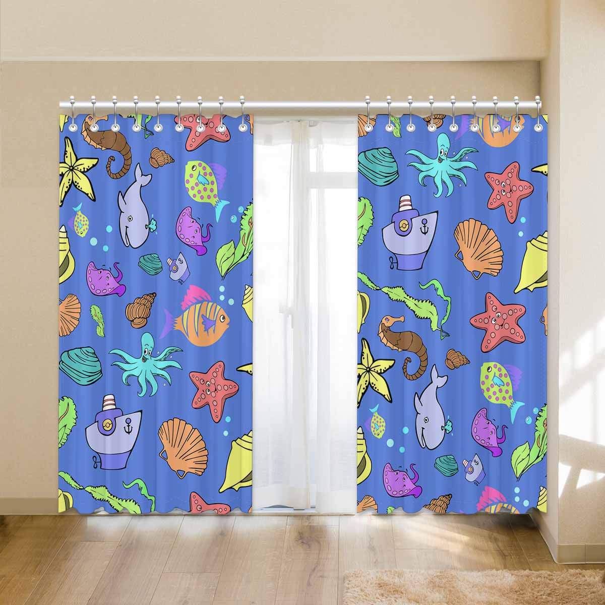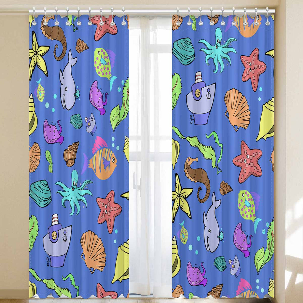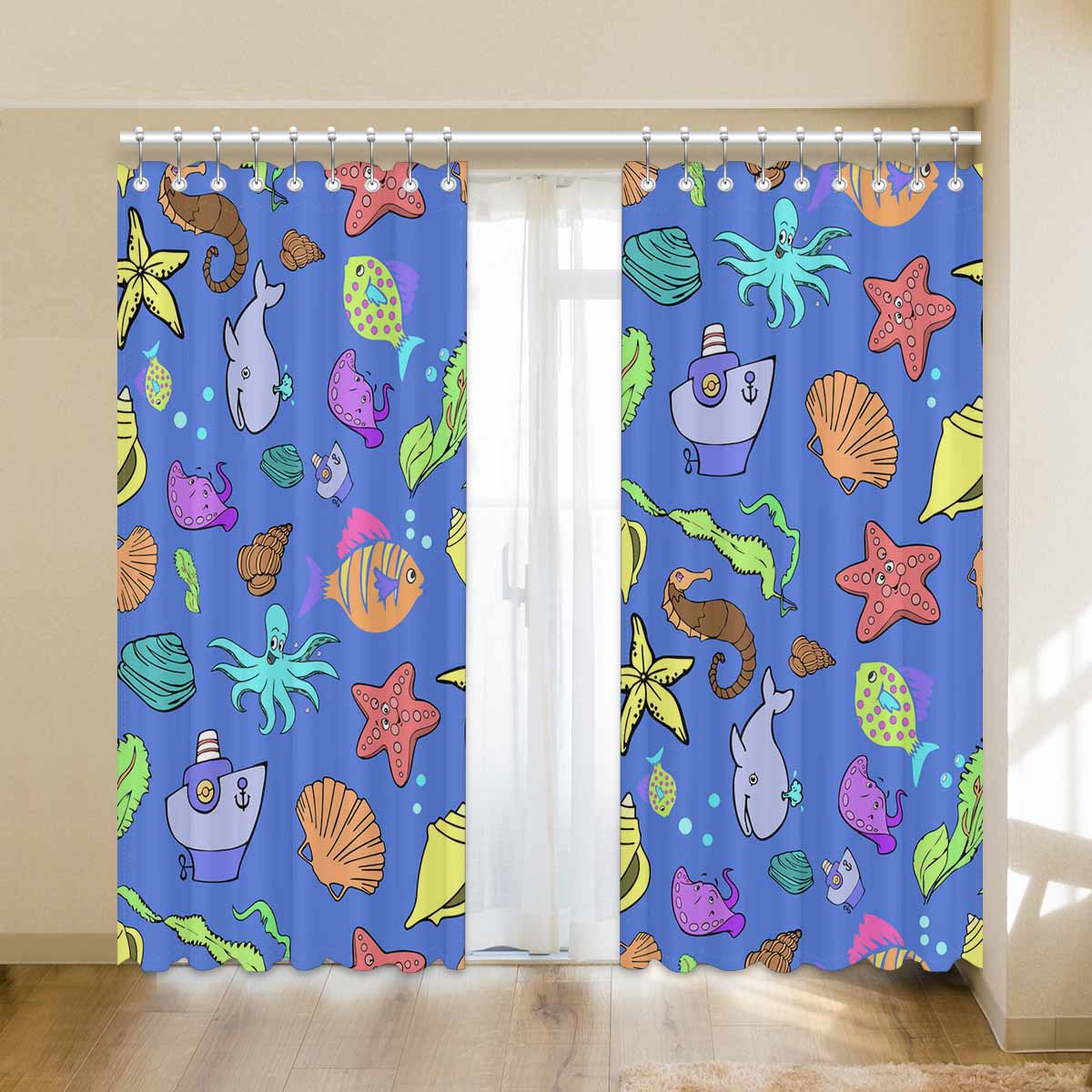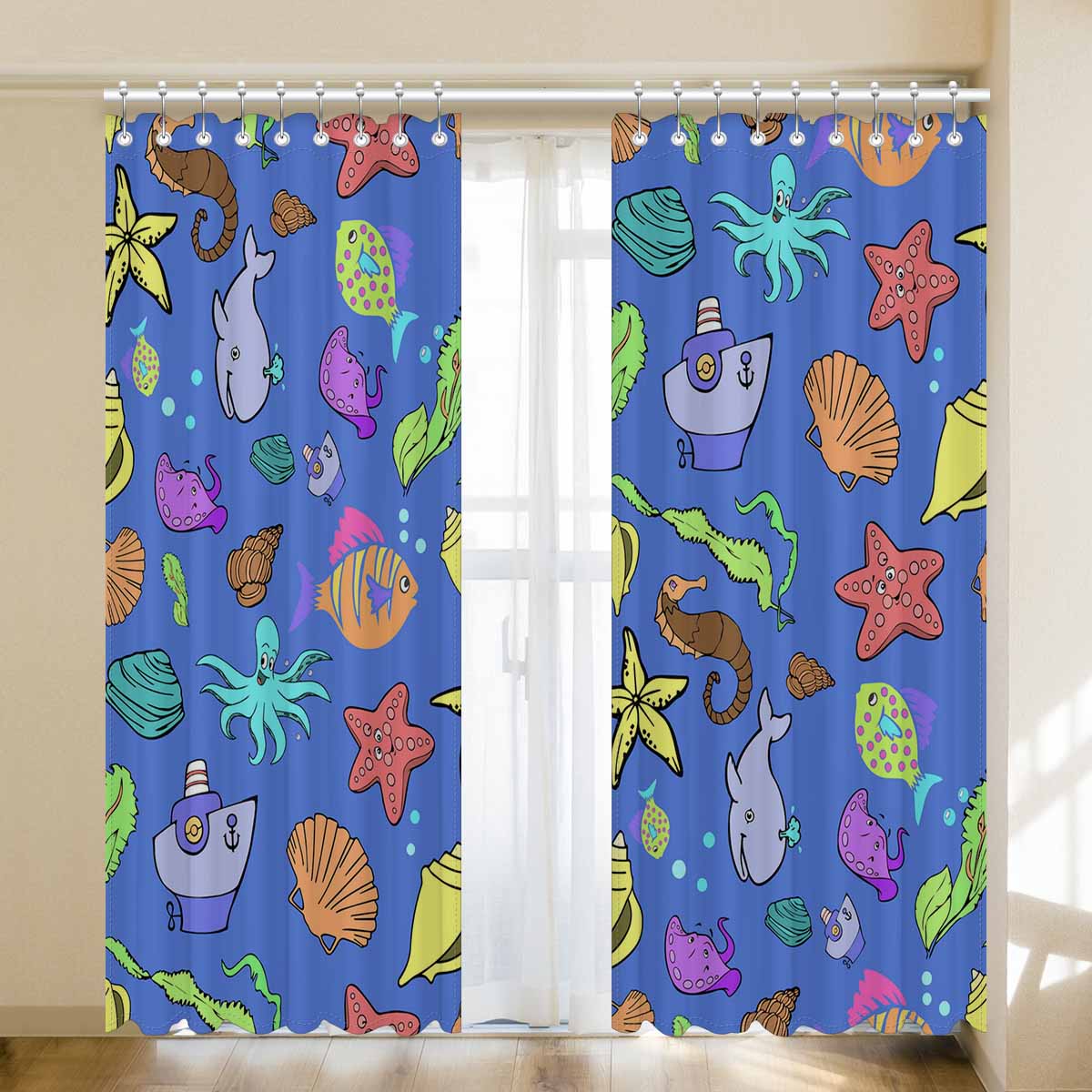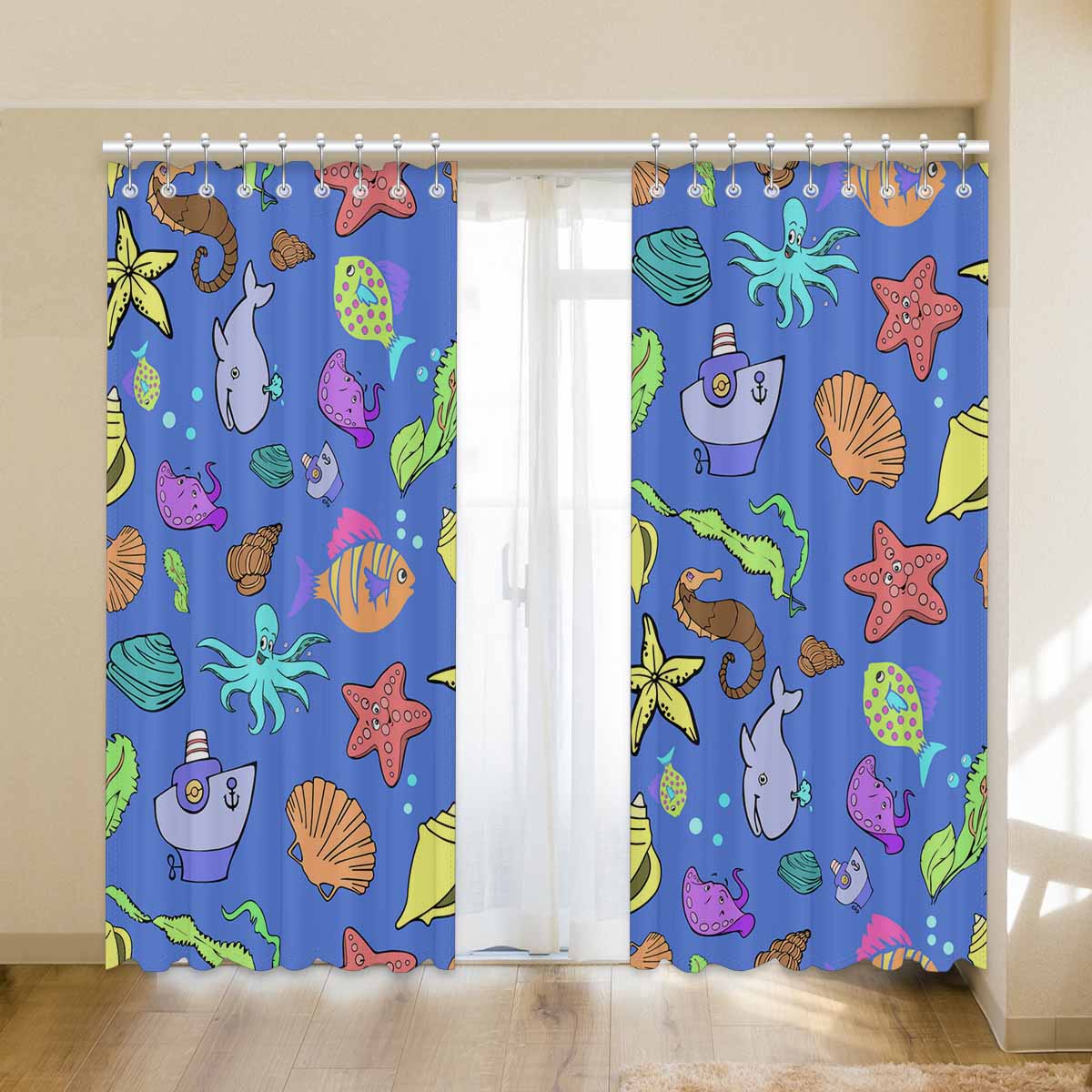 Seaworld Window Curtains print cartoon ocean fishes pattern