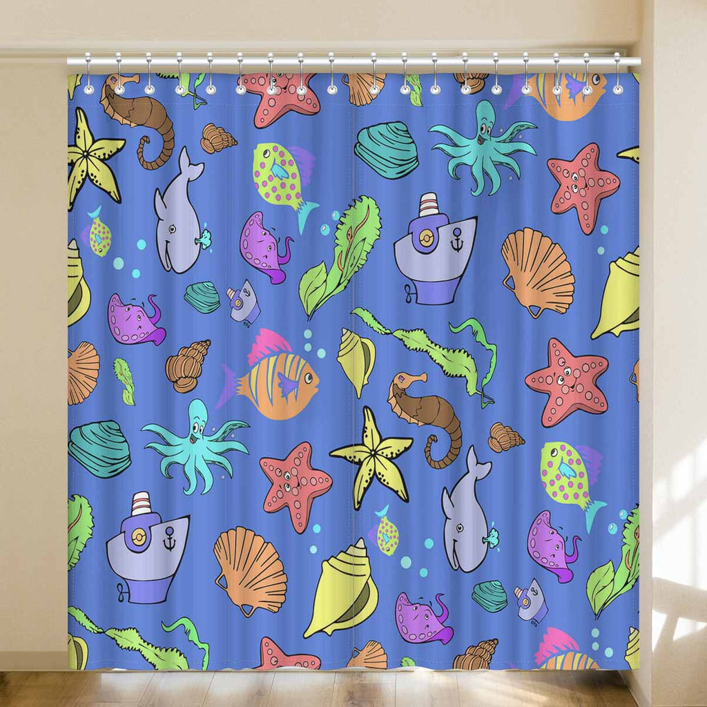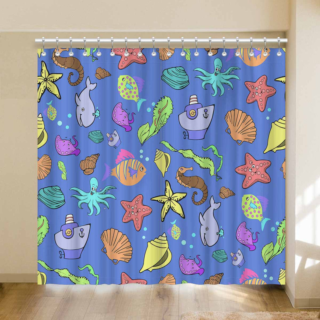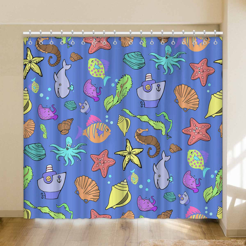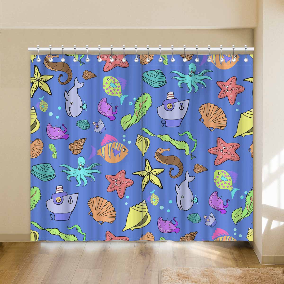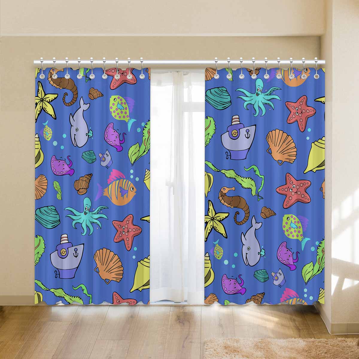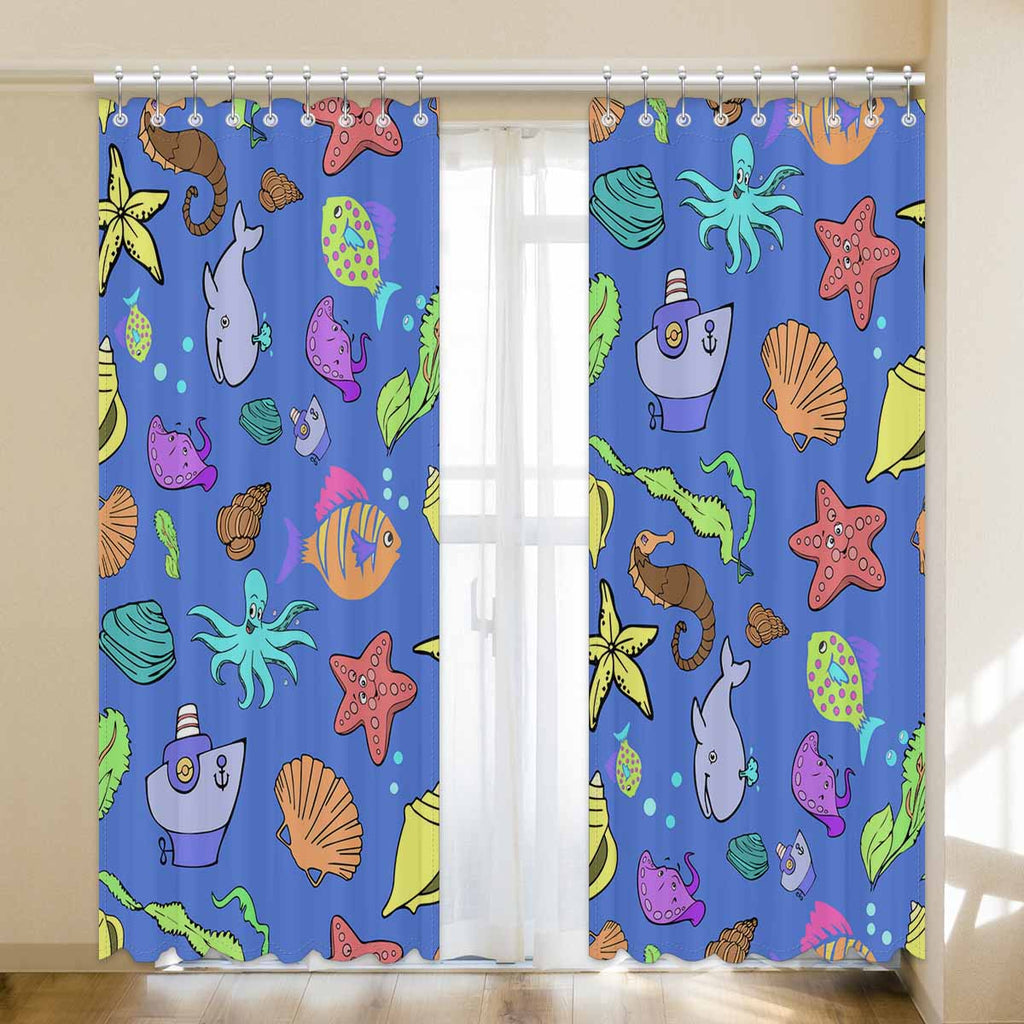 Seaworld Window Curtains print cartoon ocean fishes pattern