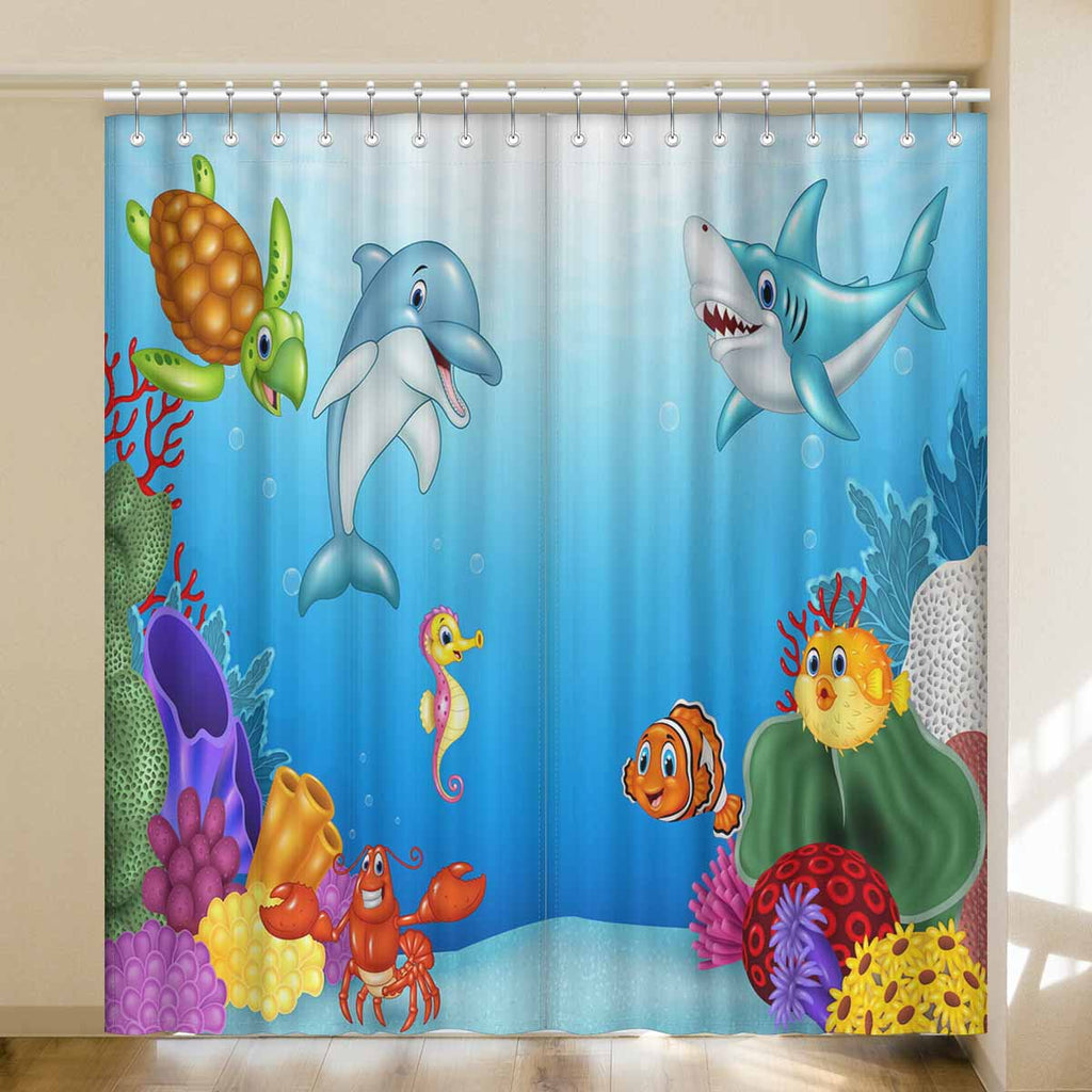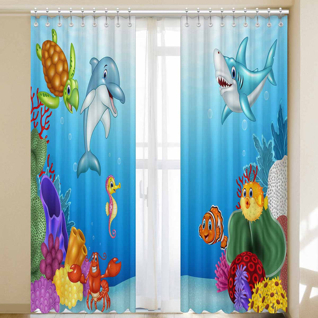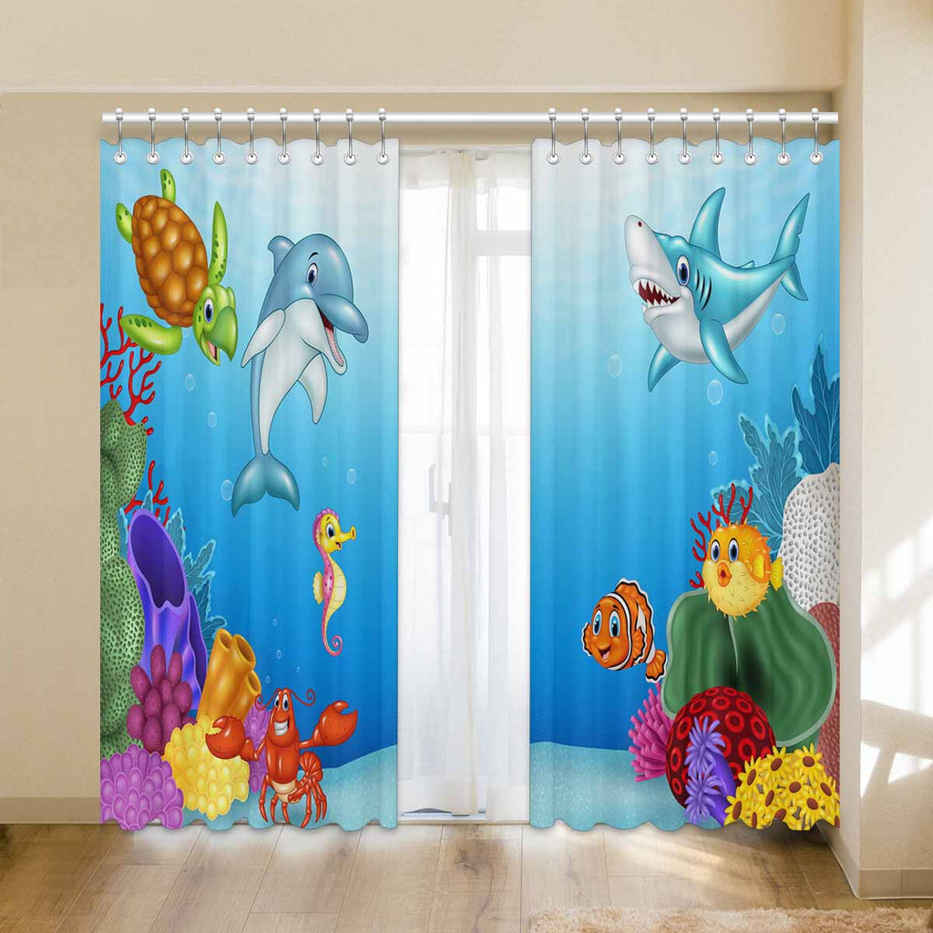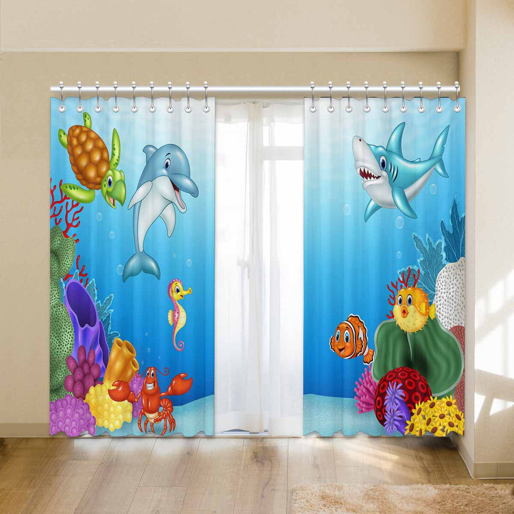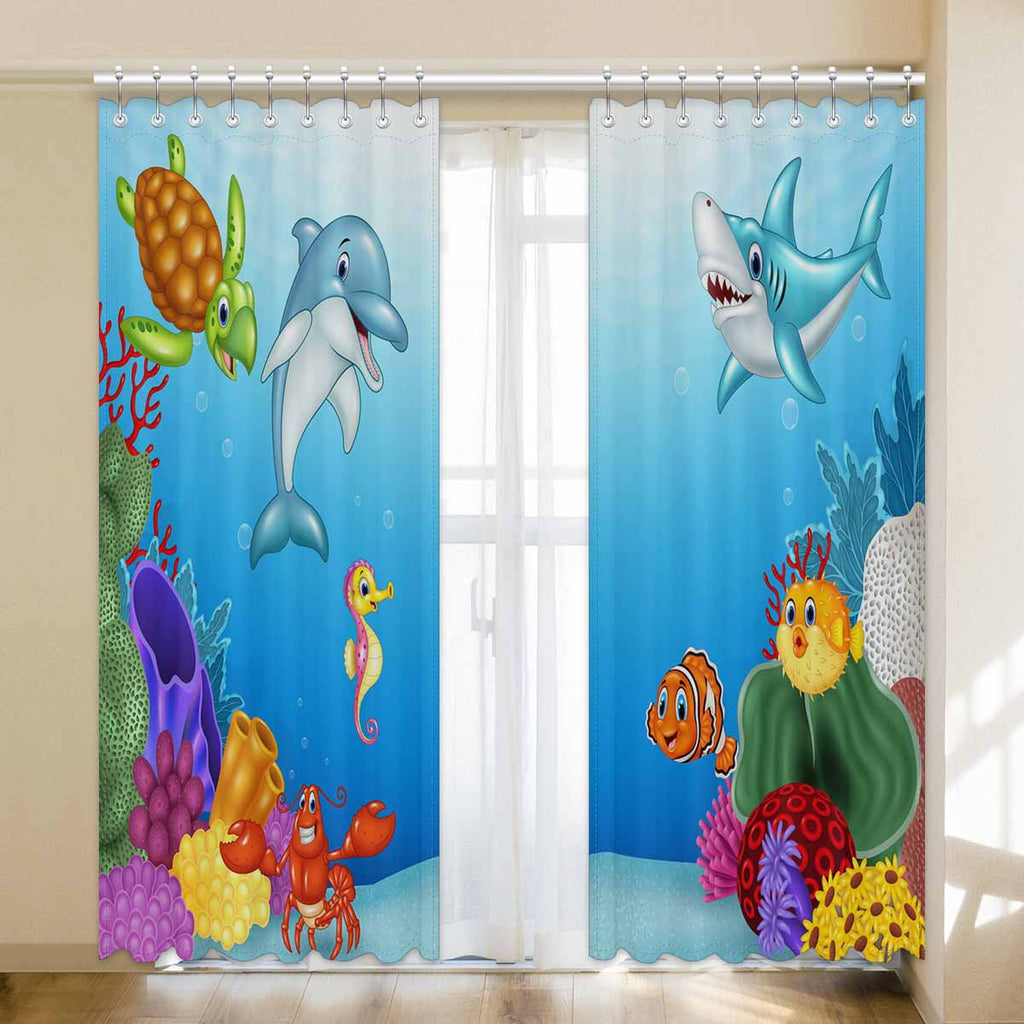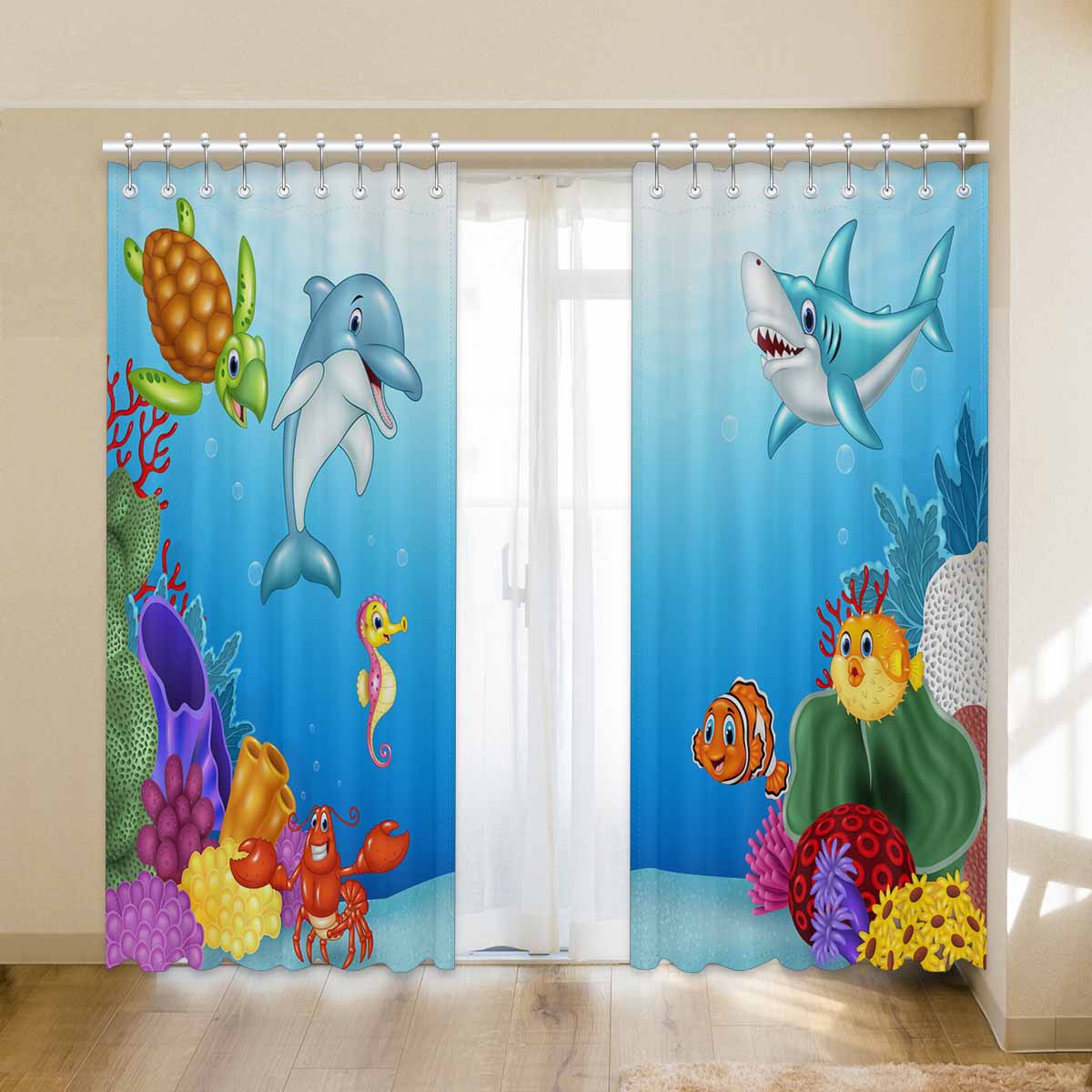 Seaworld Window Curtains print cartoon Shark whale turtle