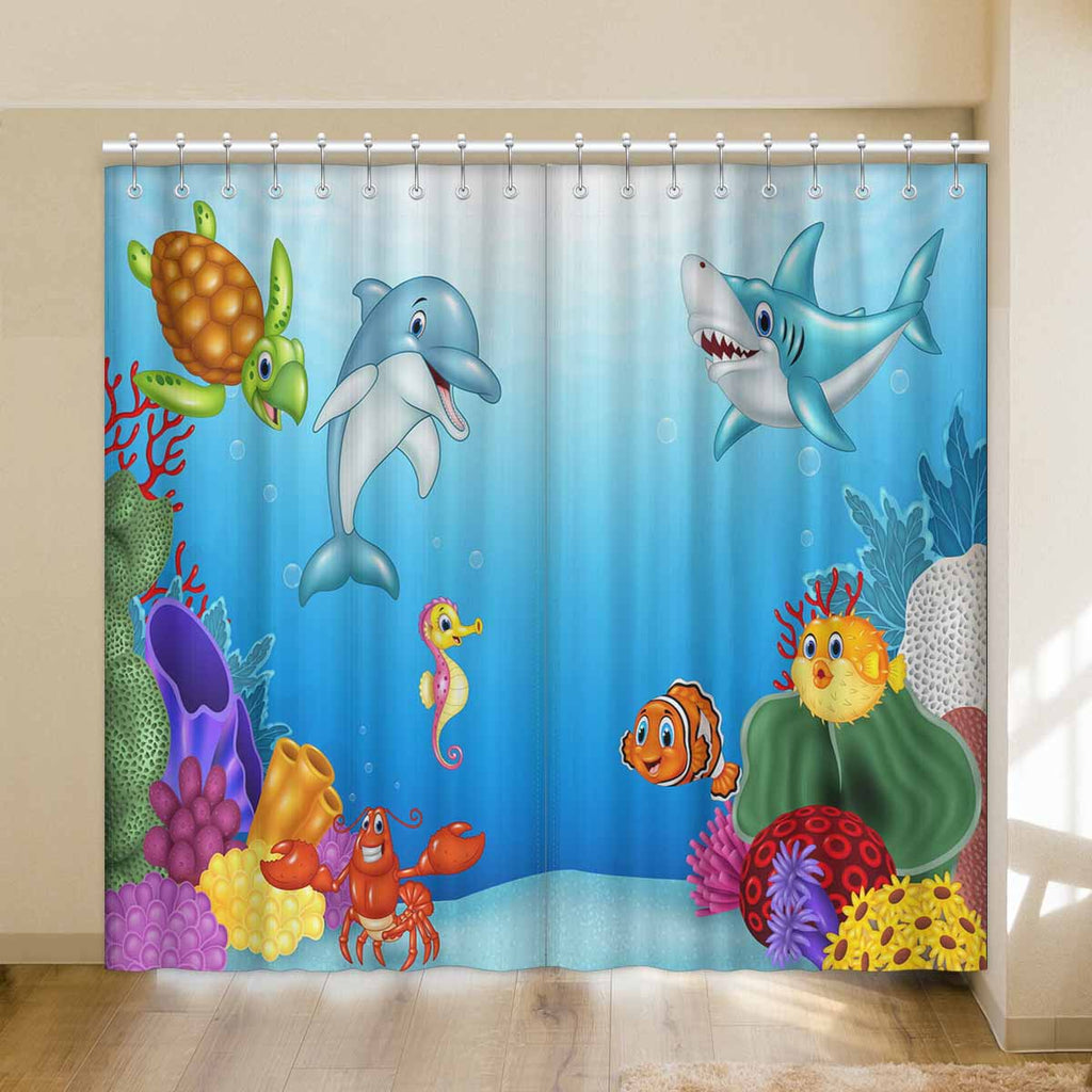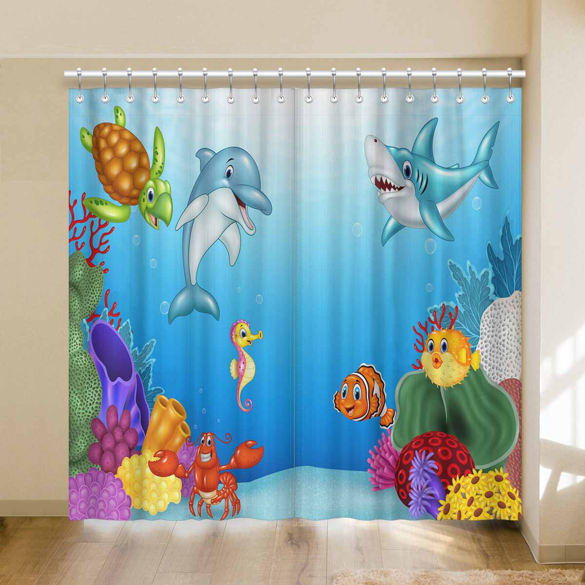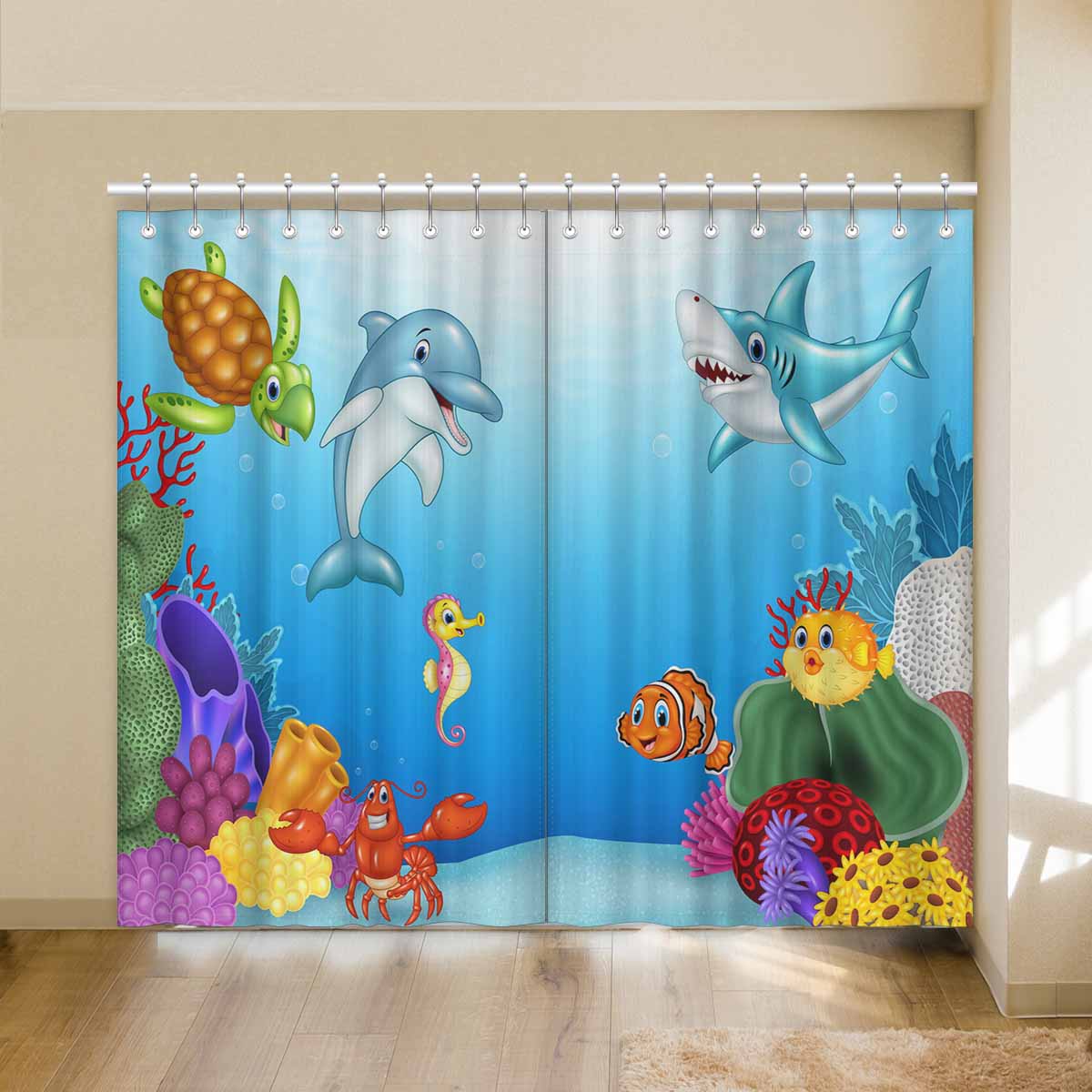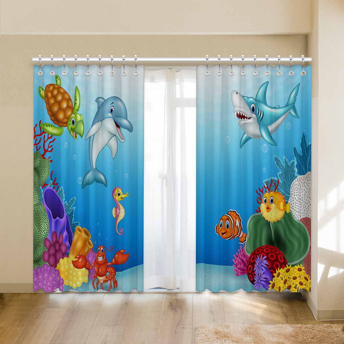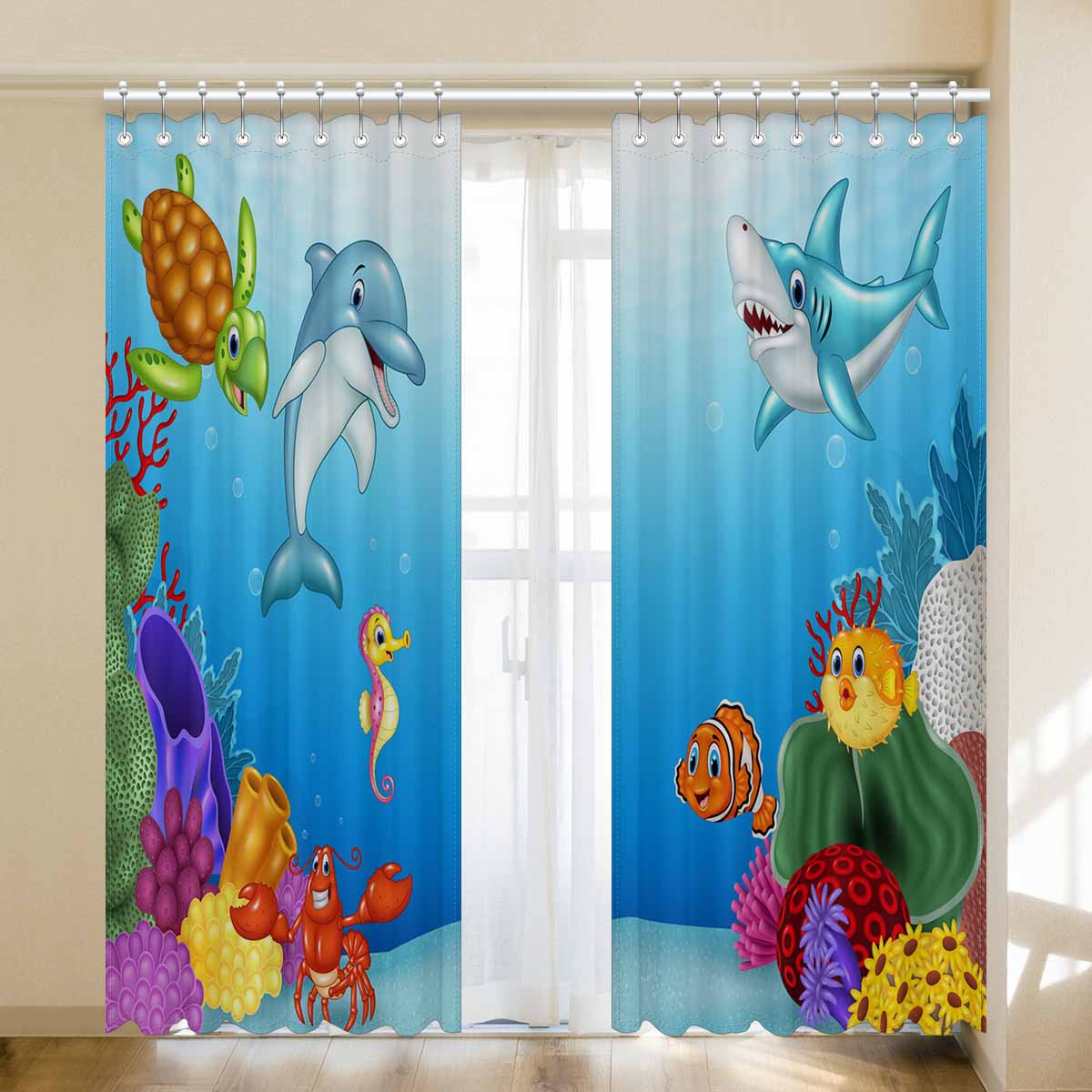 Seaworld Window Curtains print cartoon Shark whale turtle