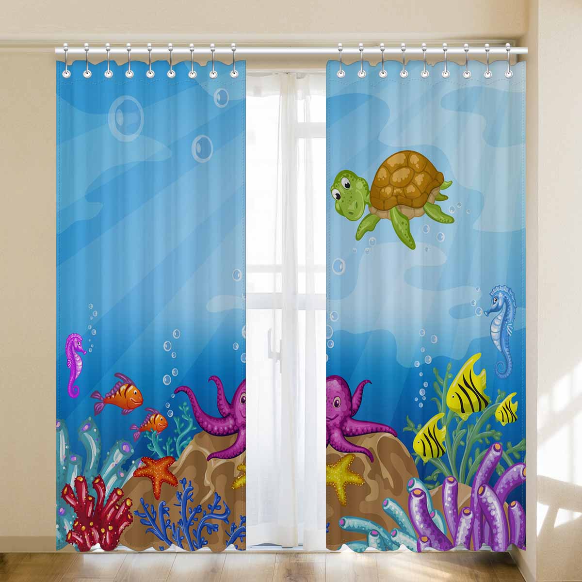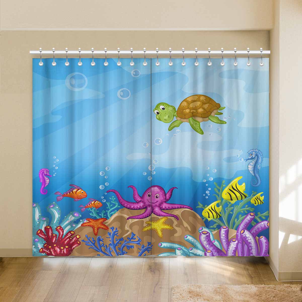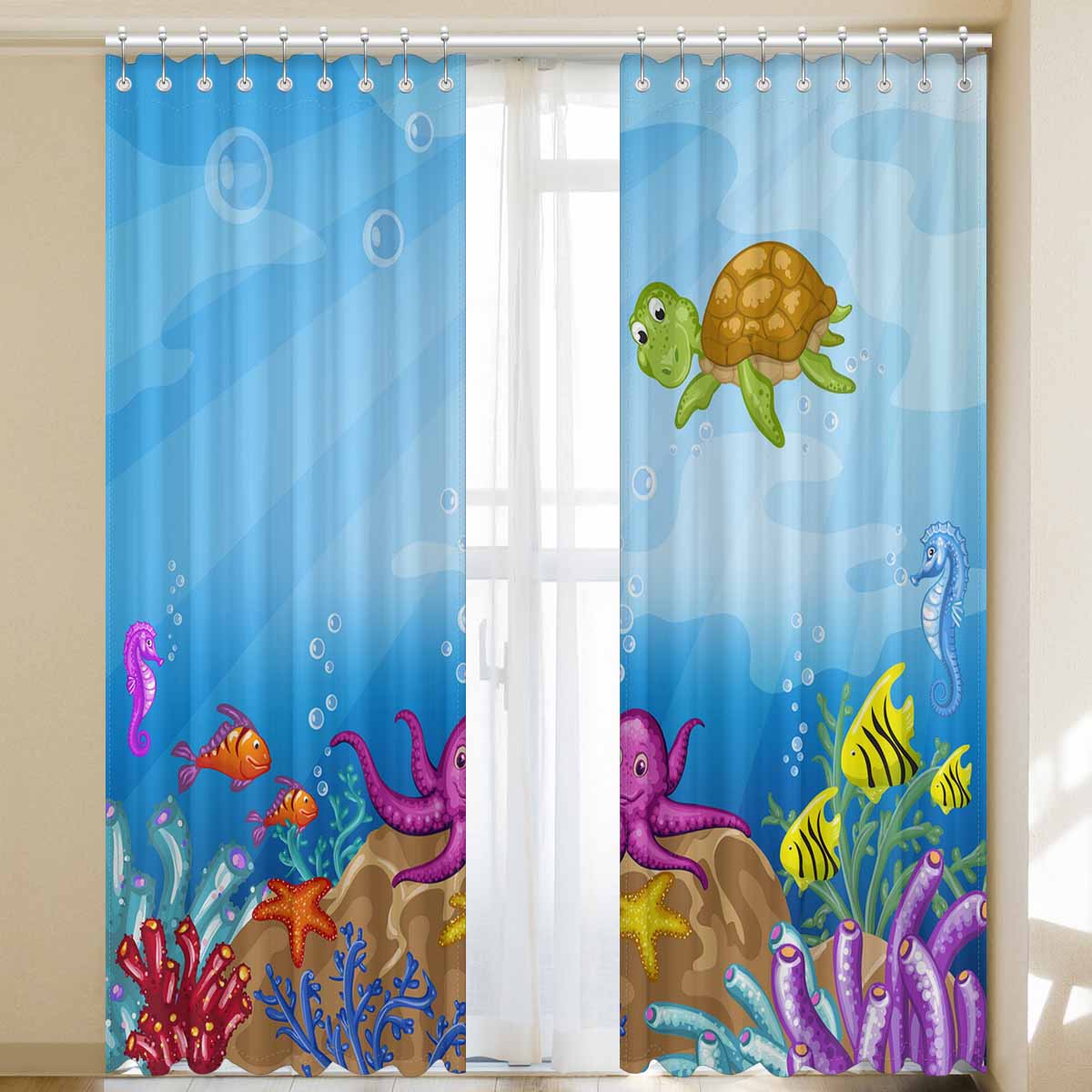Seaworld Window Curtains print cartoon Turtle Octopus