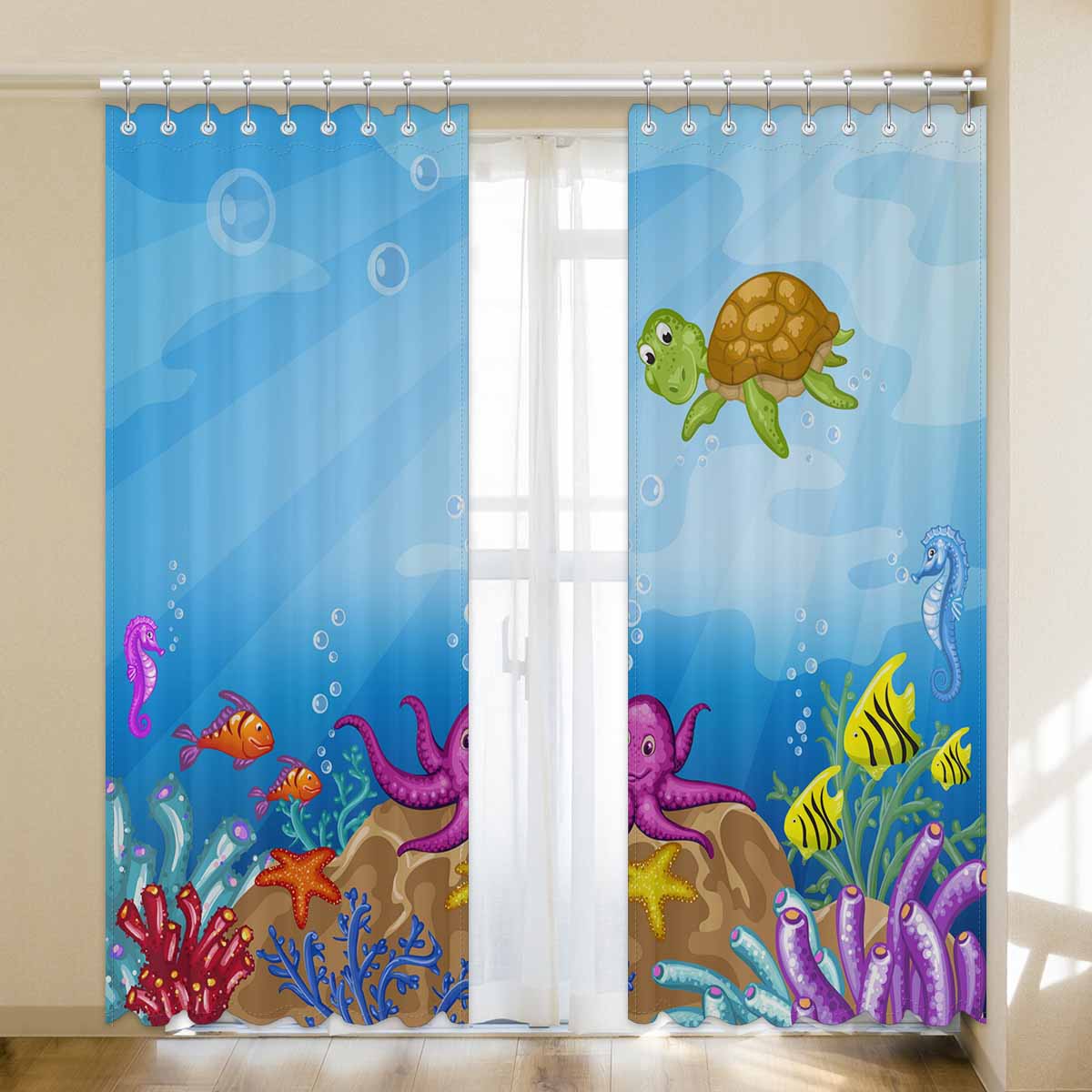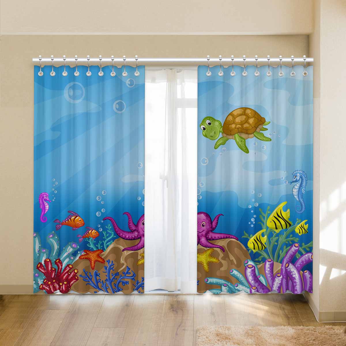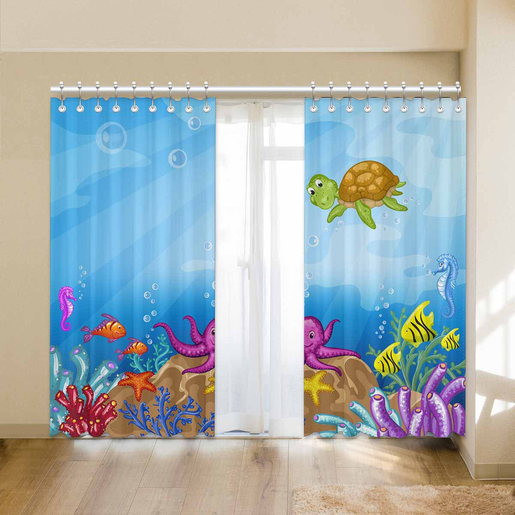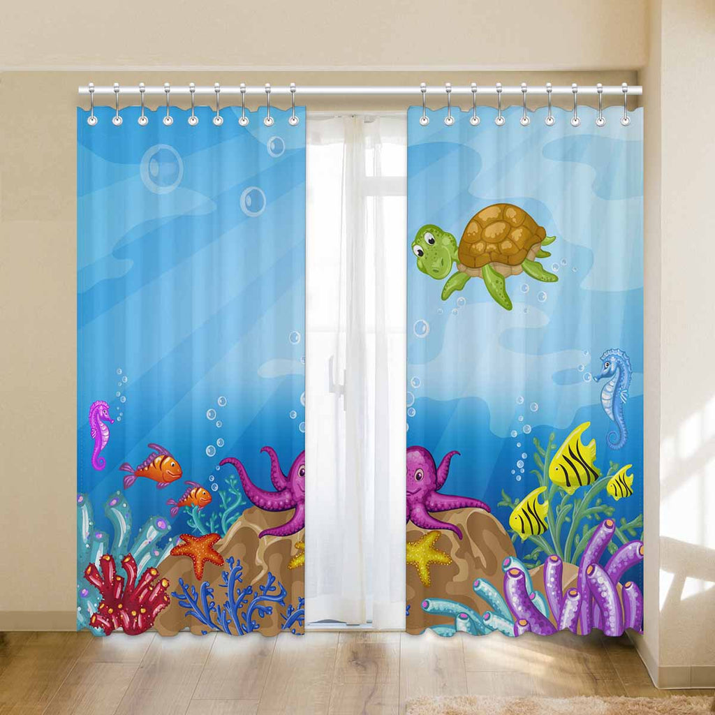 Seaworld Window Curtains print cartoon Turtle Octopus