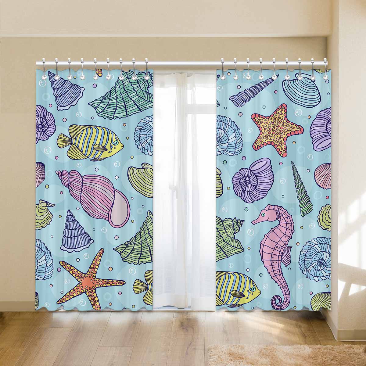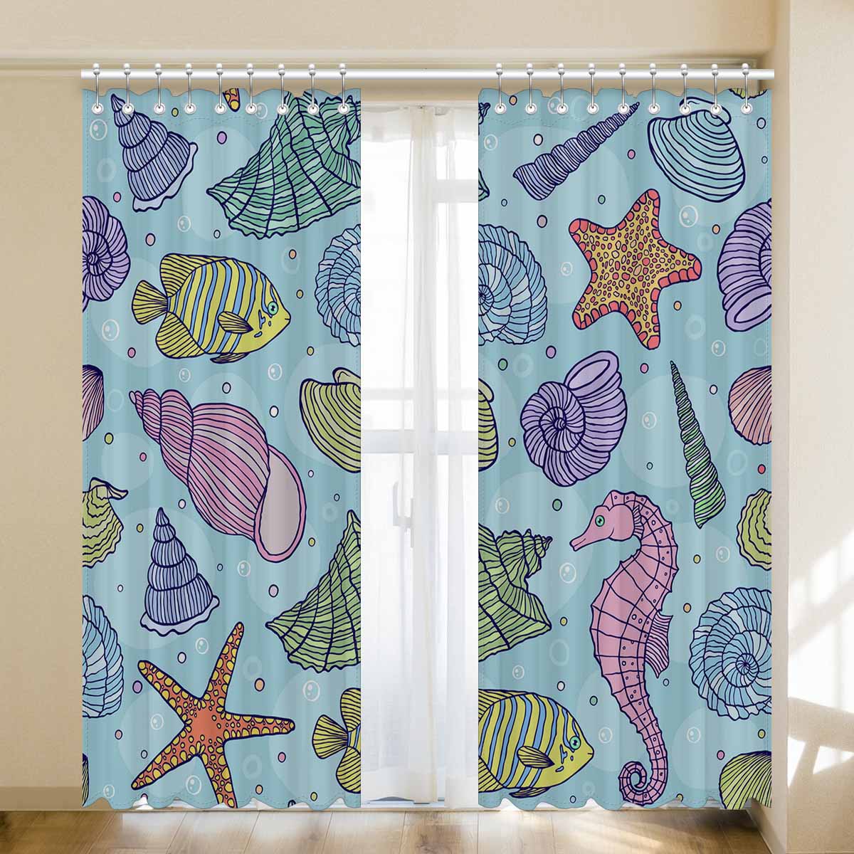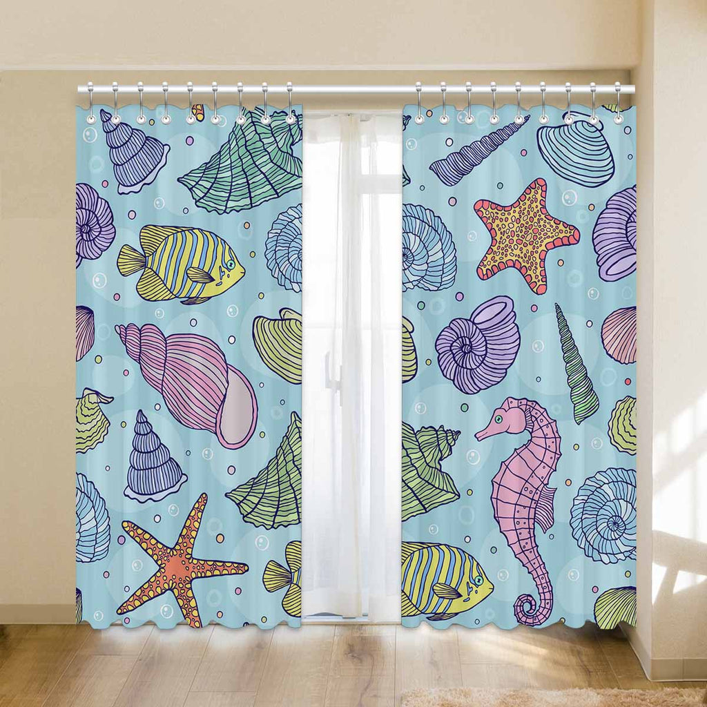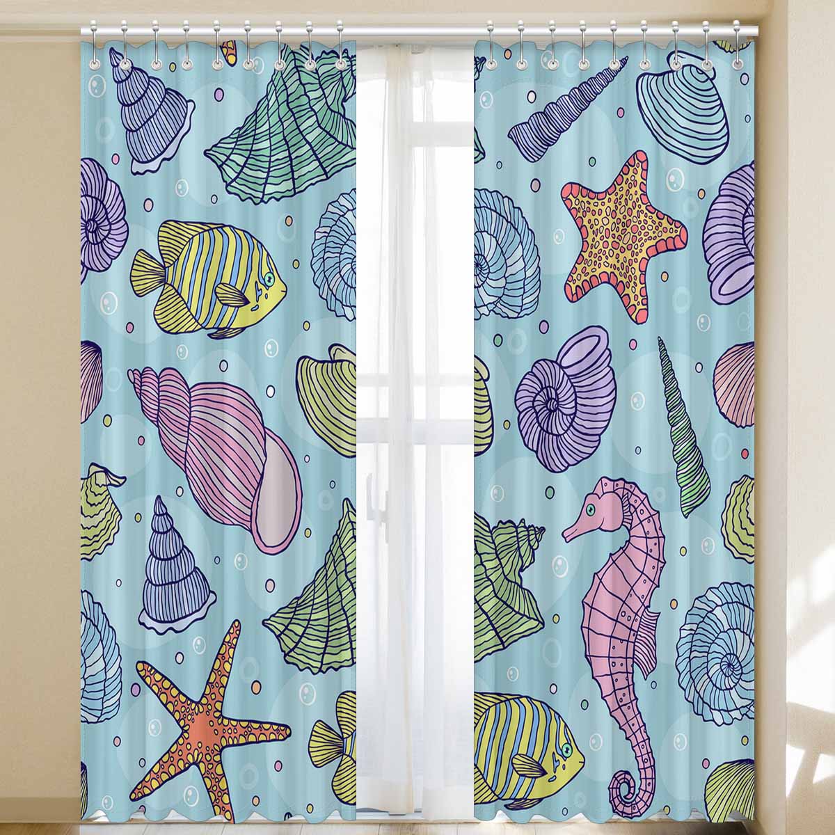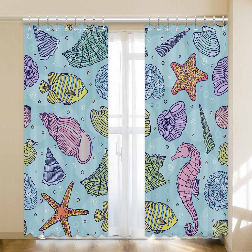 Seaworld Window Curtains print colored Jellyfish Starfish and Conch