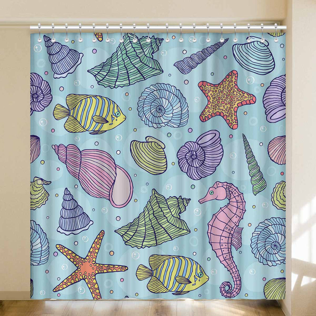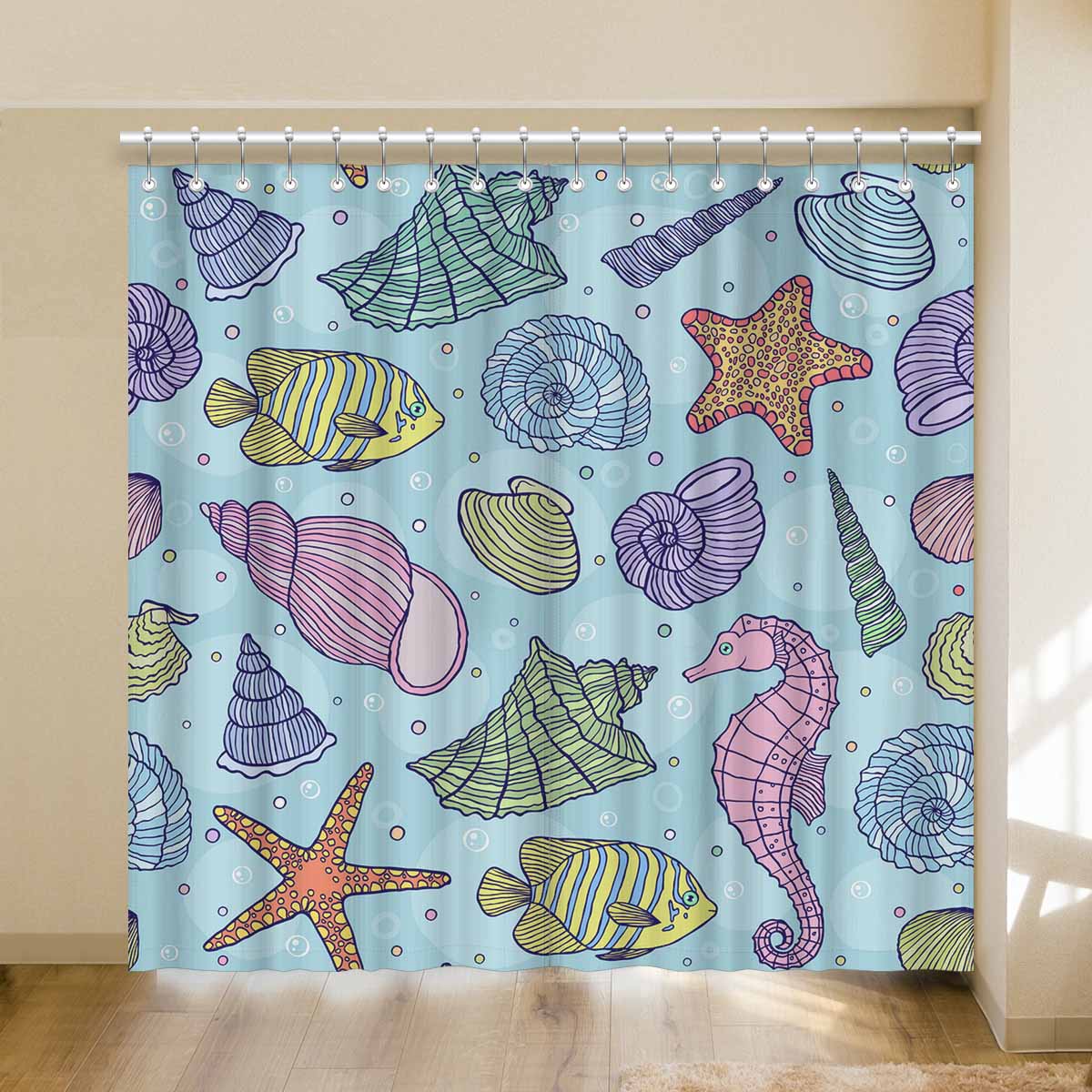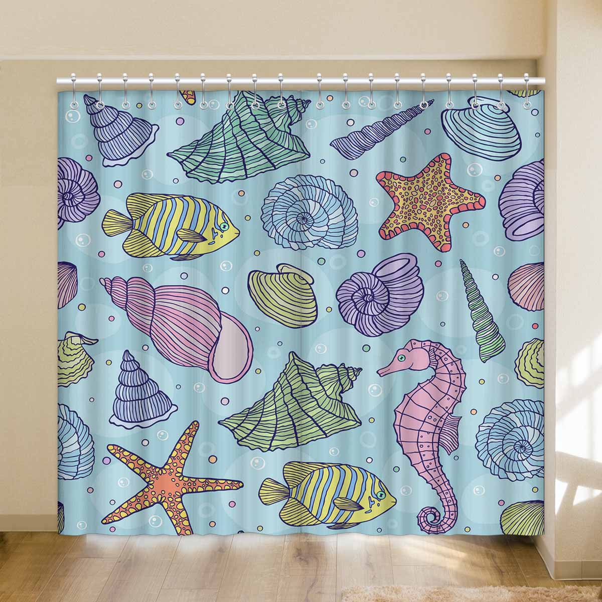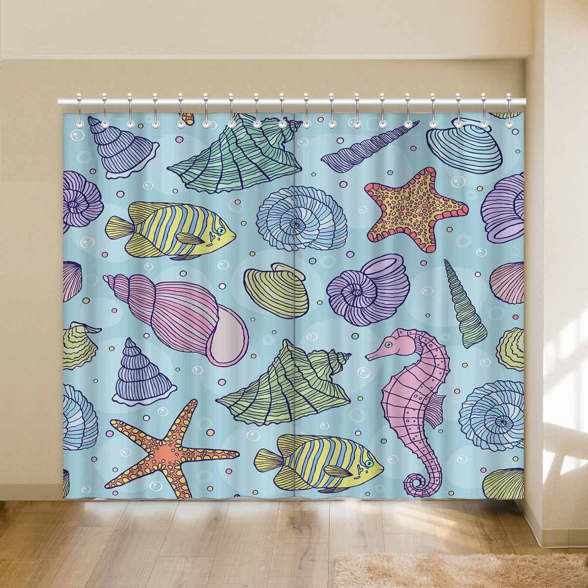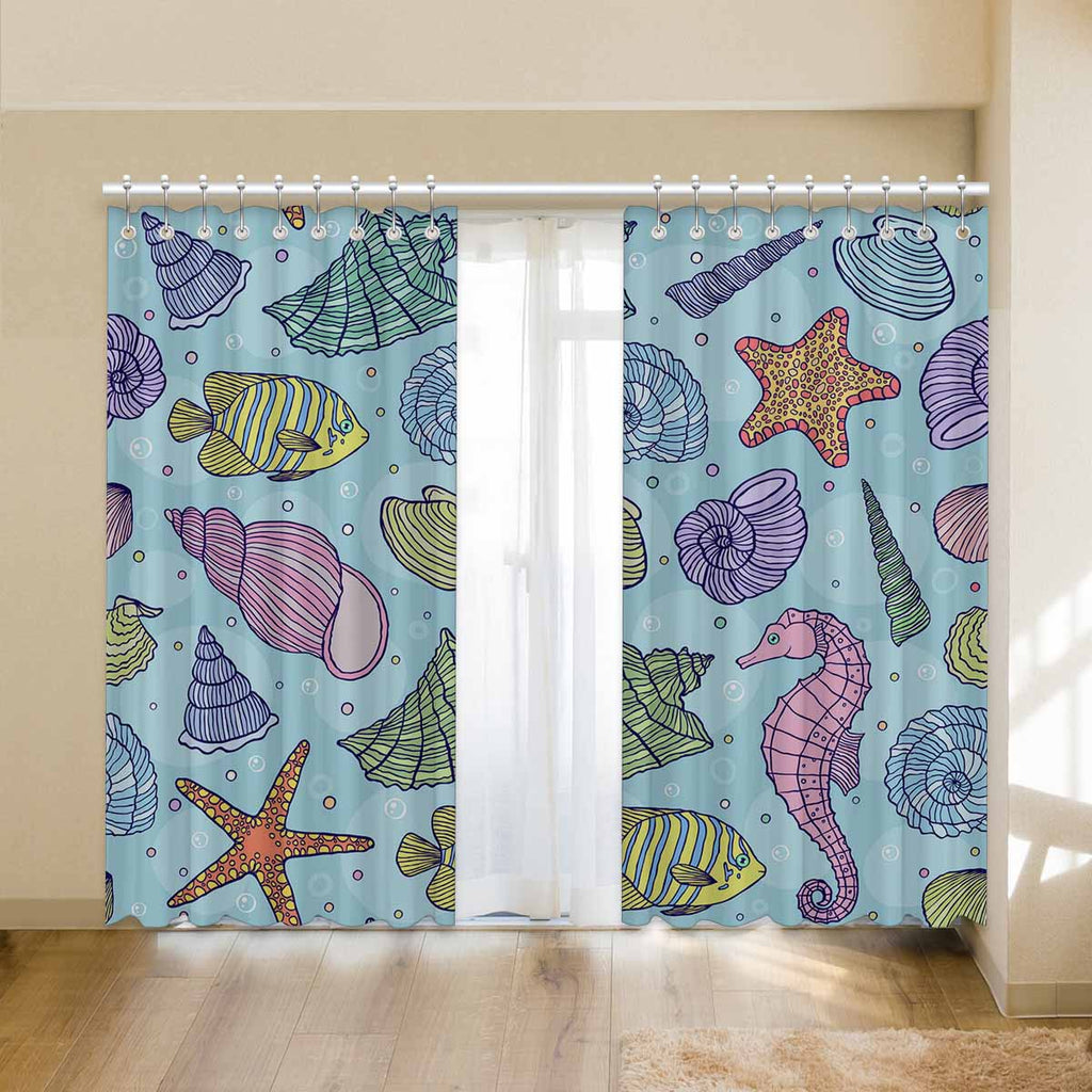 Seaworld Window Curtains print colored Jellyfish Starfish and Conch