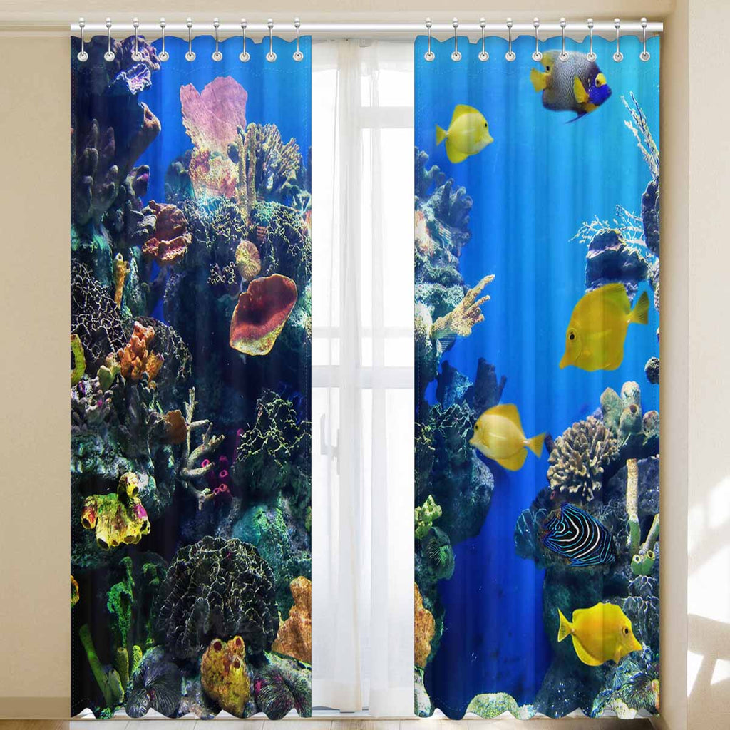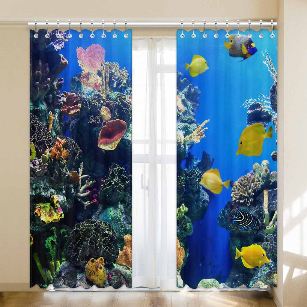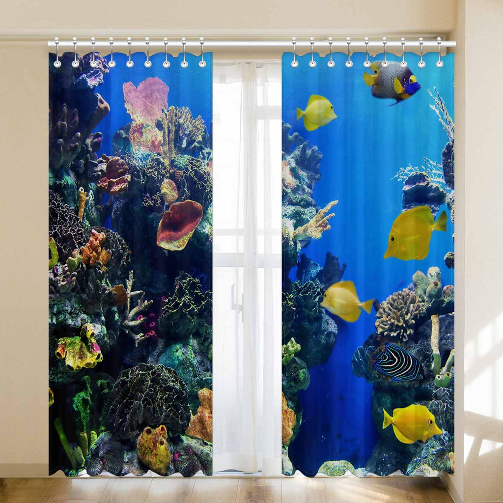 Seaworld Window Curtains print Colorful and vibrant aquarium life pattern