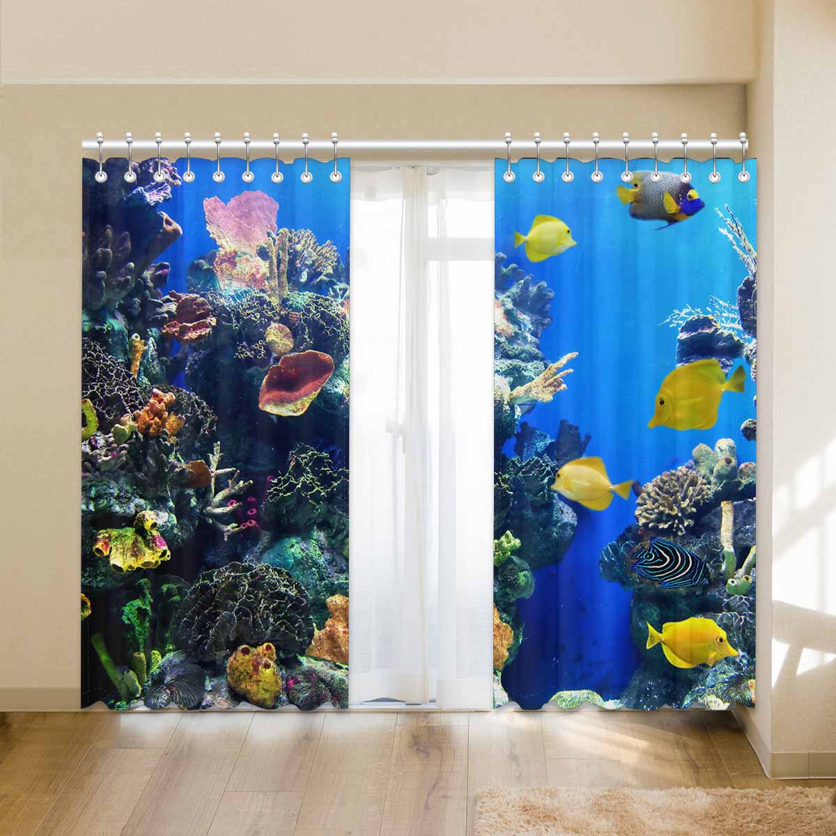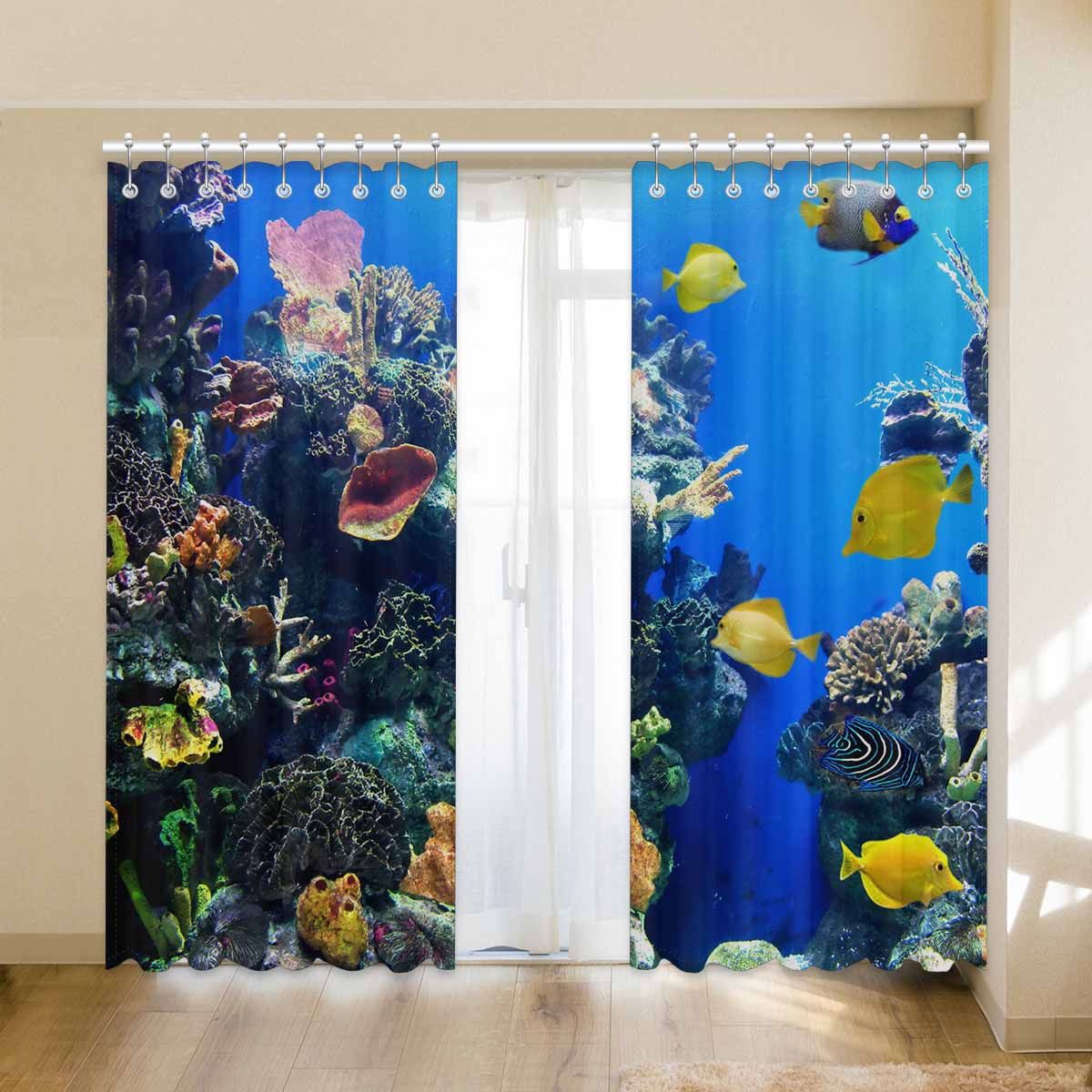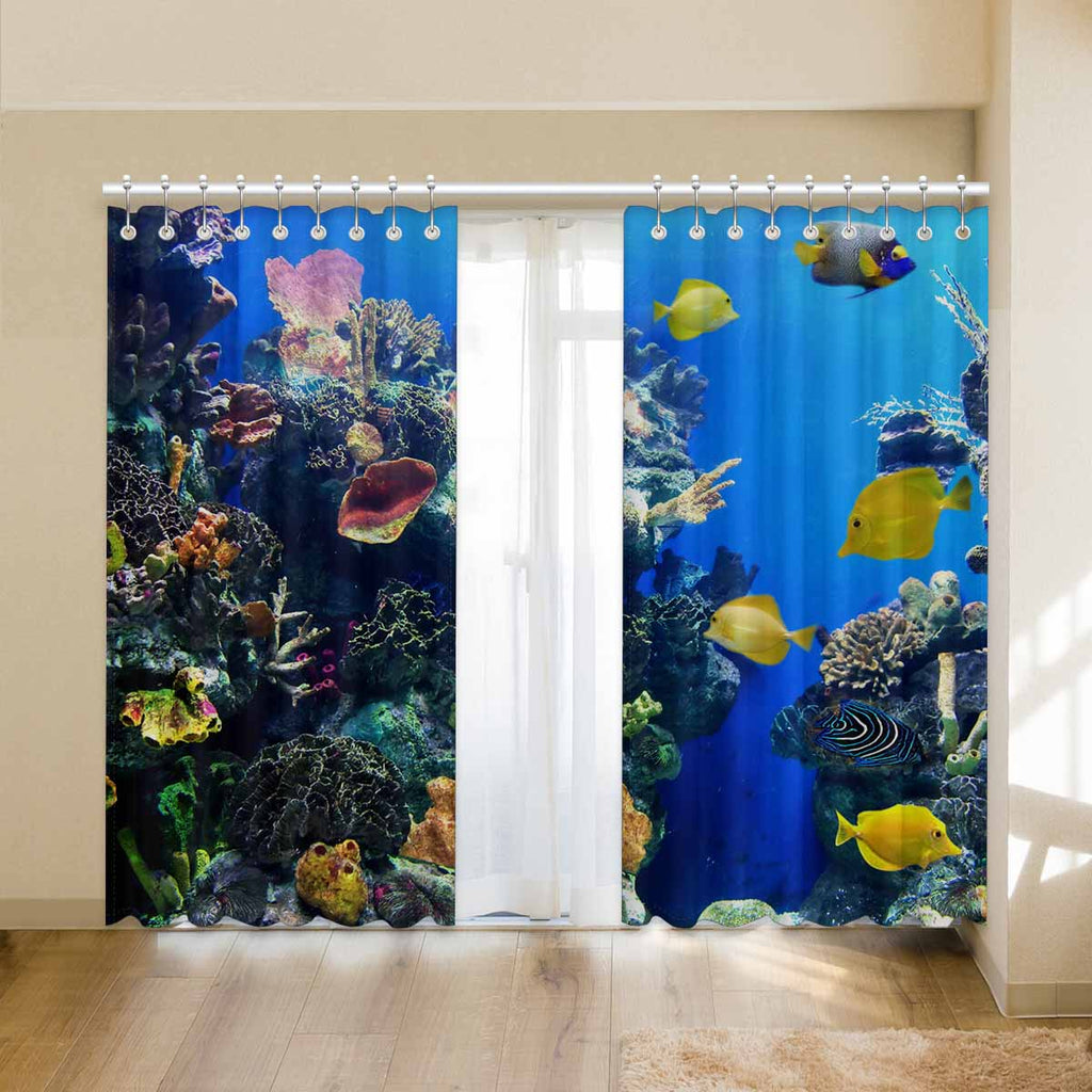 Seaworld Window Curtains print Colorful and vibrant aquarium life pattern