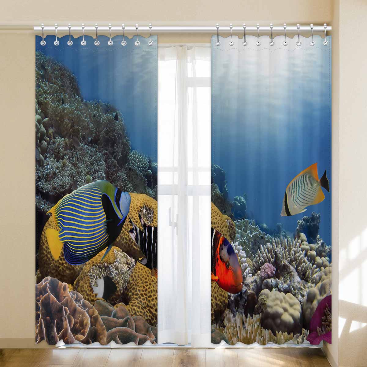 Seaworld Window Curtains print Colorful reef underwater landscape