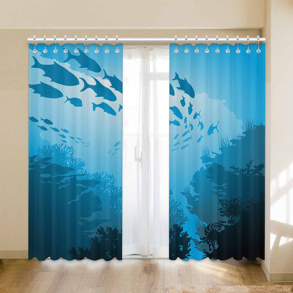Seaworld Window Curtains print coral reefs and fishes pattern
