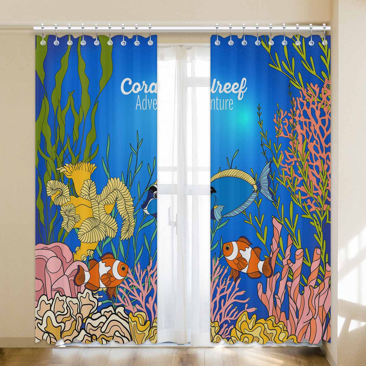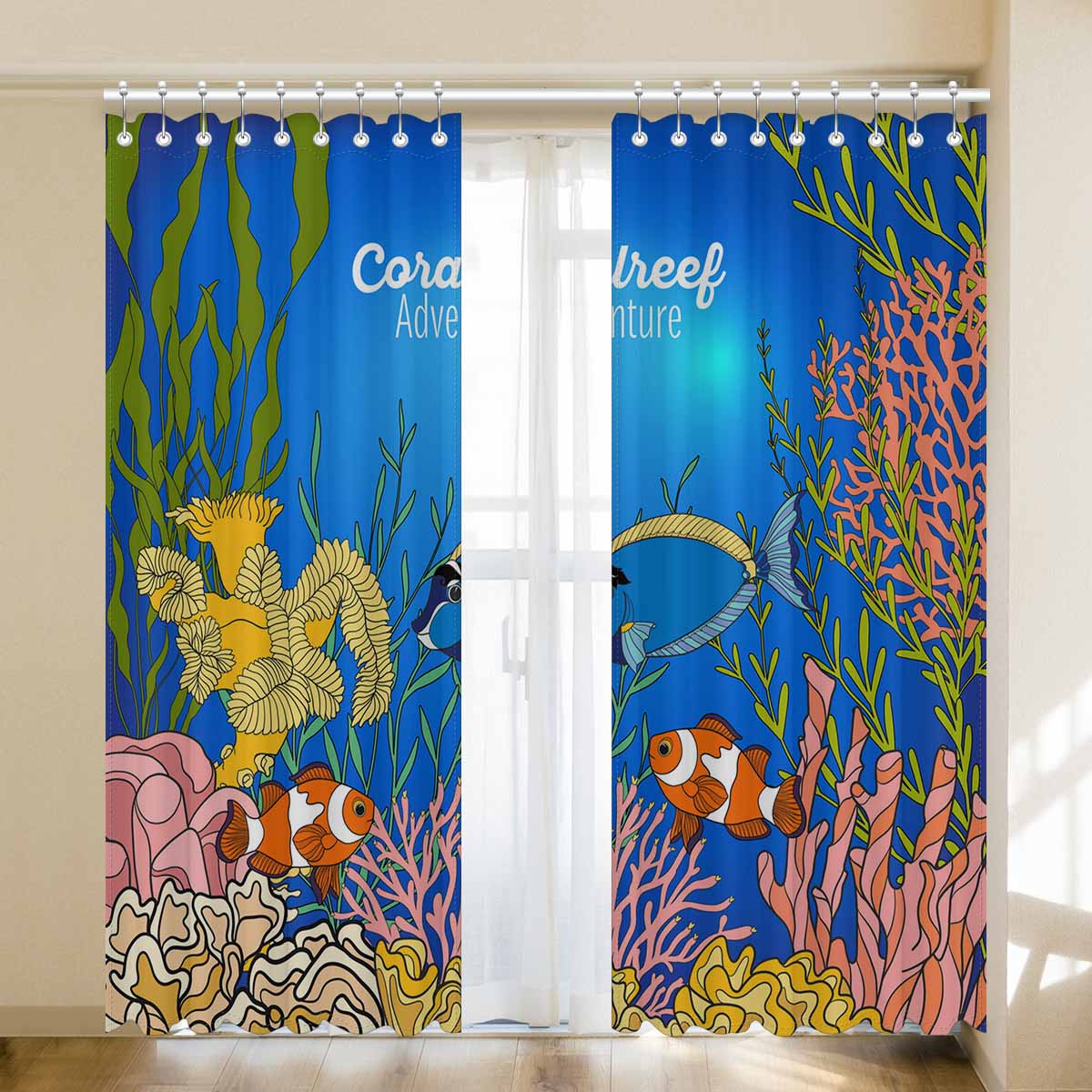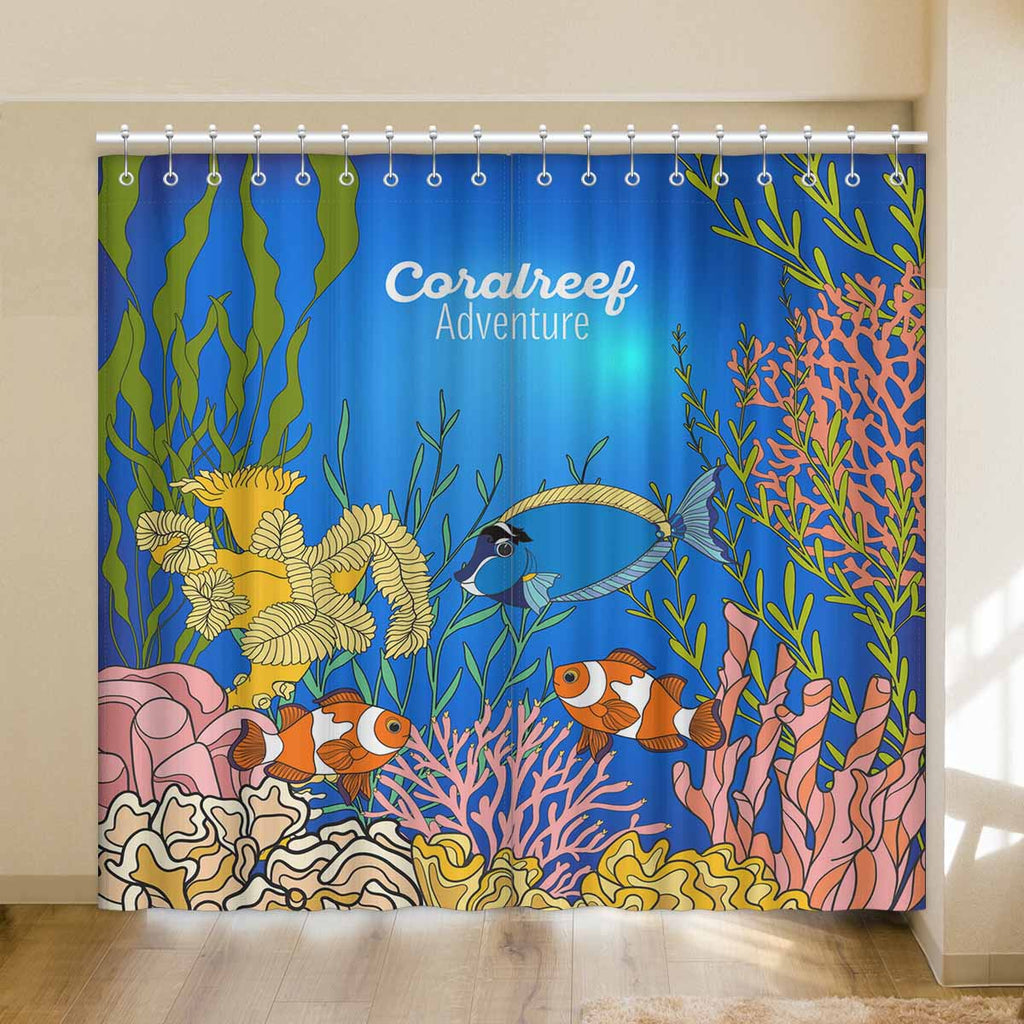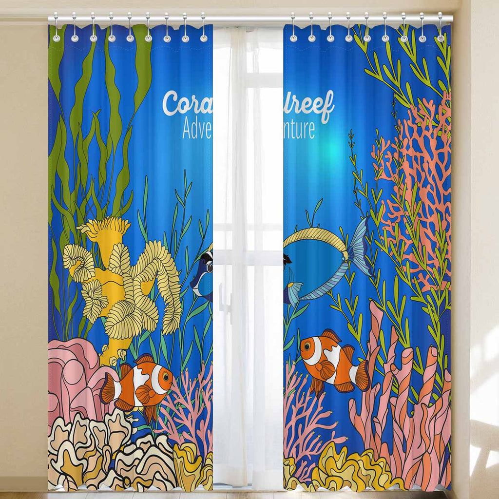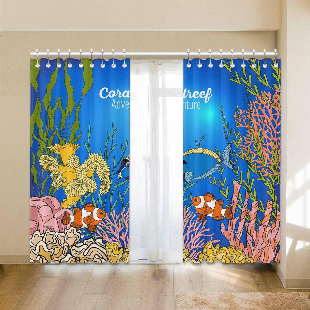 Seaworld Window Curtains print Corals fish and seaweeds