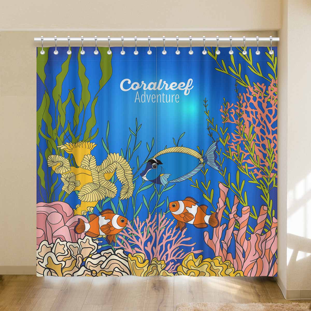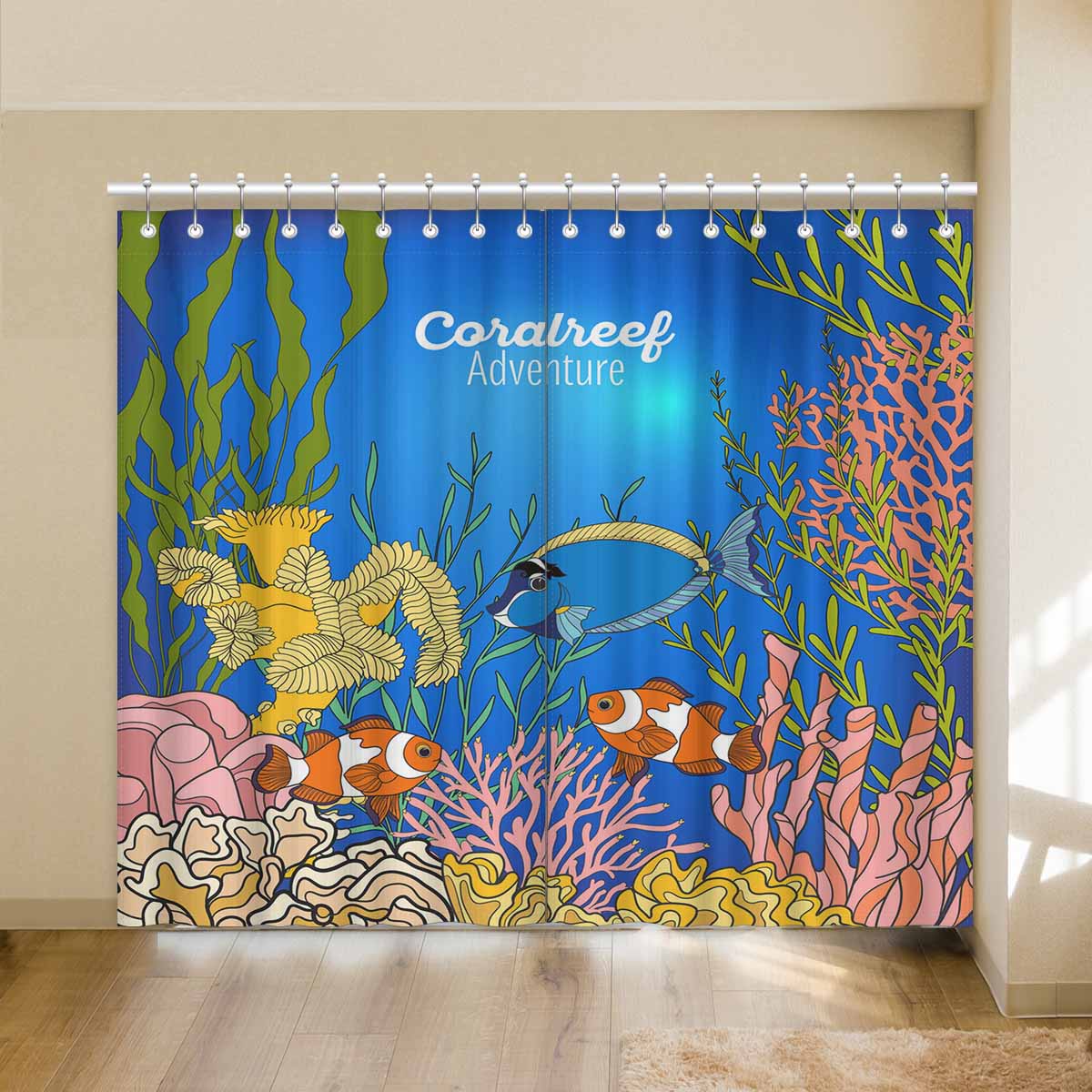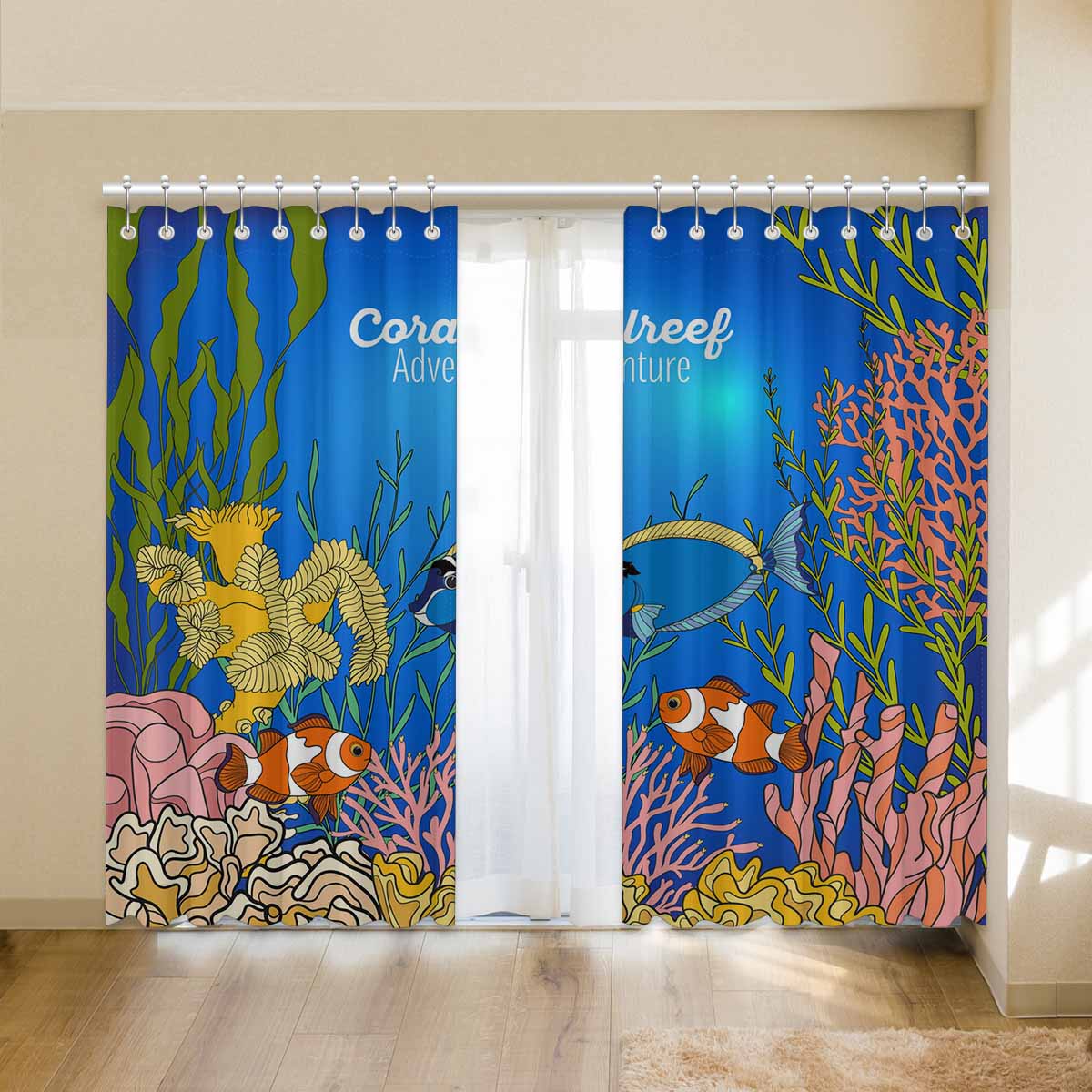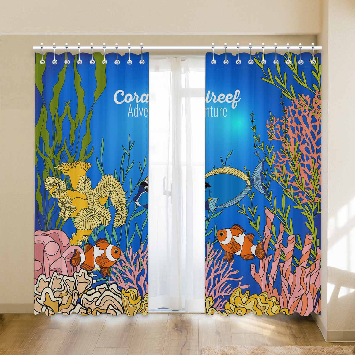 Seaworld Window Curtains print Corals fish and seaweeds