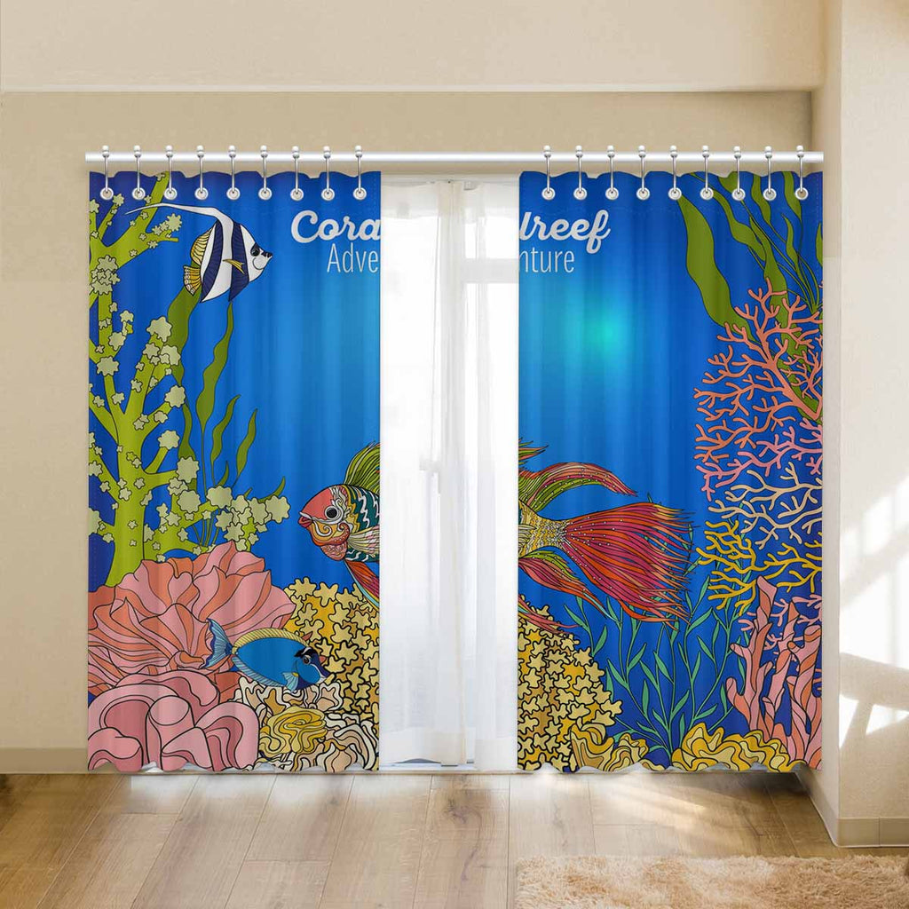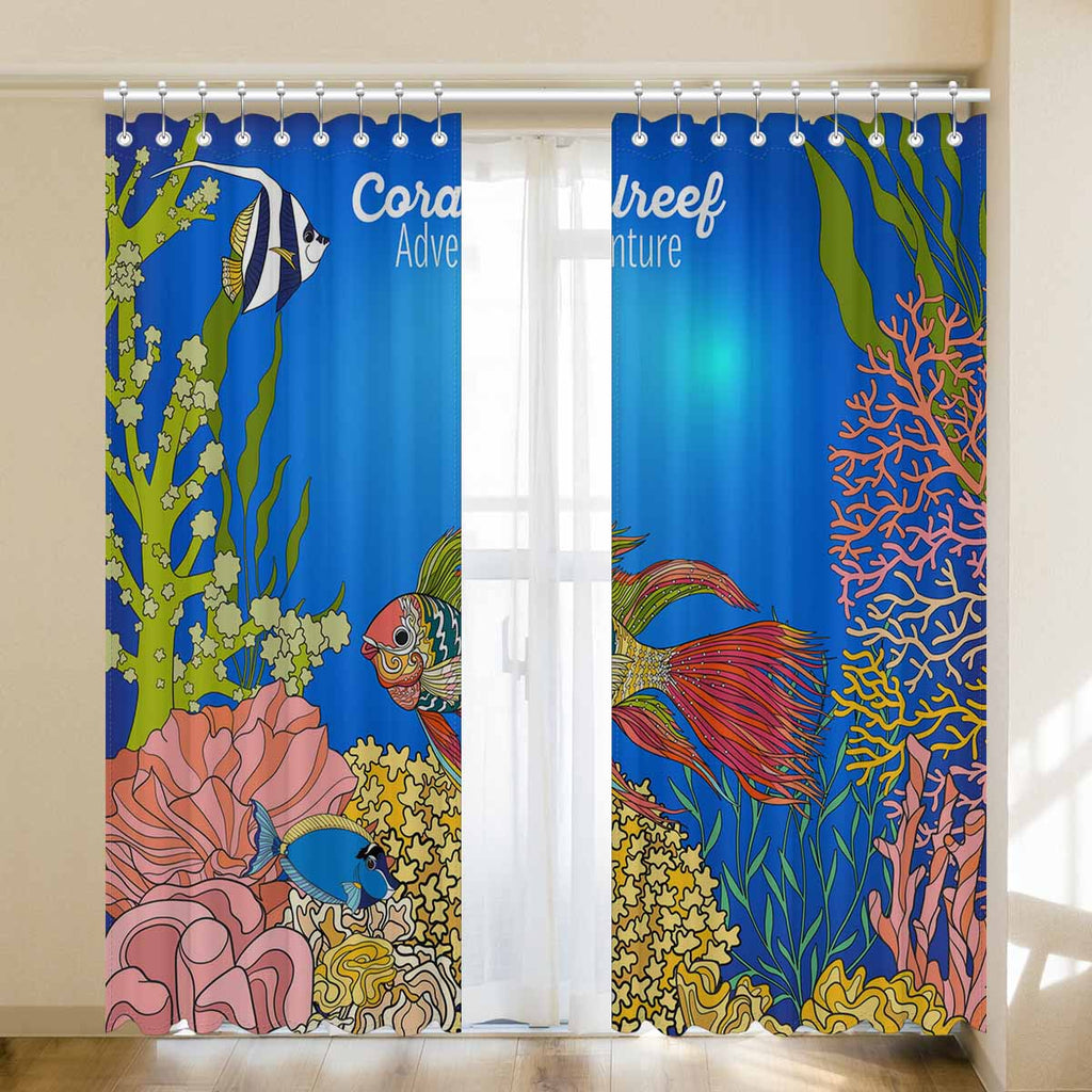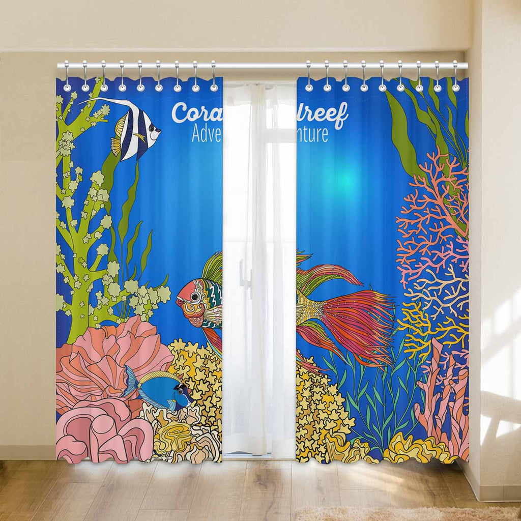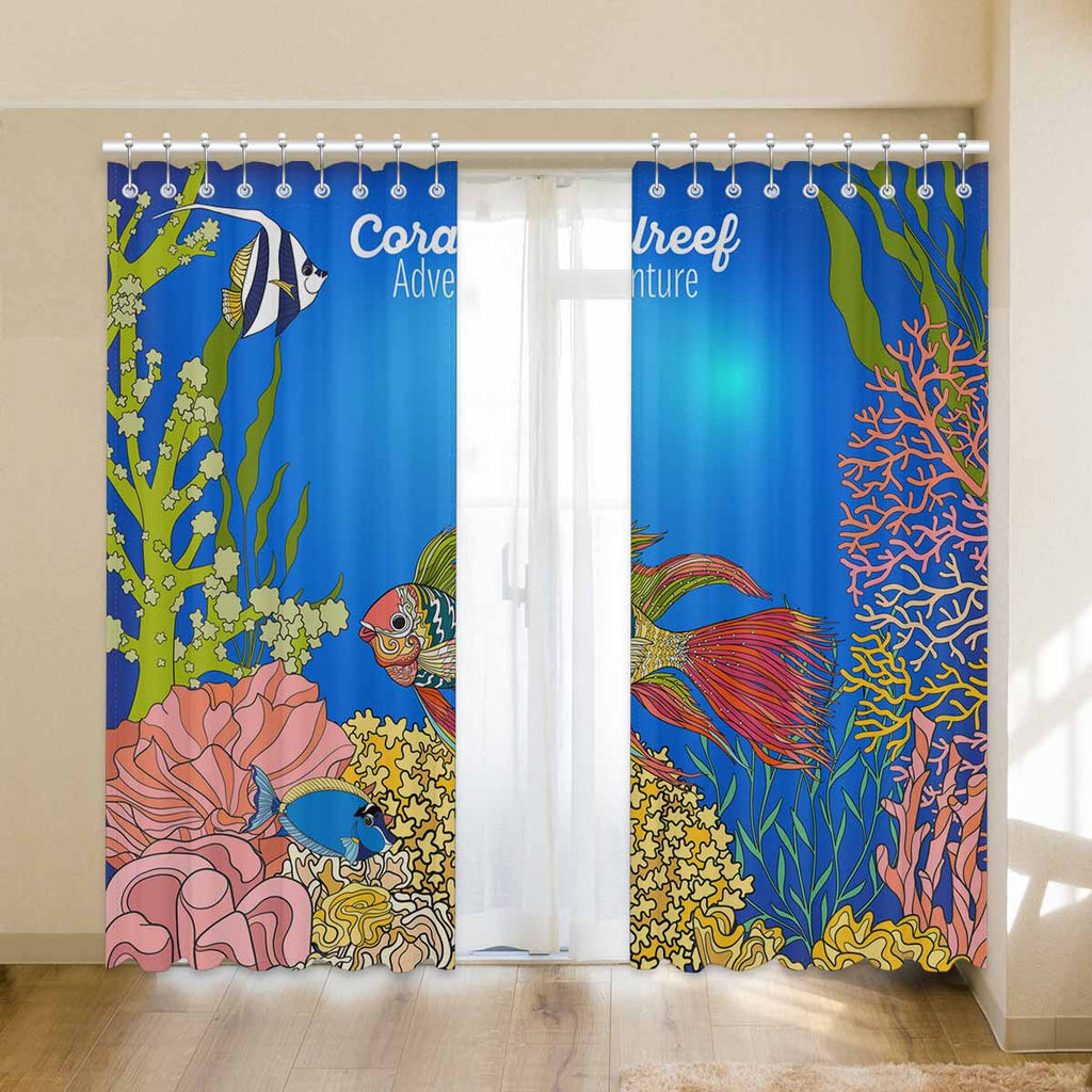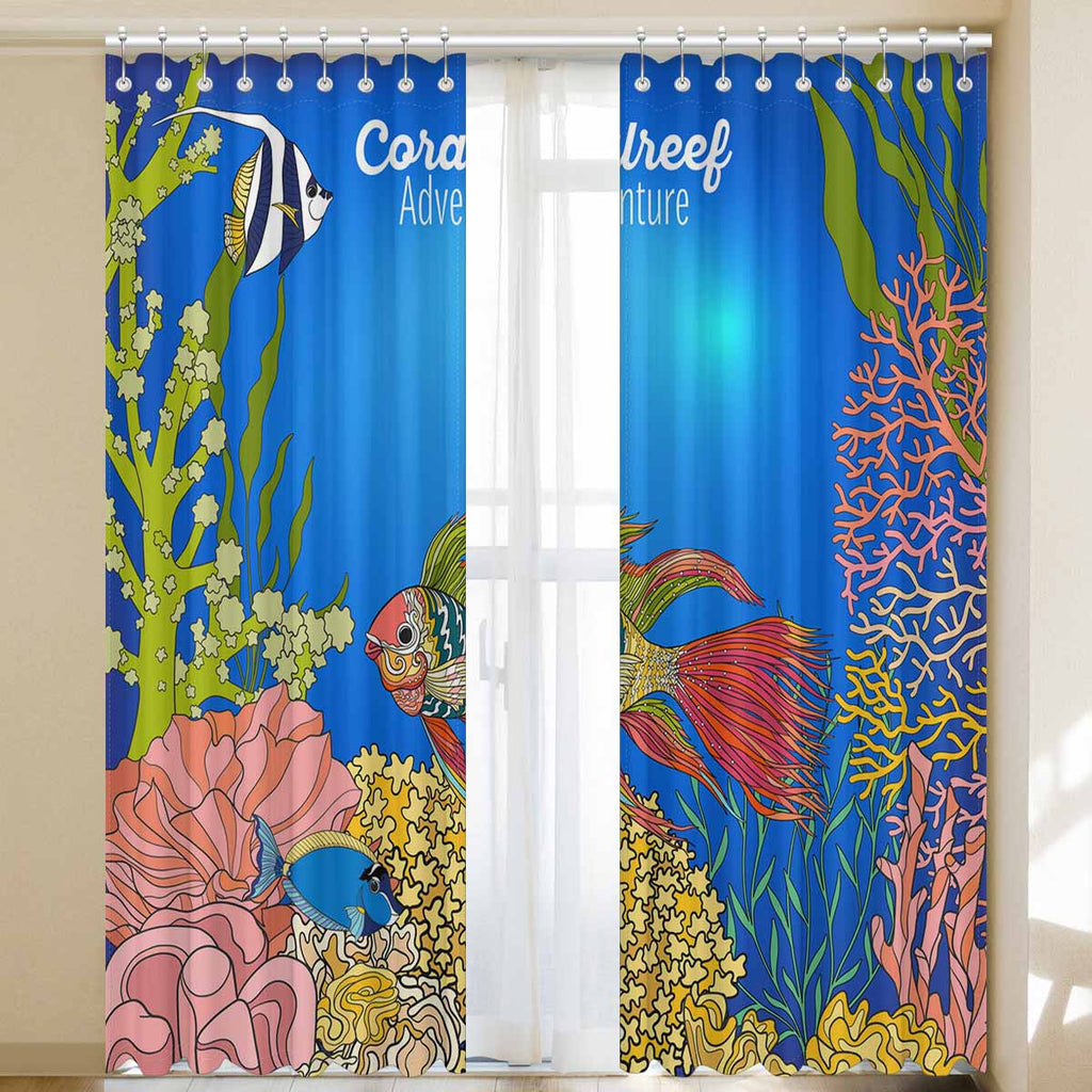 Seaworld Window Curtains print cute Corals fish and seaweeds