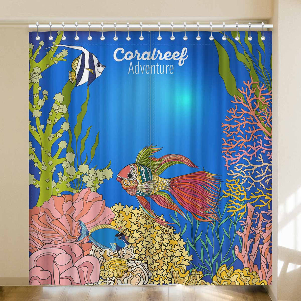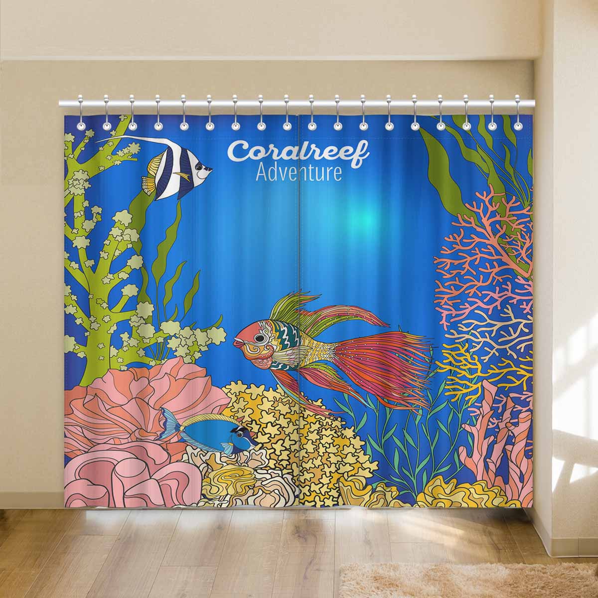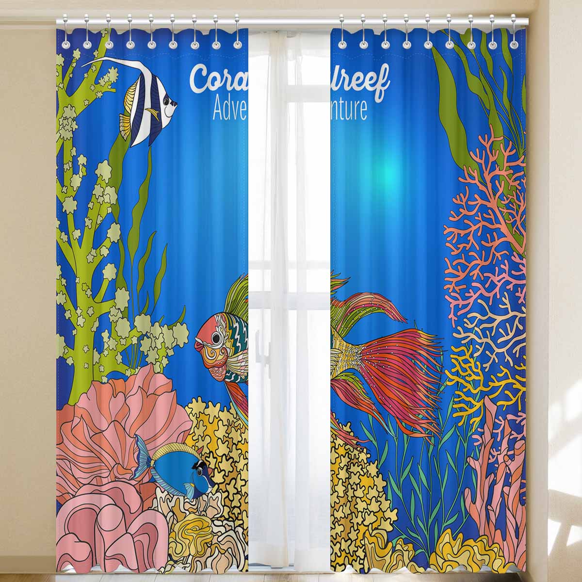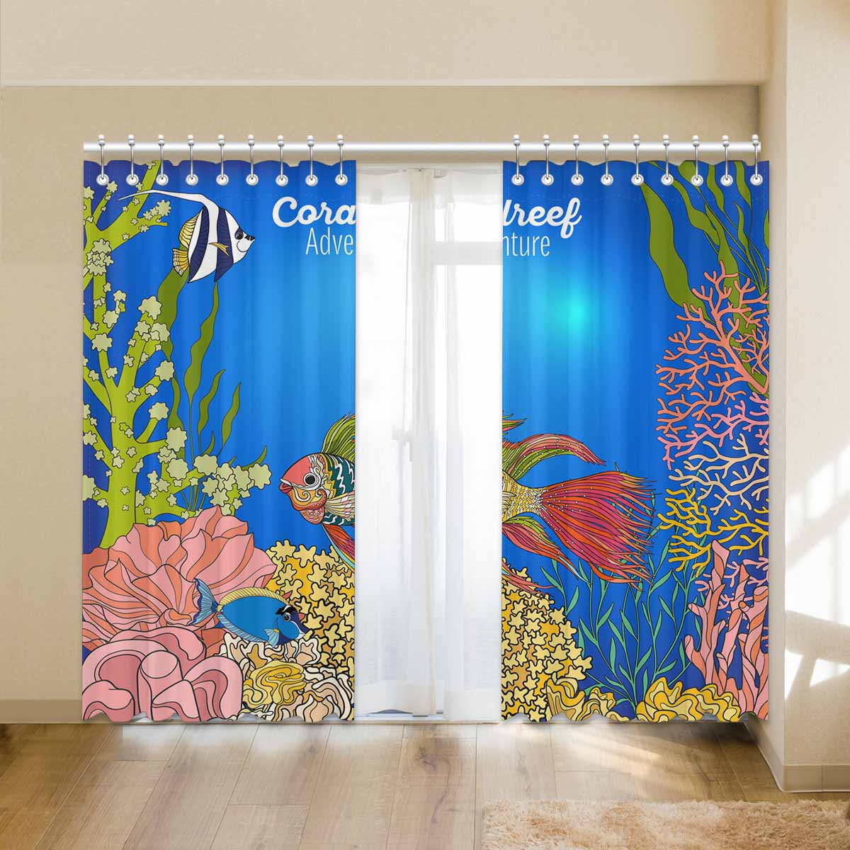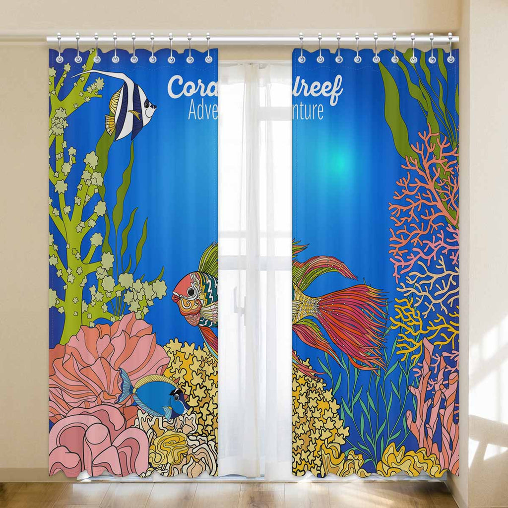 Seaworld Window Curtains print cute Corals fish and seaweeds
