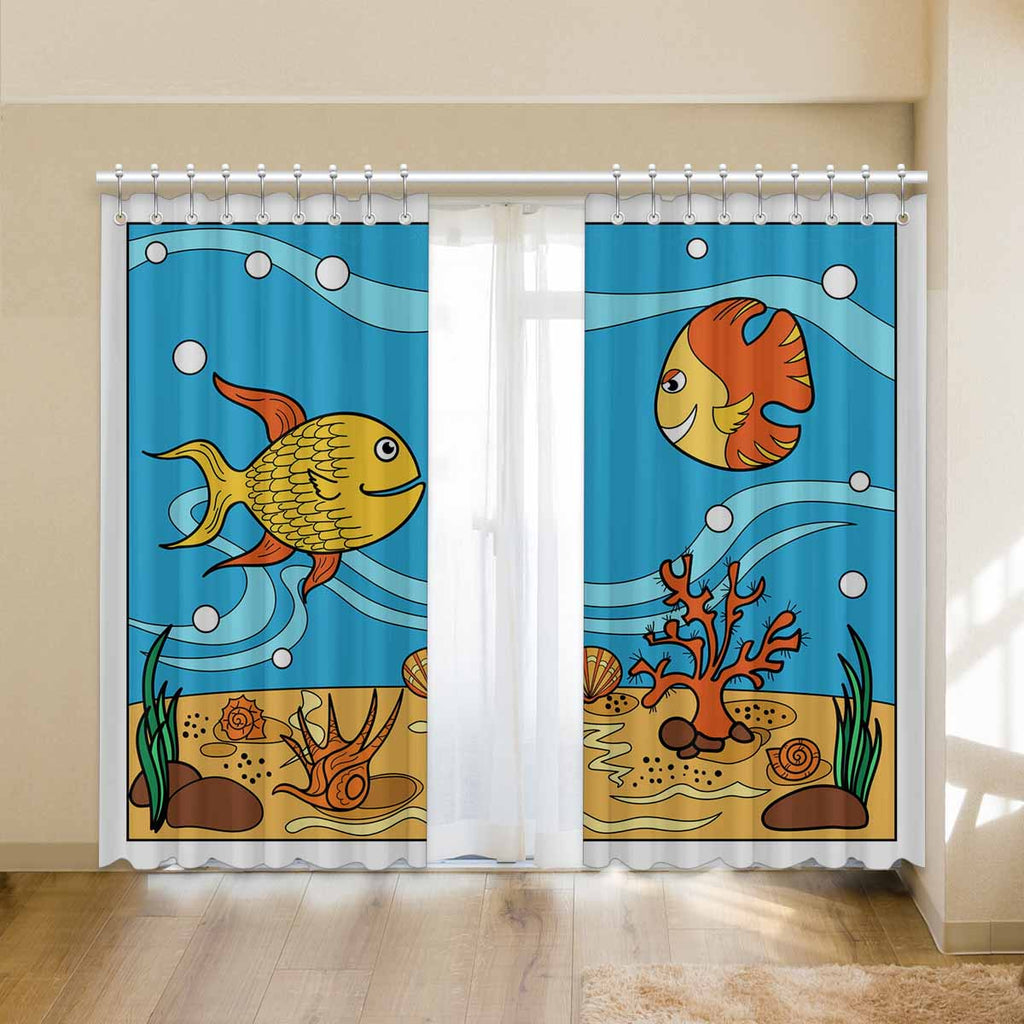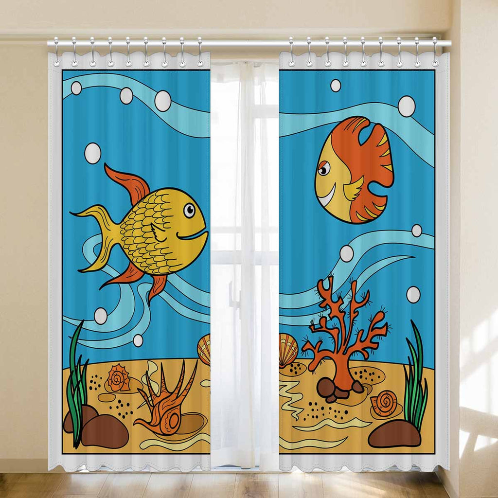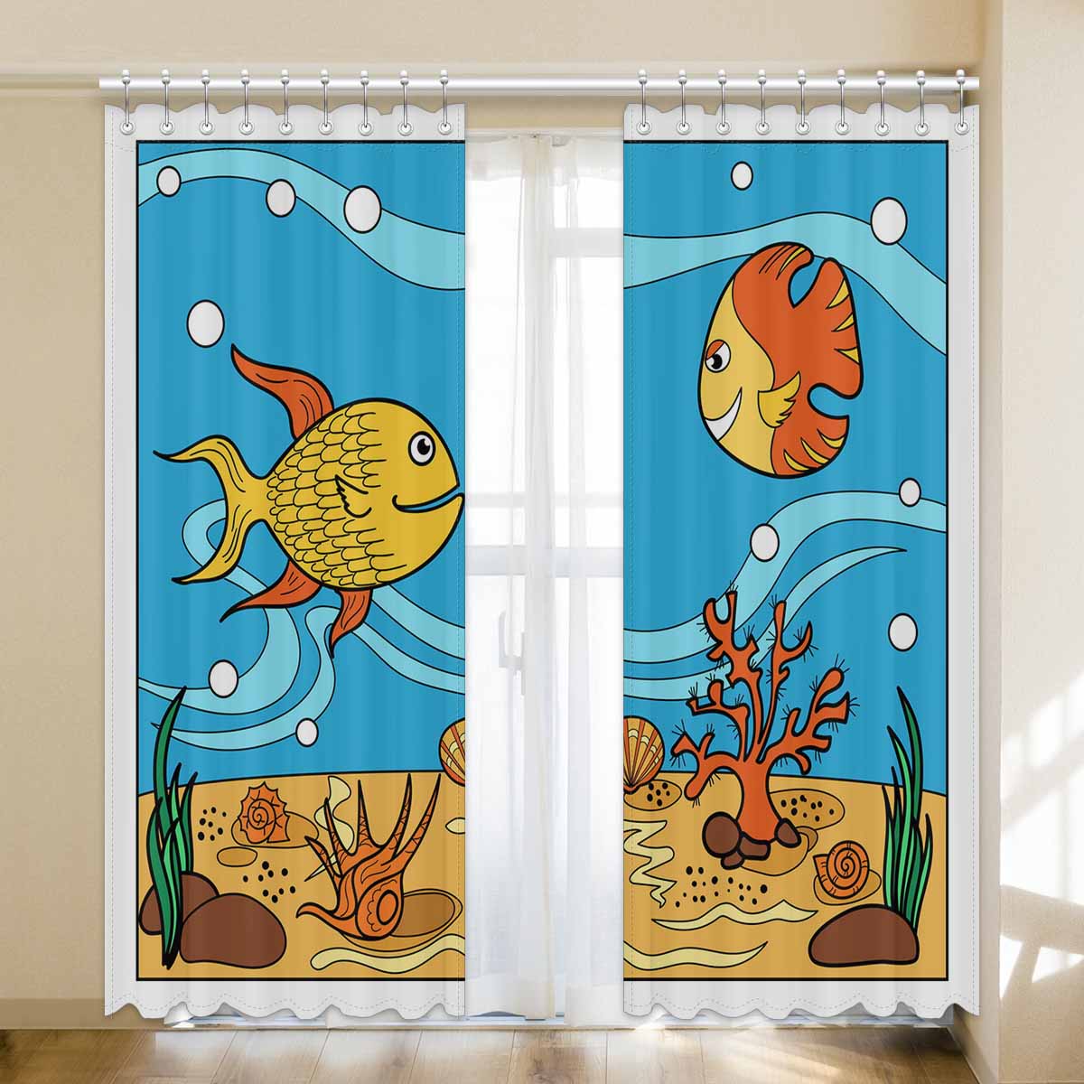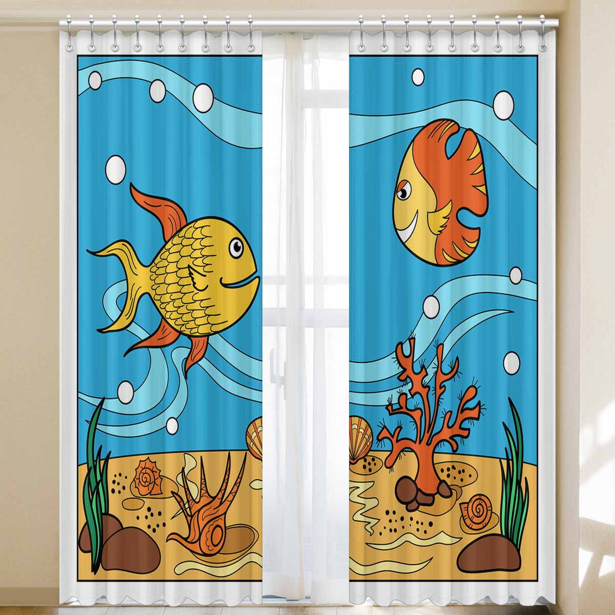 Seaworld Window Curtains print funny tropical fishes corals and shells