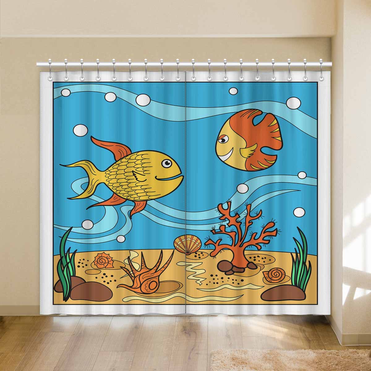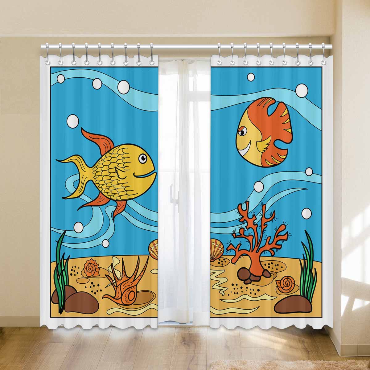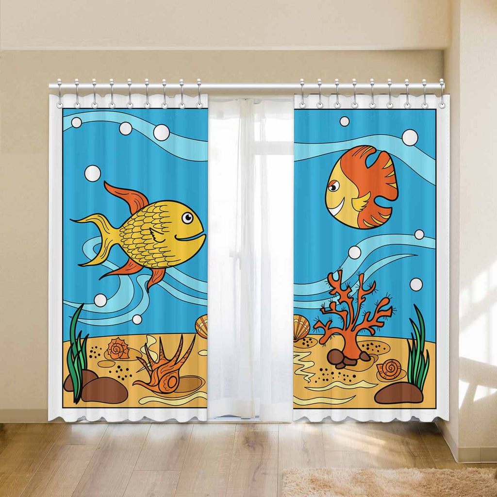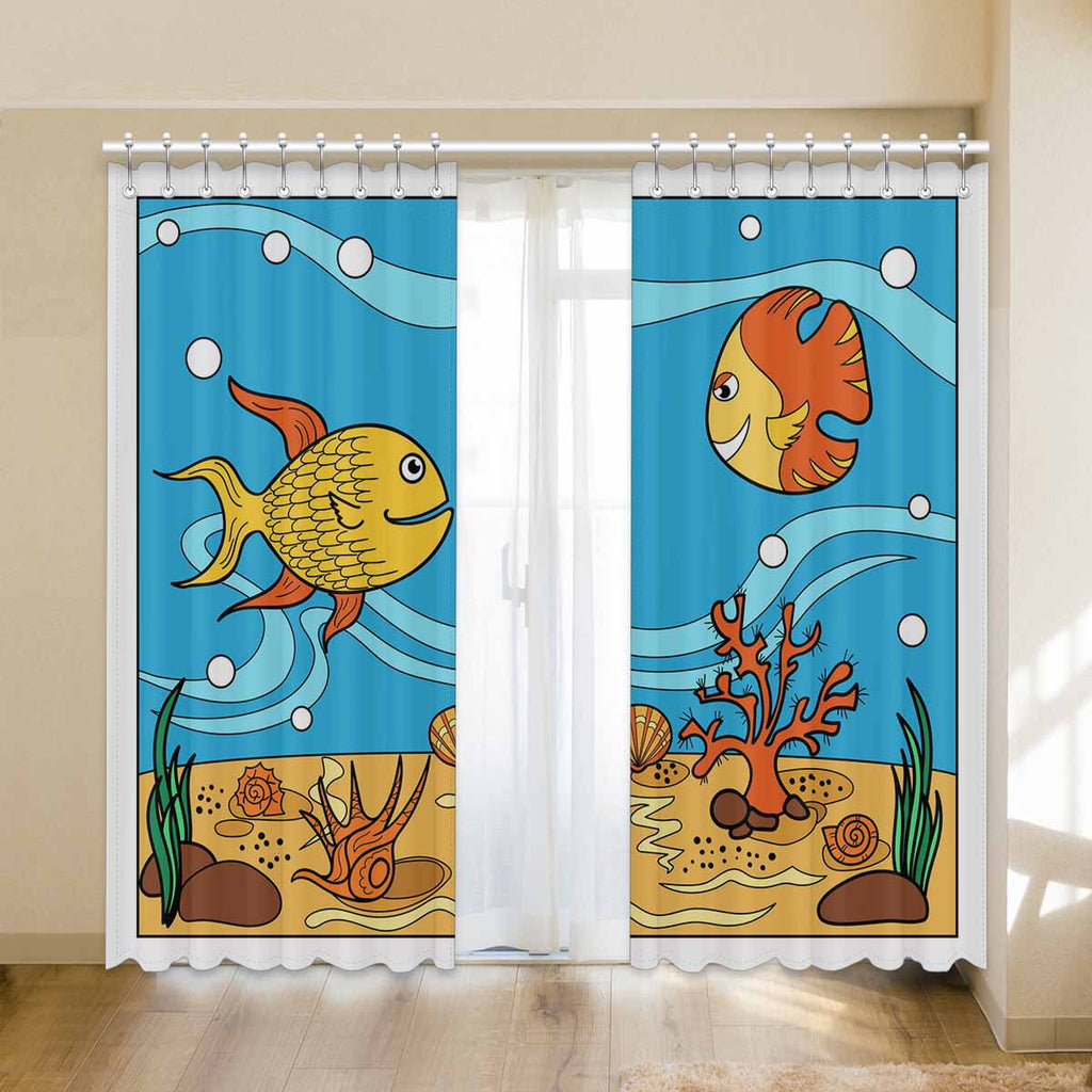 Seaworld Window Curtains print funny tropical fishes corals and shells