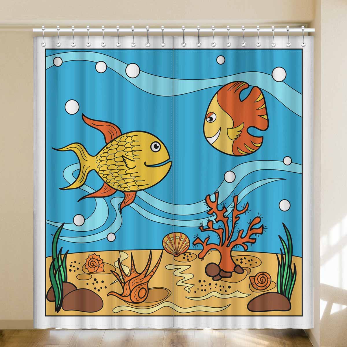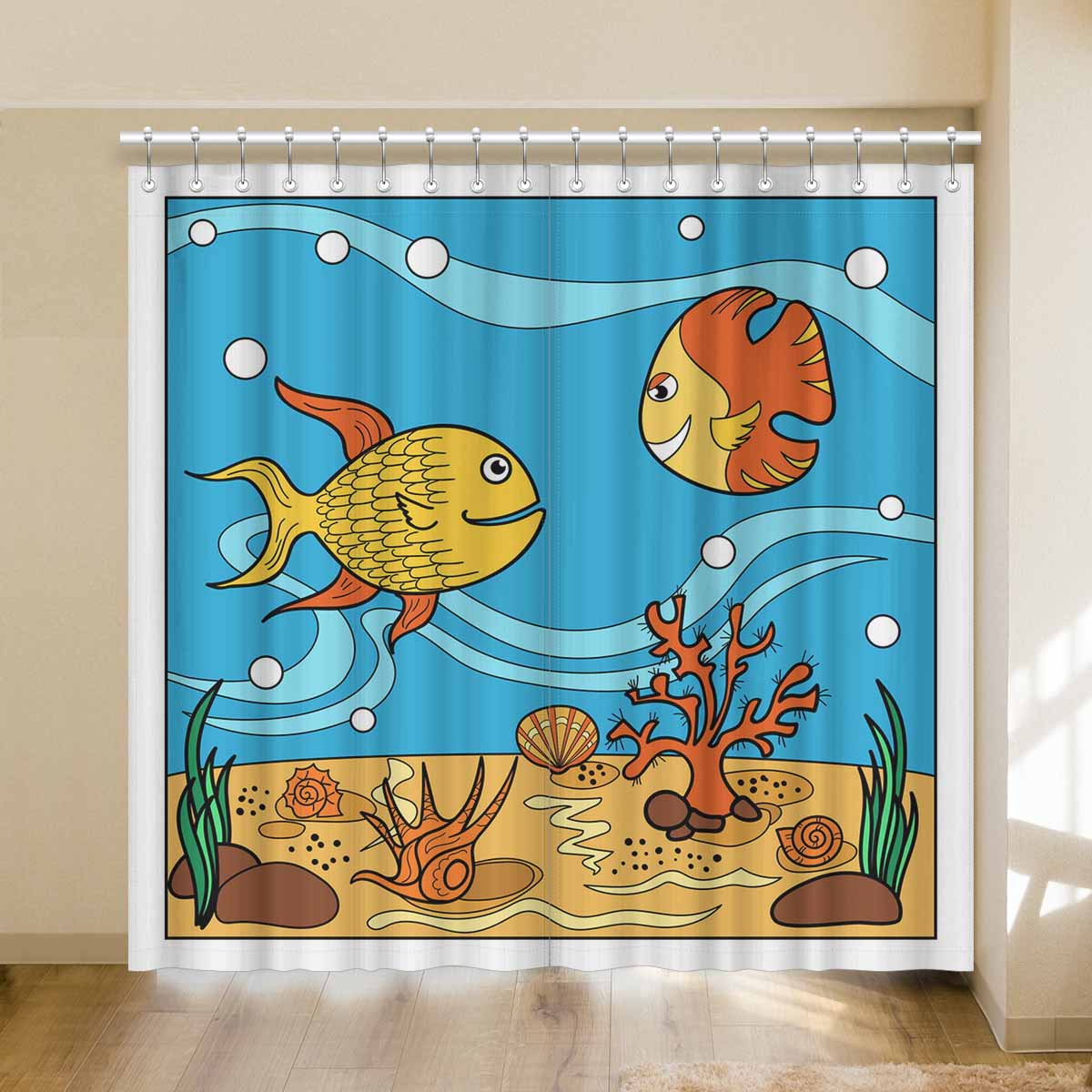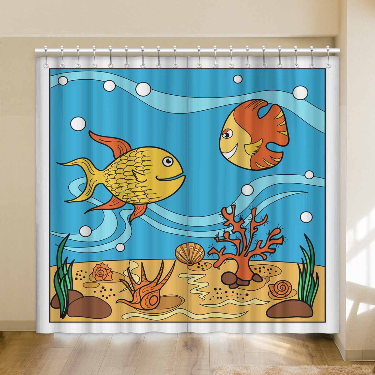 Seaworld Window Curtains print funny tropical fishes corals and shells