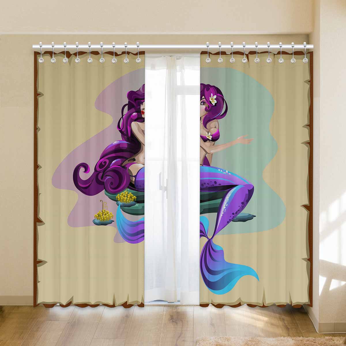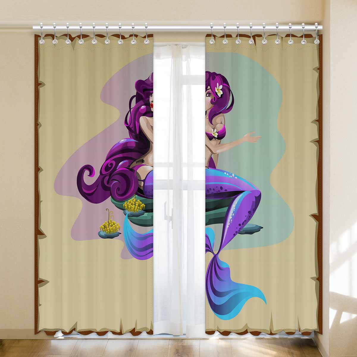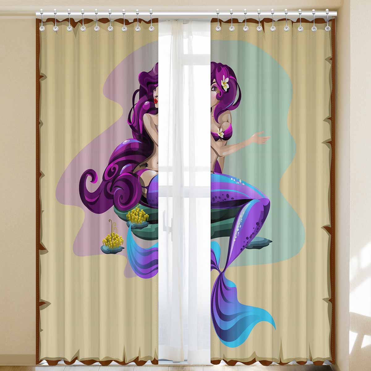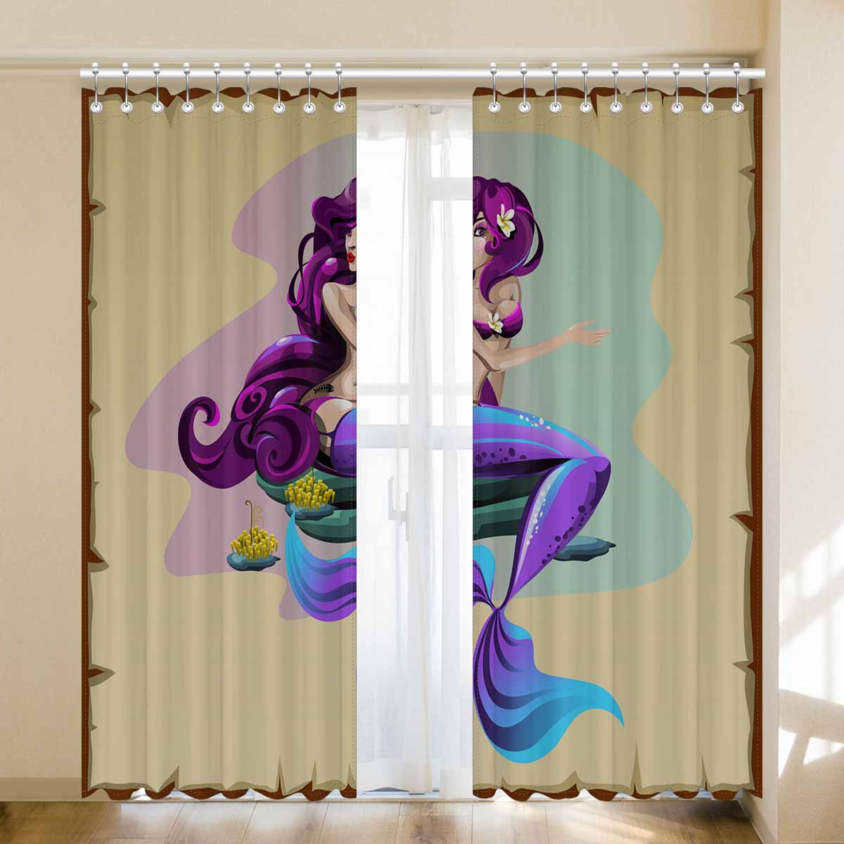 Seaworld Window Curtains print purple Mermaid