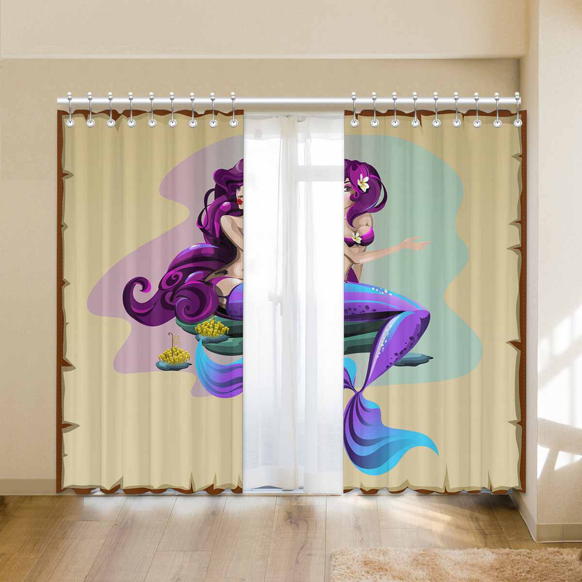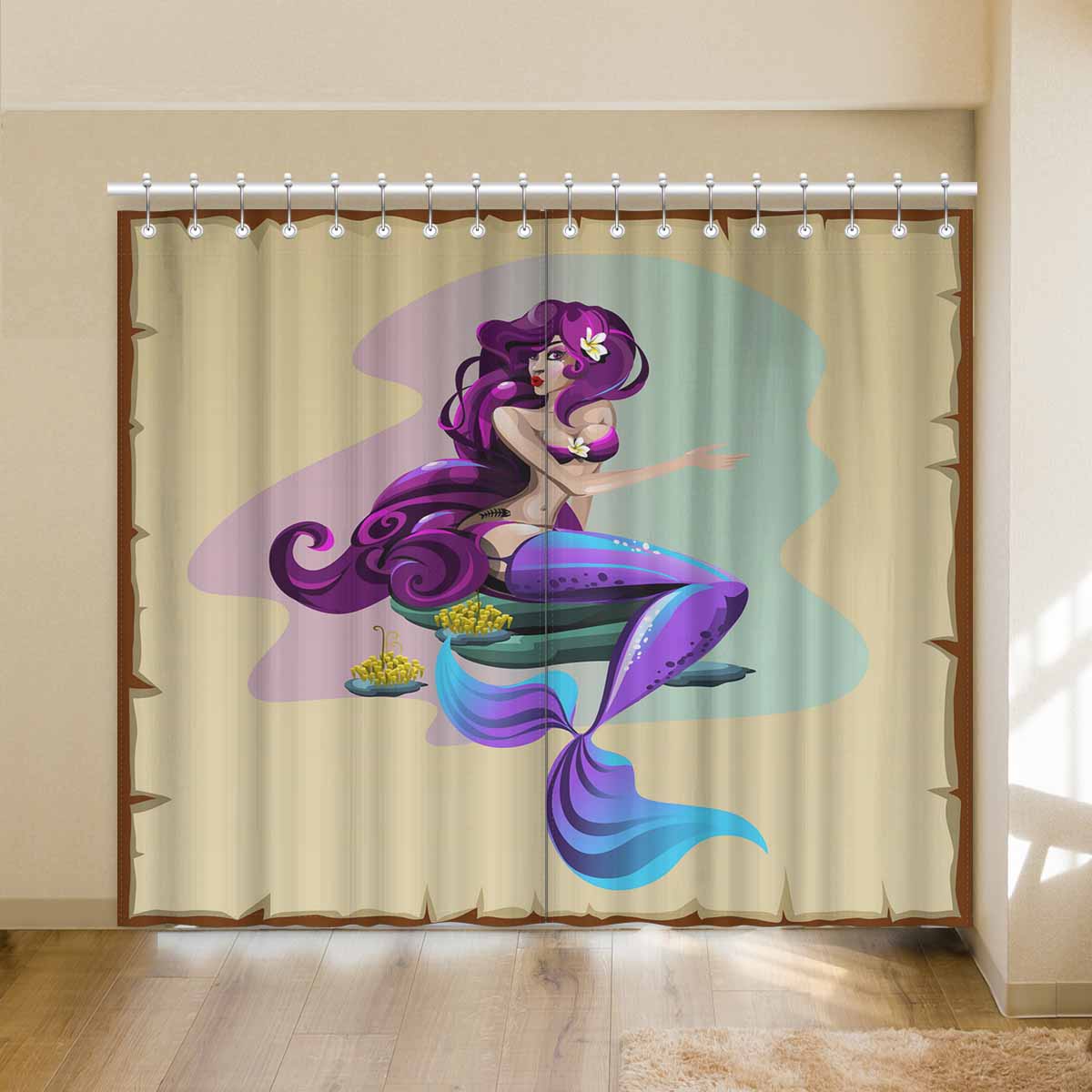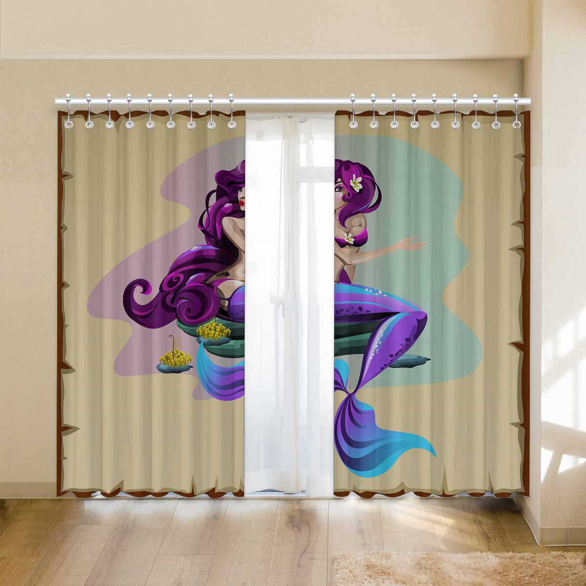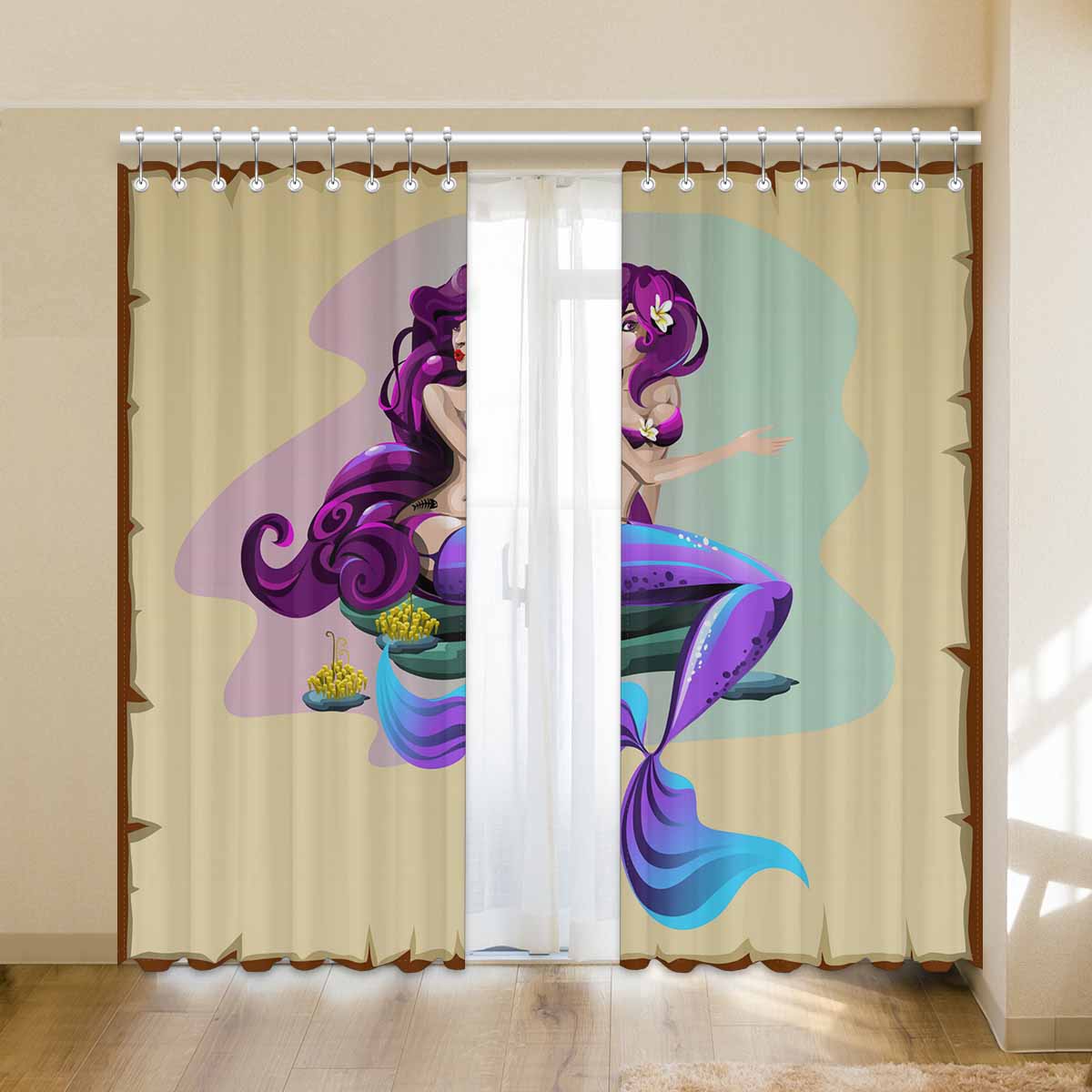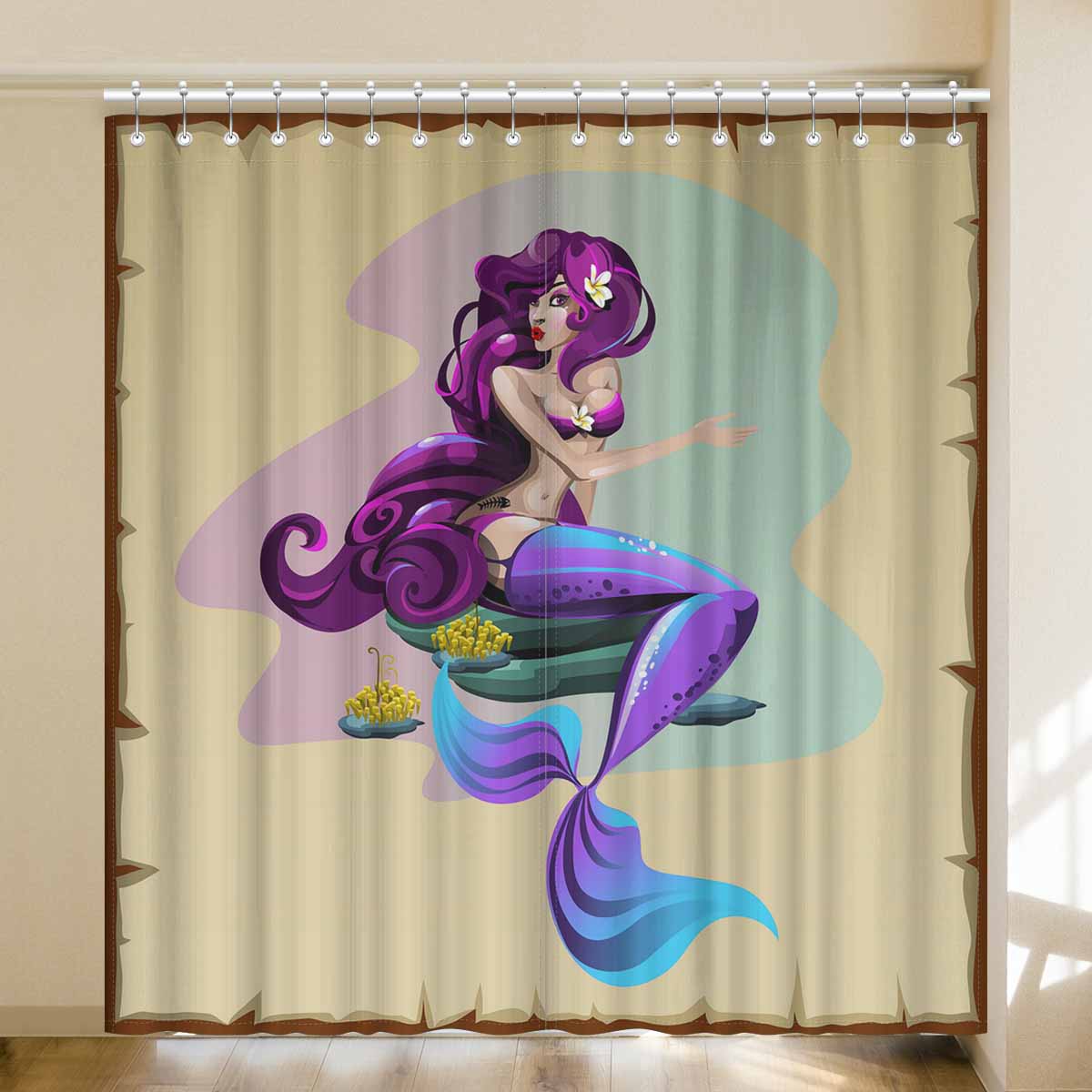 Seaworld Window Curtains print purple Mermaid