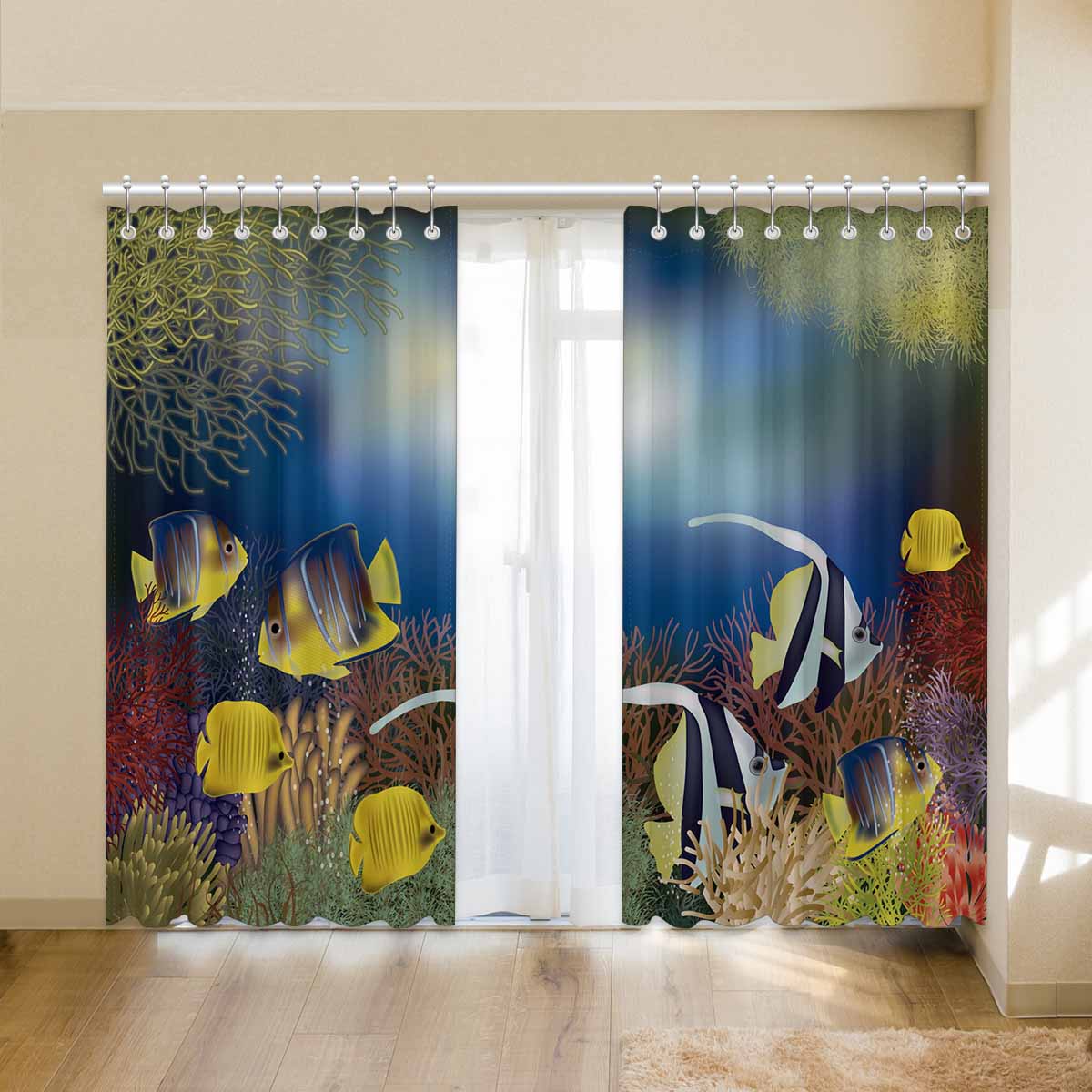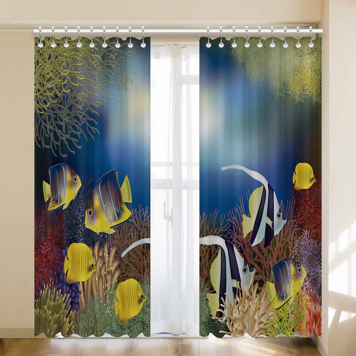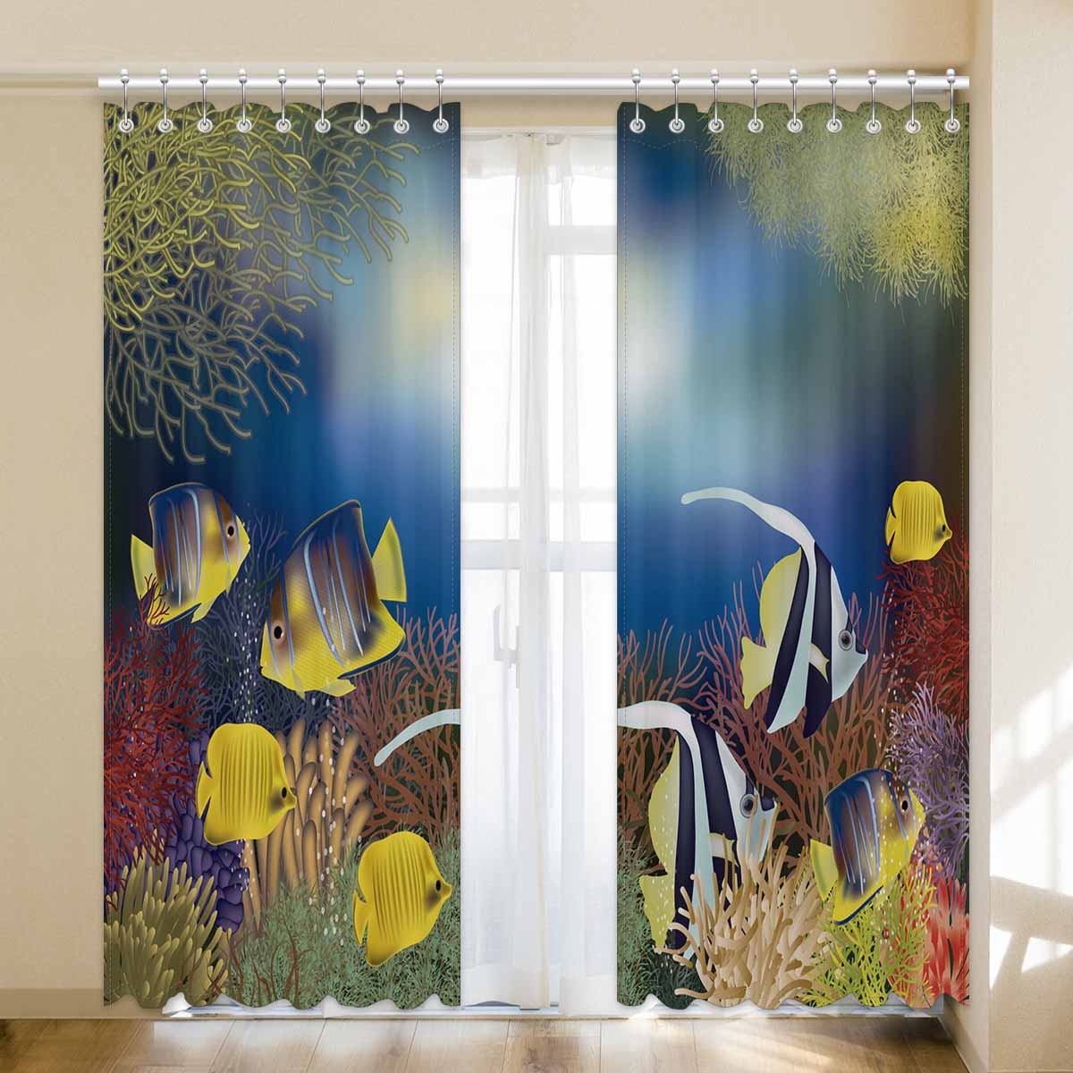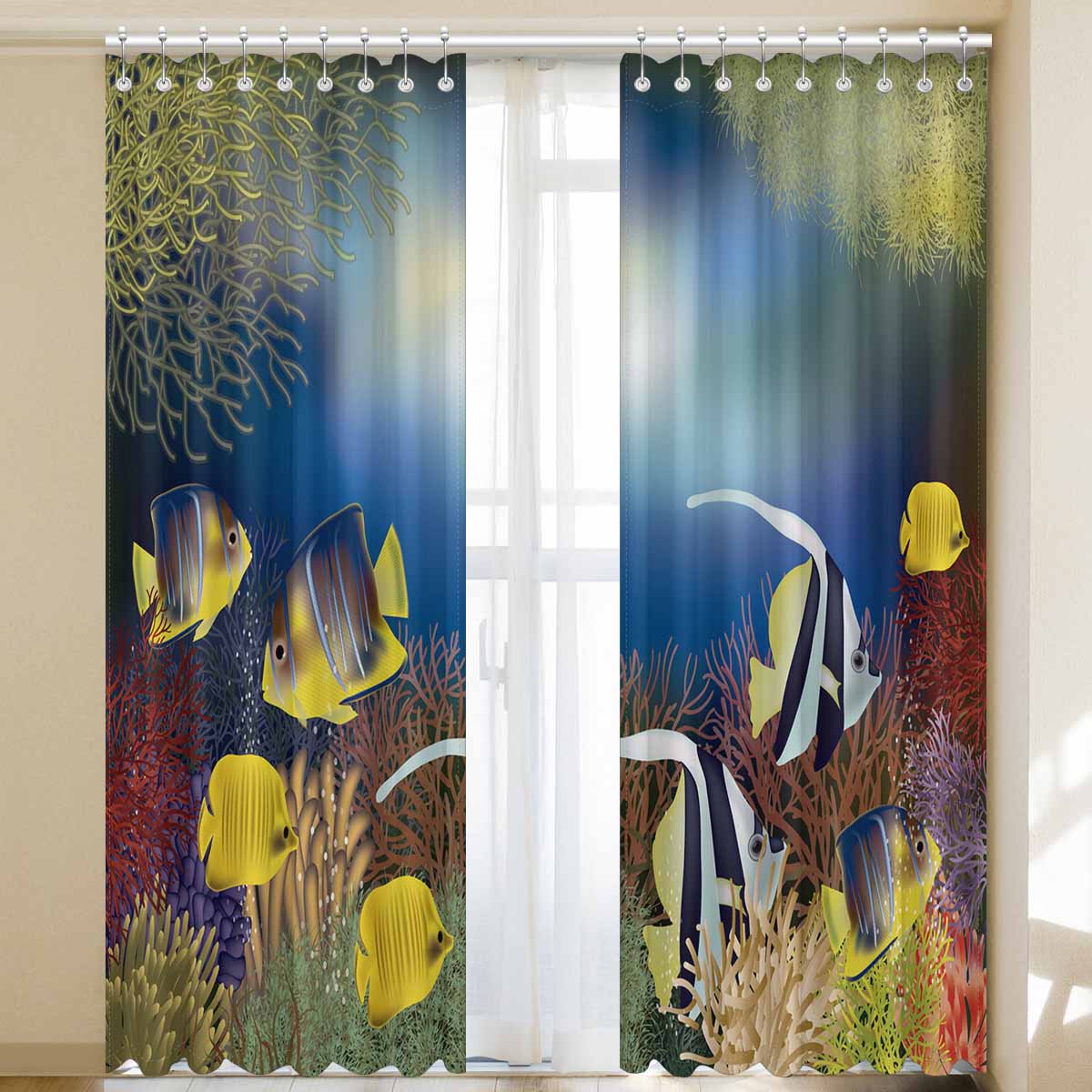 Seaworld Window Curtains print tropical fish pattern