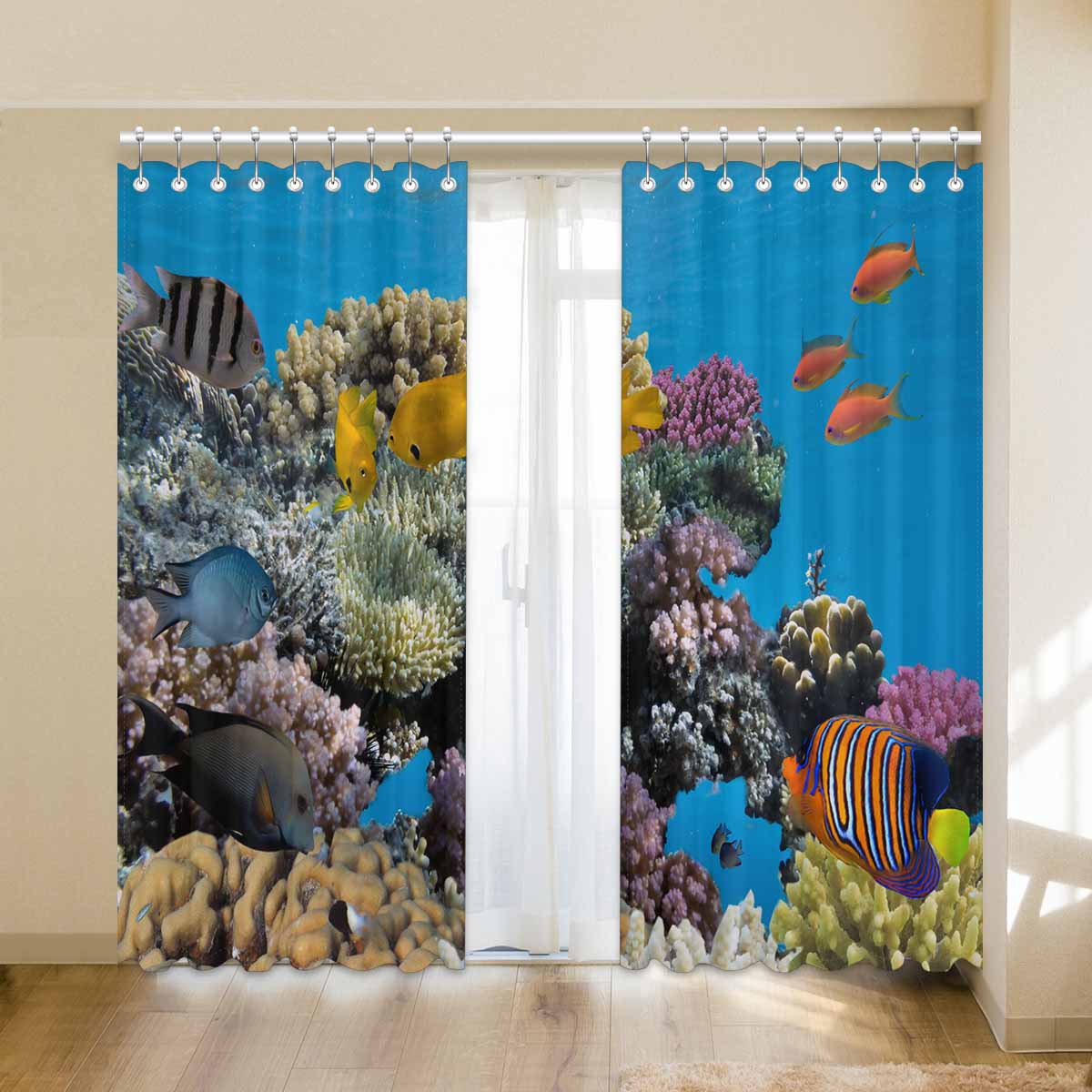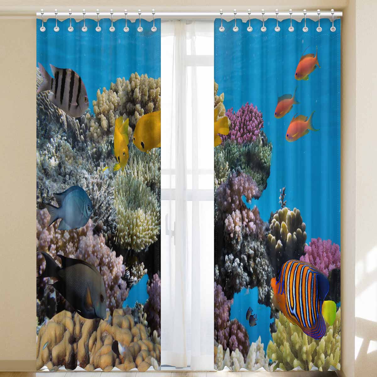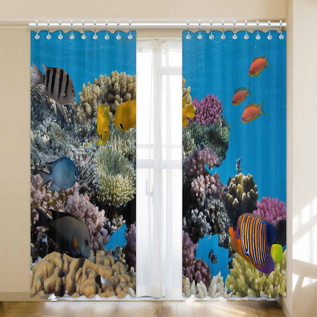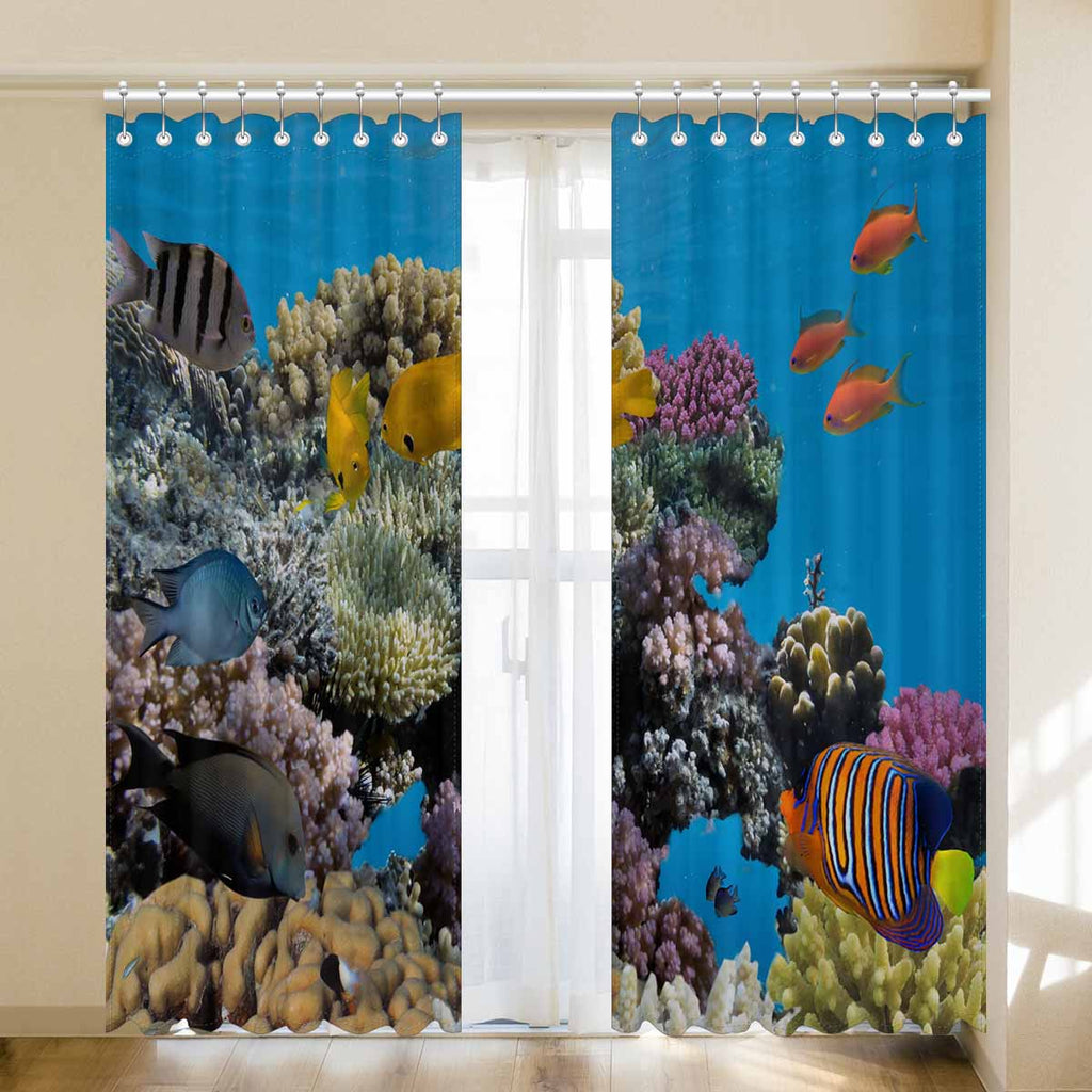 Seaworld Window Curtains print vivid coral fish