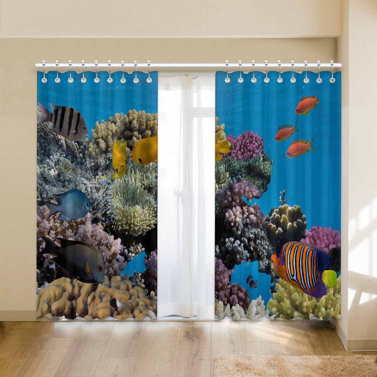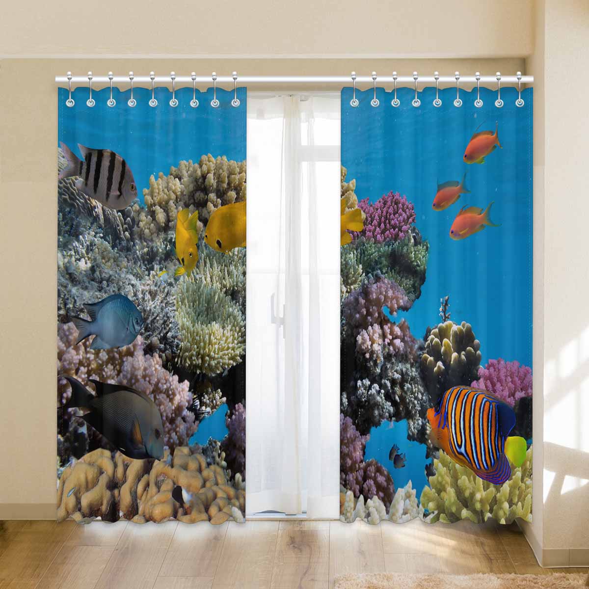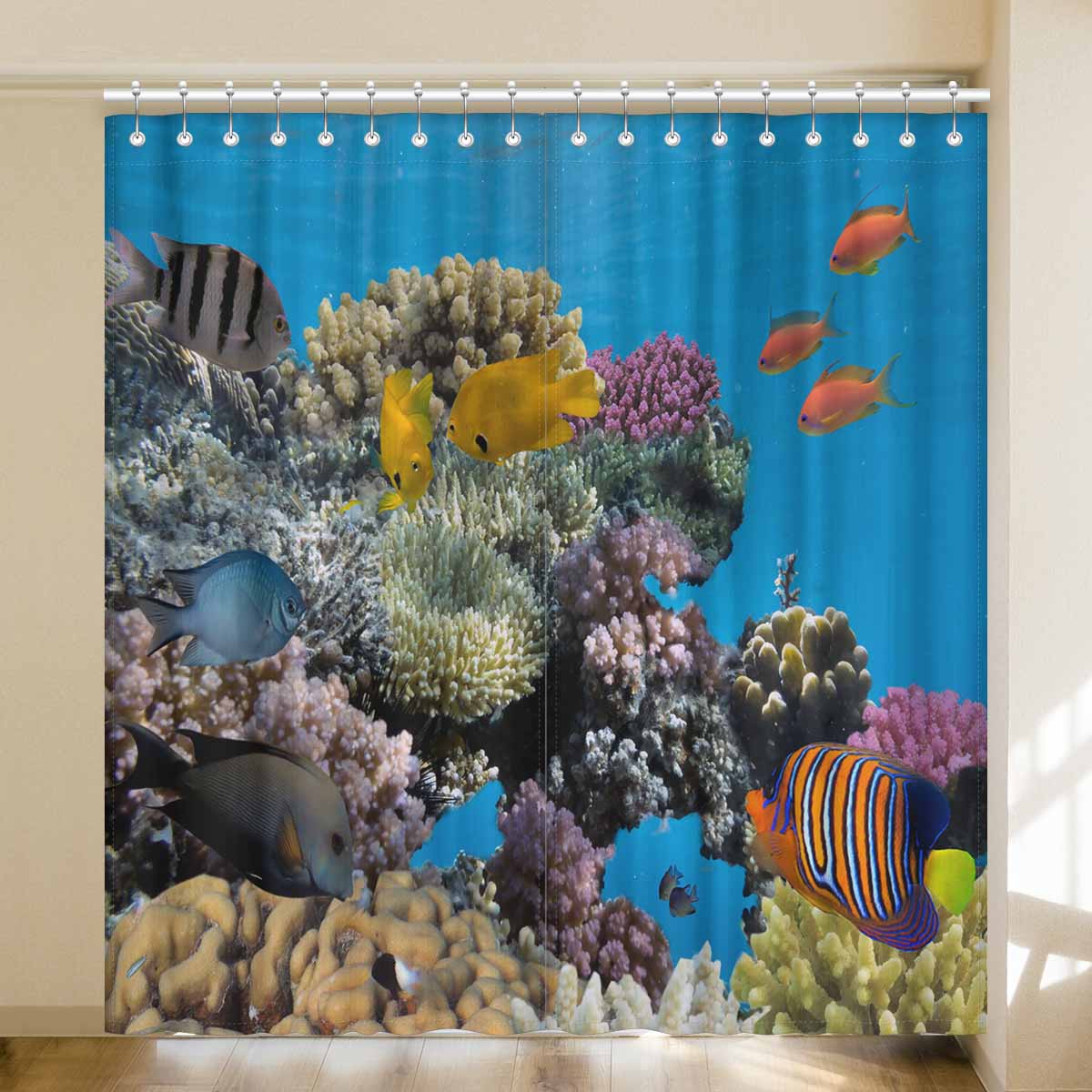 Seaworld Window Curtains print vivid coral fish