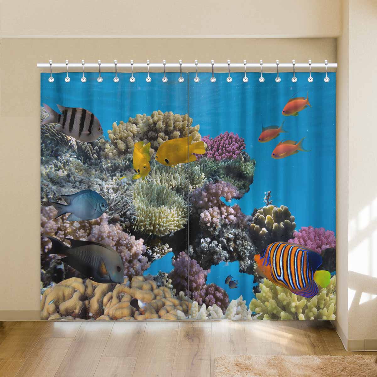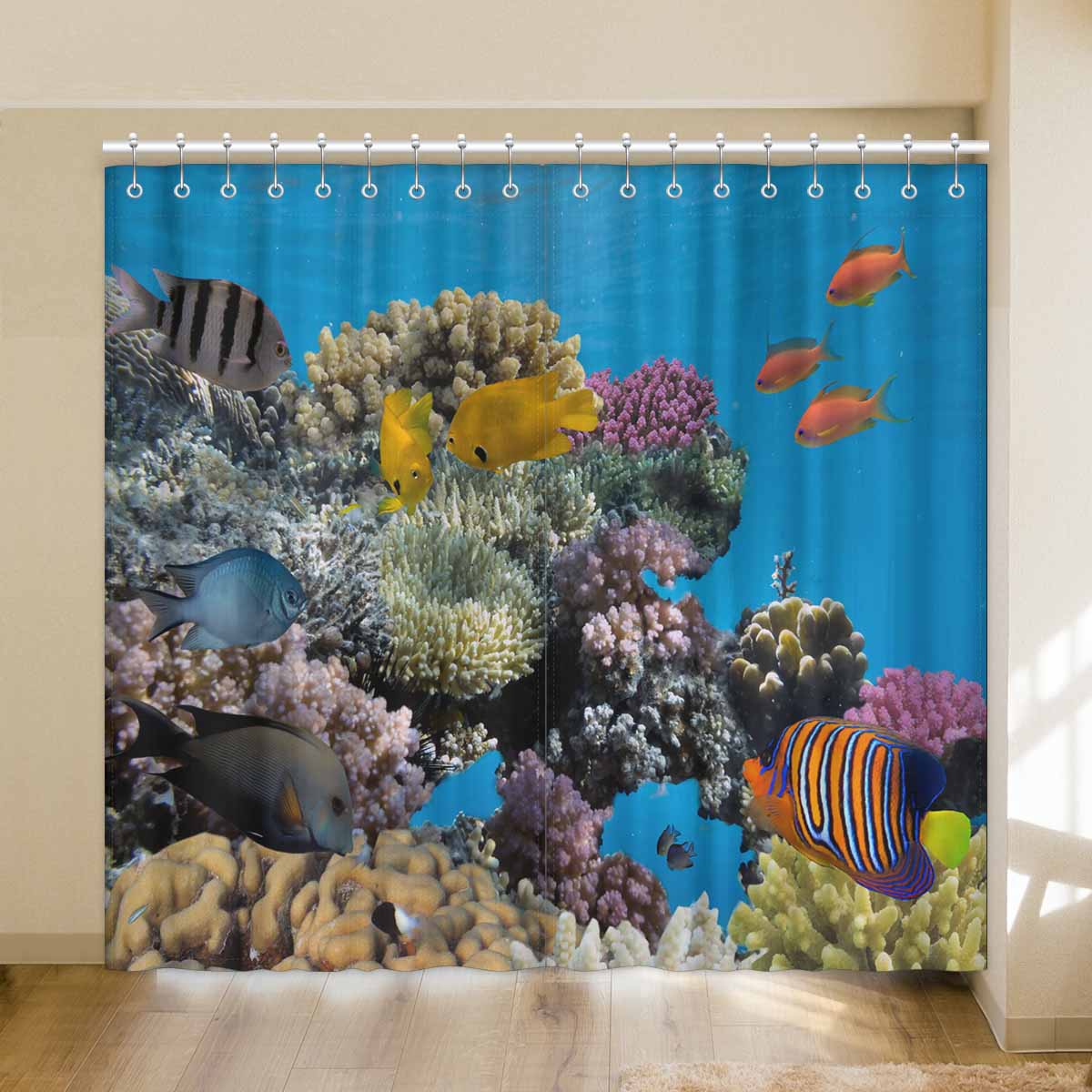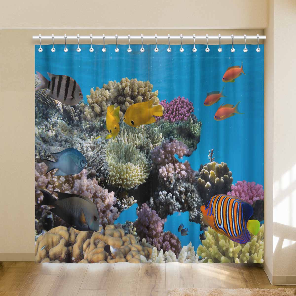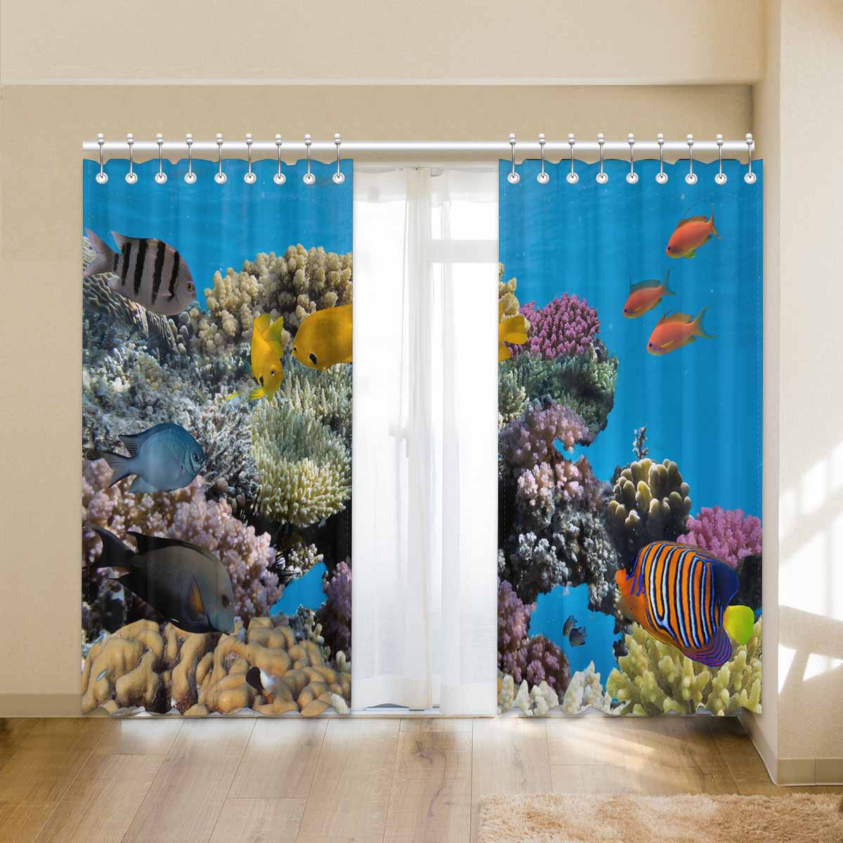 Seaworld Window Curtains print vivid coral fish