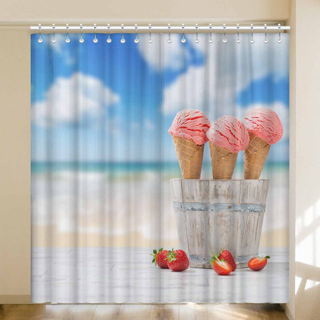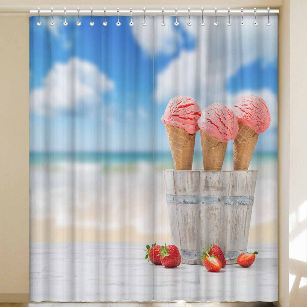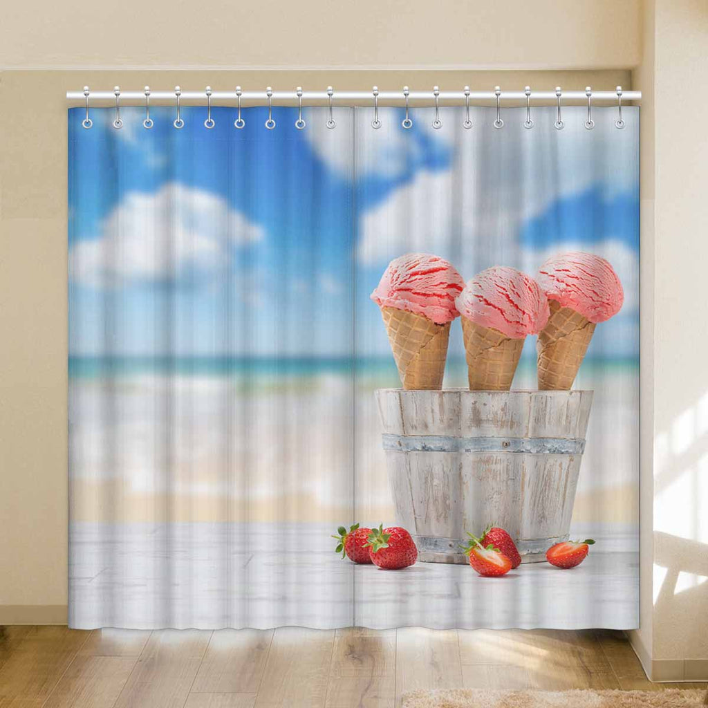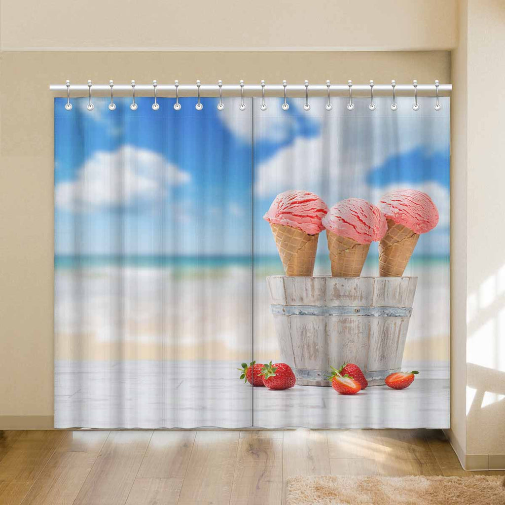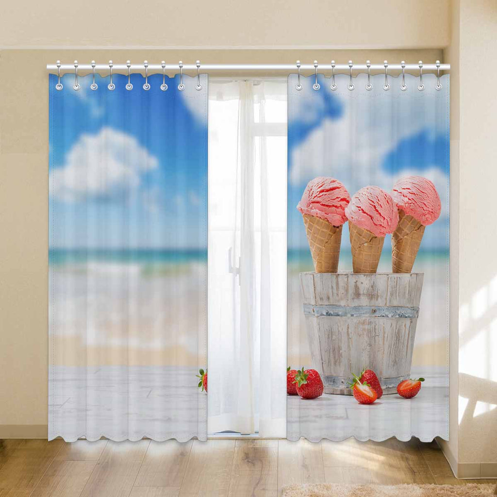 Window Curtains print Strawberry Ice Creams on beach