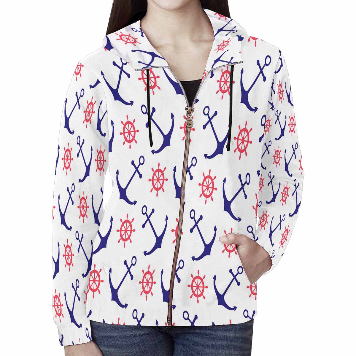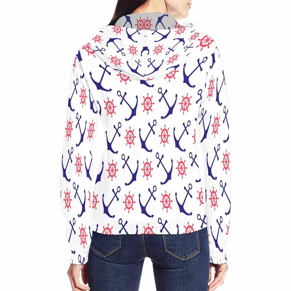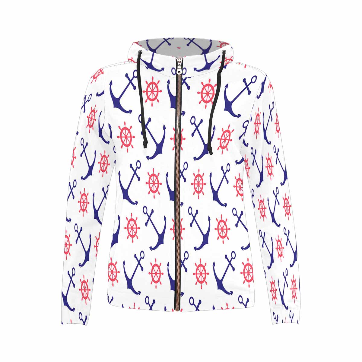Women's Full Zip Hoodies print with colorful Anchor and rudder