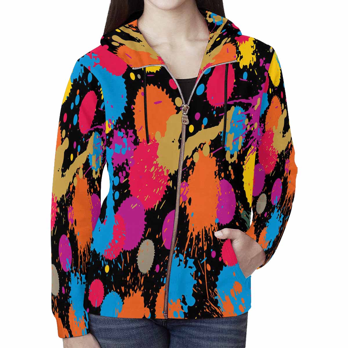 Women's Full Zip Hoodies print with colorful watercolor