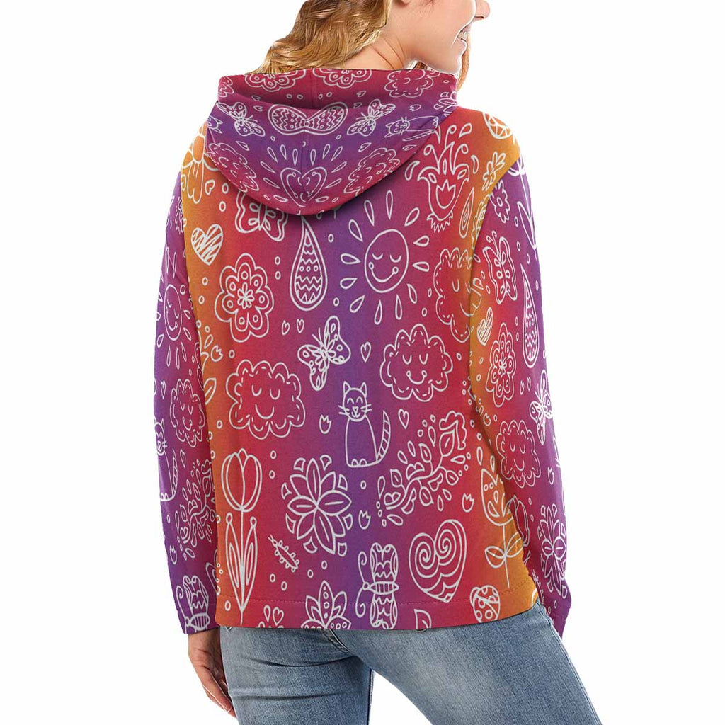 Women's All over print Hoodie with Spring doodles sun flowers animlas