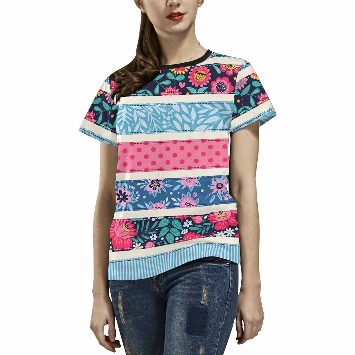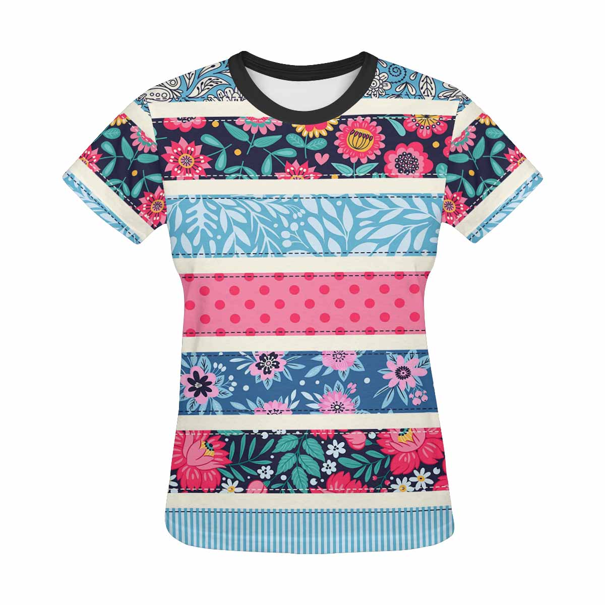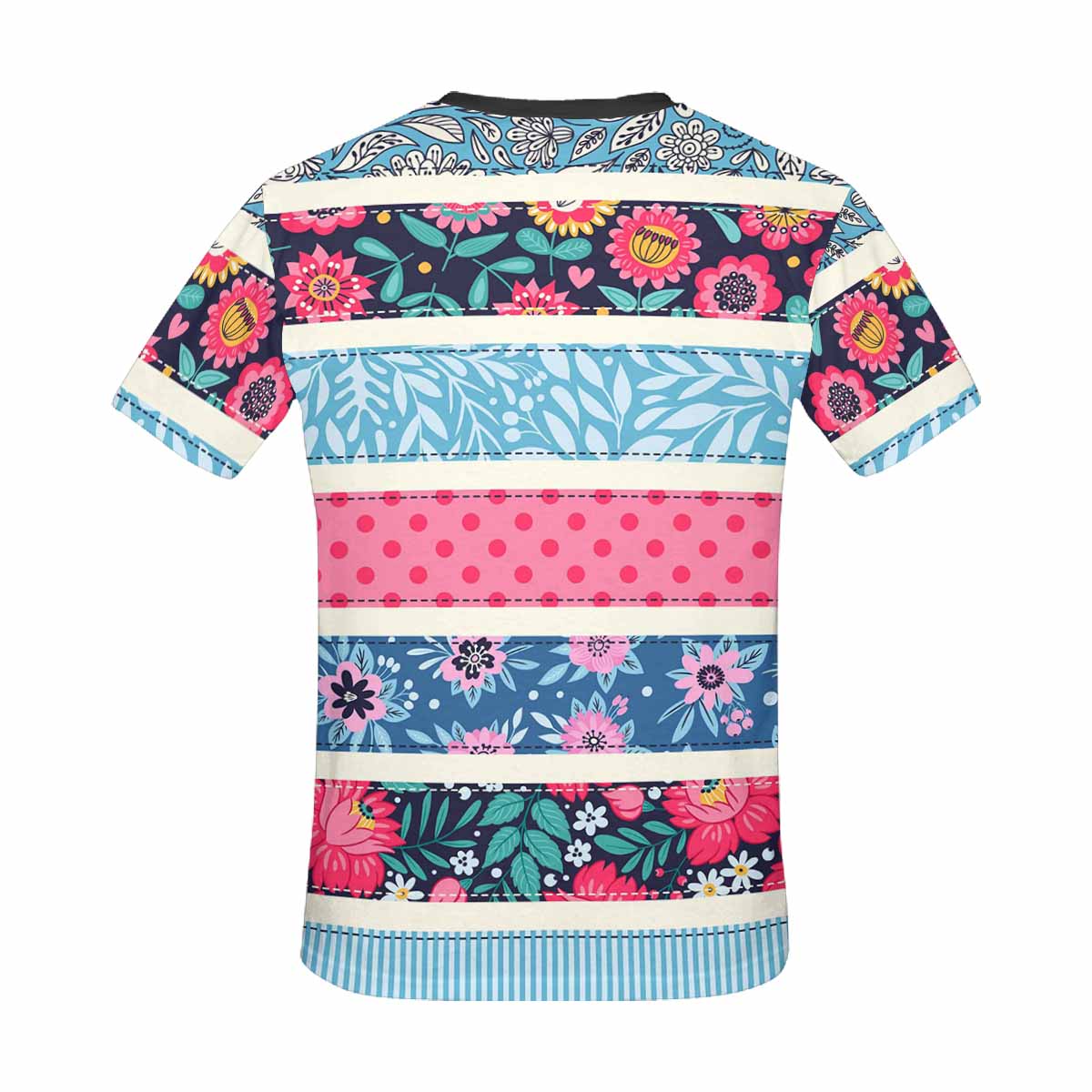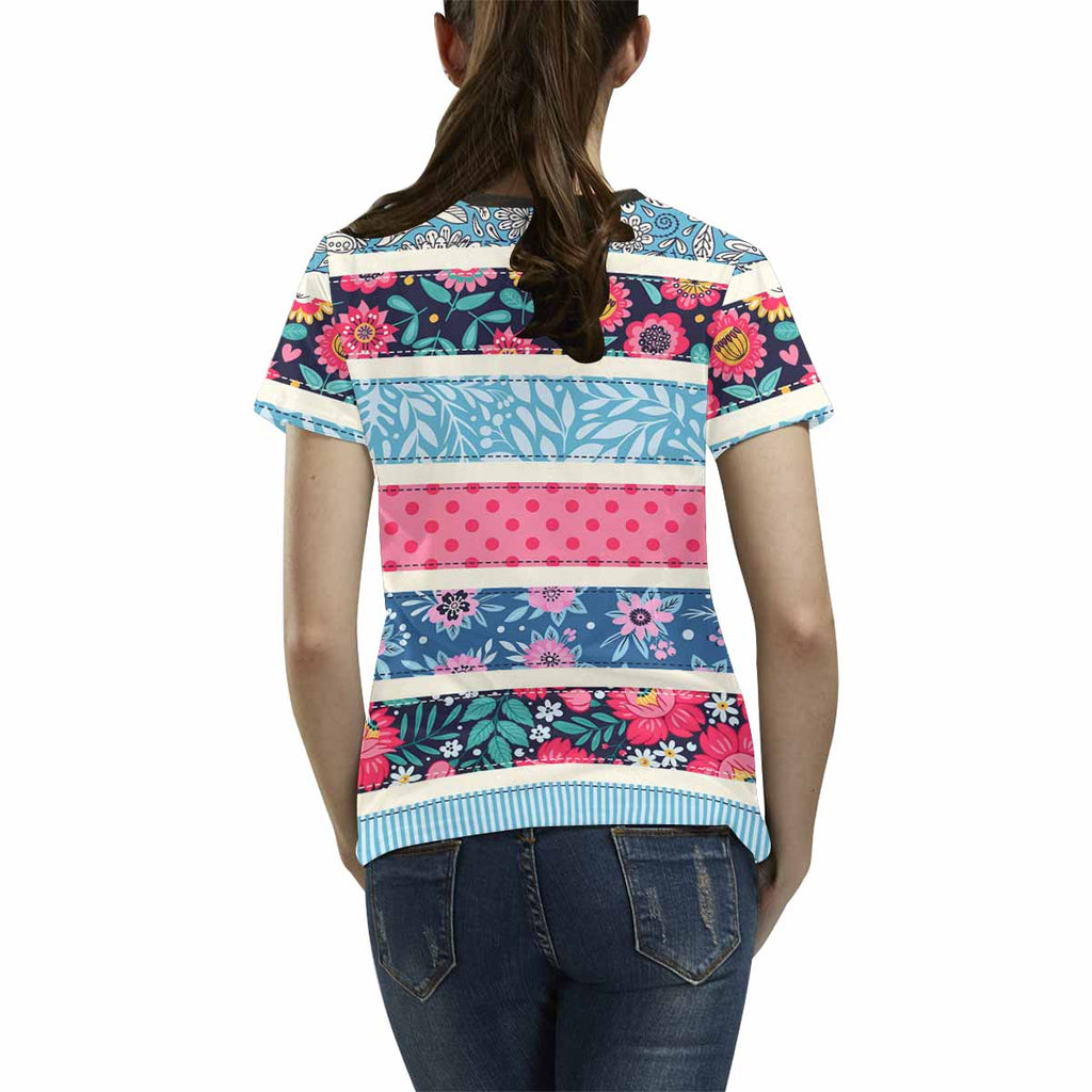 Womens graphic T-Shirts print with Colorful floral stripes pattern