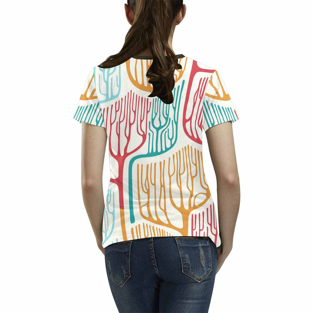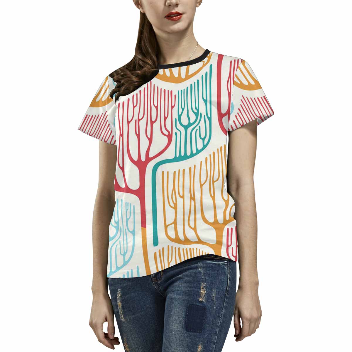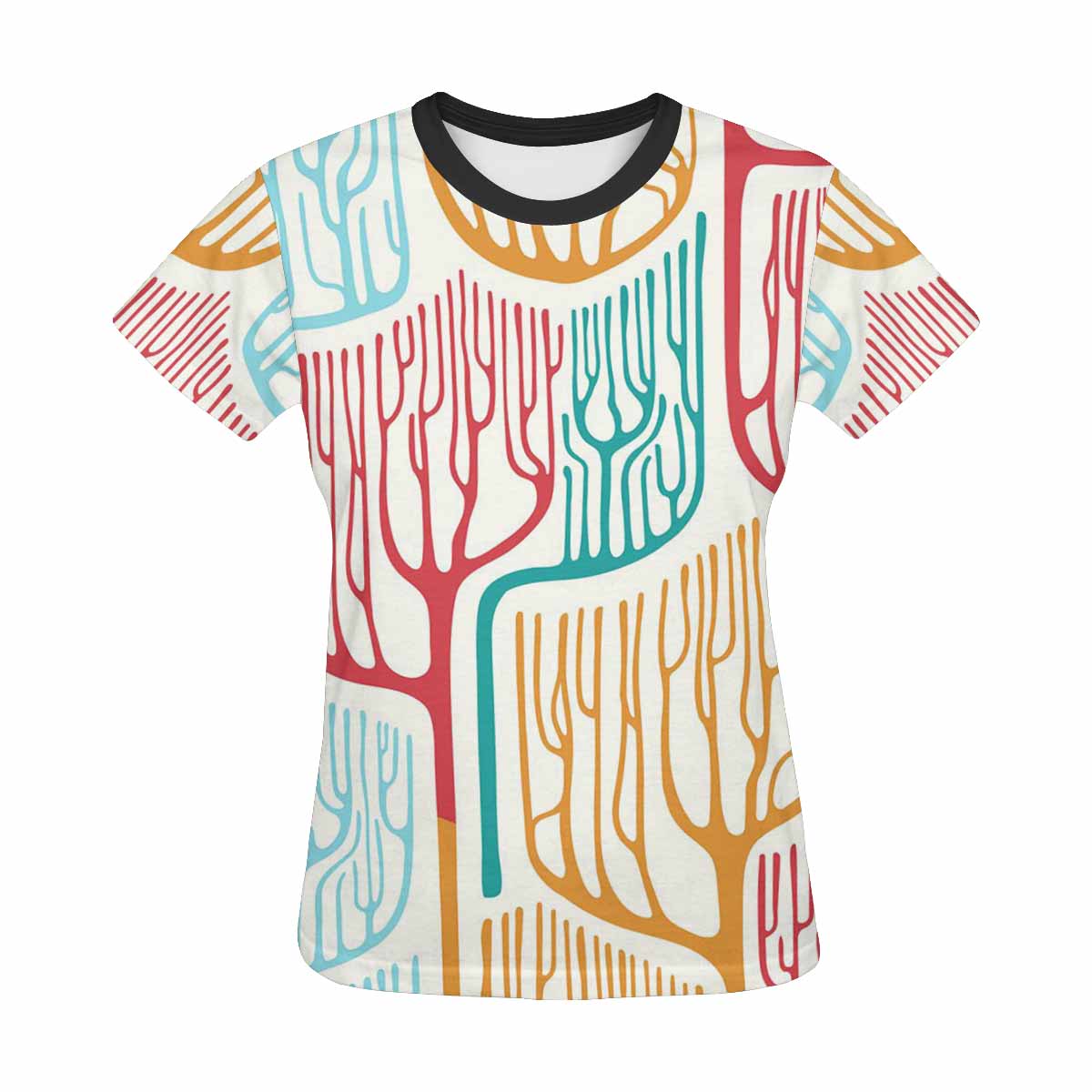Womens graphic T-Shirts print with colorful spring stylized trees pattern
