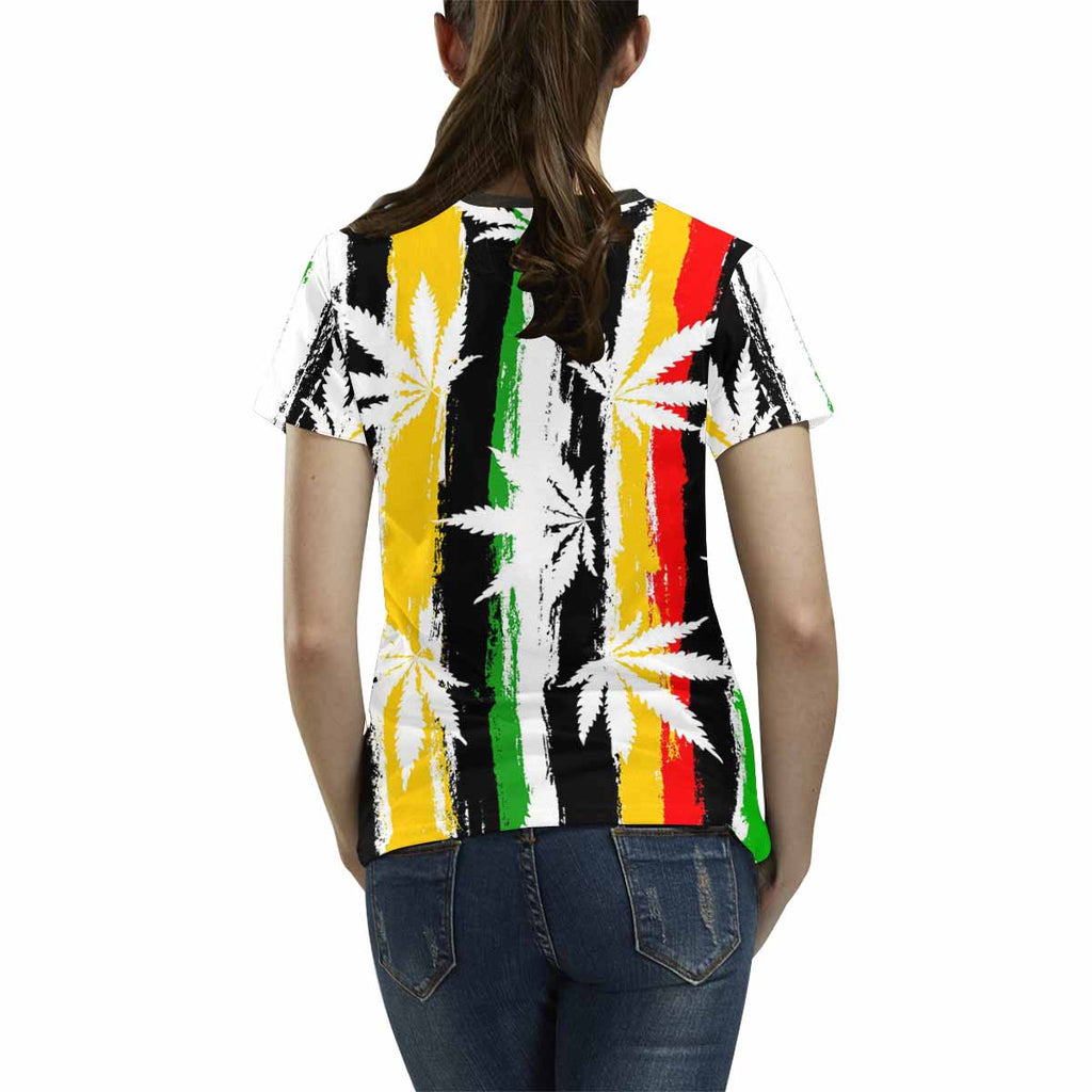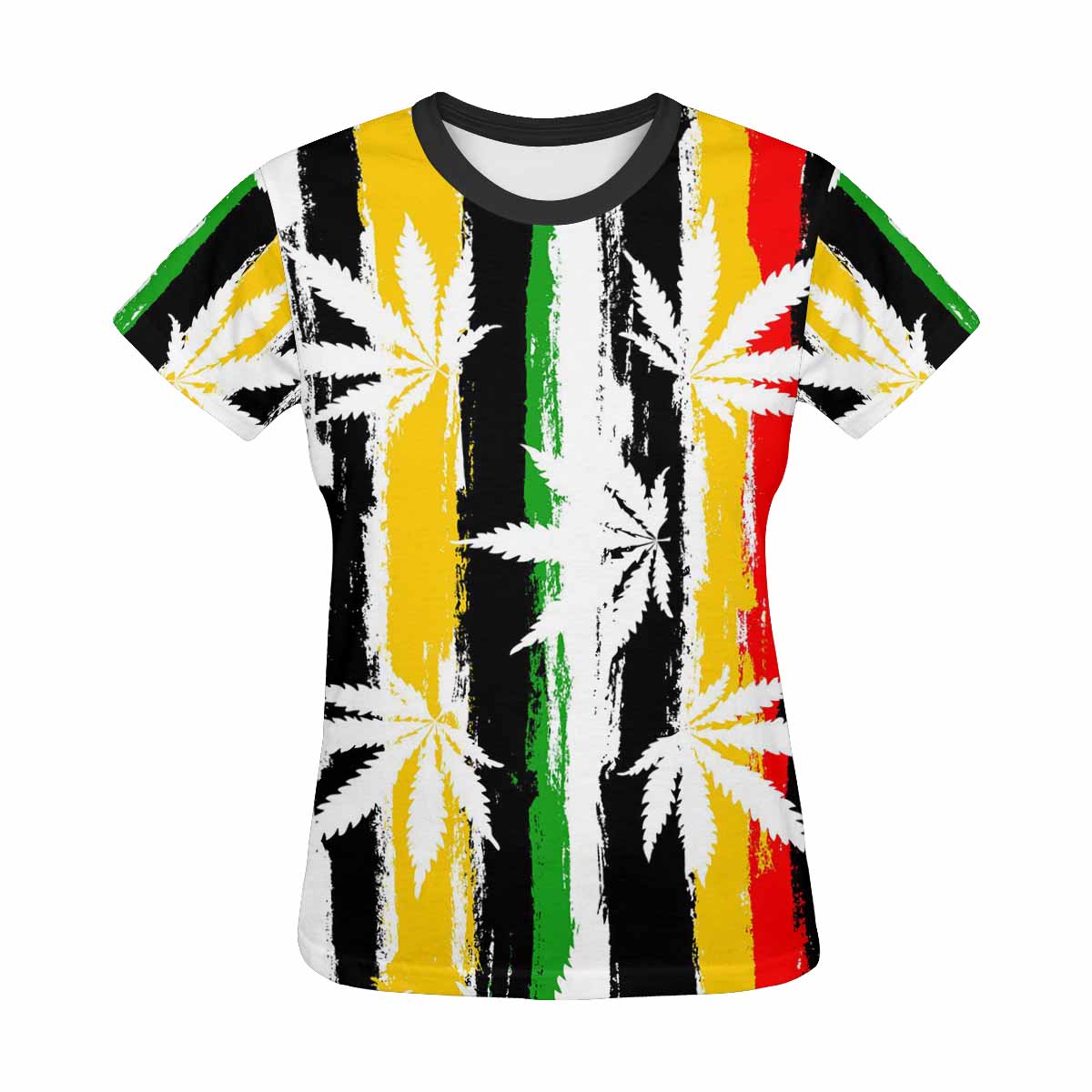 Womens graphic T-Shirts print with colorful strip leaves pattern