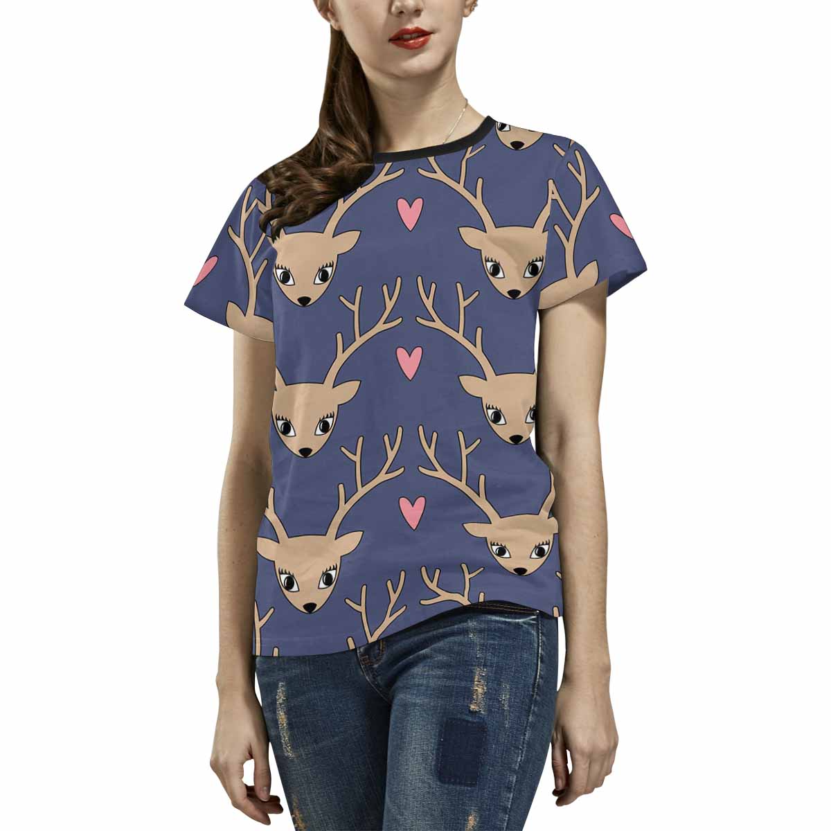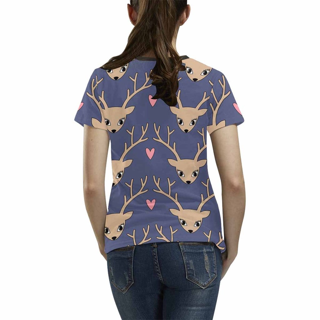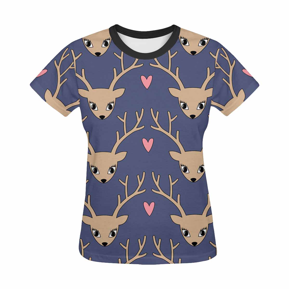 Womens graphic T-Shirts print with Cute deer with heart pattern
