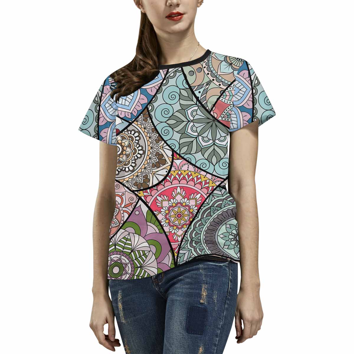 Womens graphic T-Shirts print with graphic tile with mandalas pattern