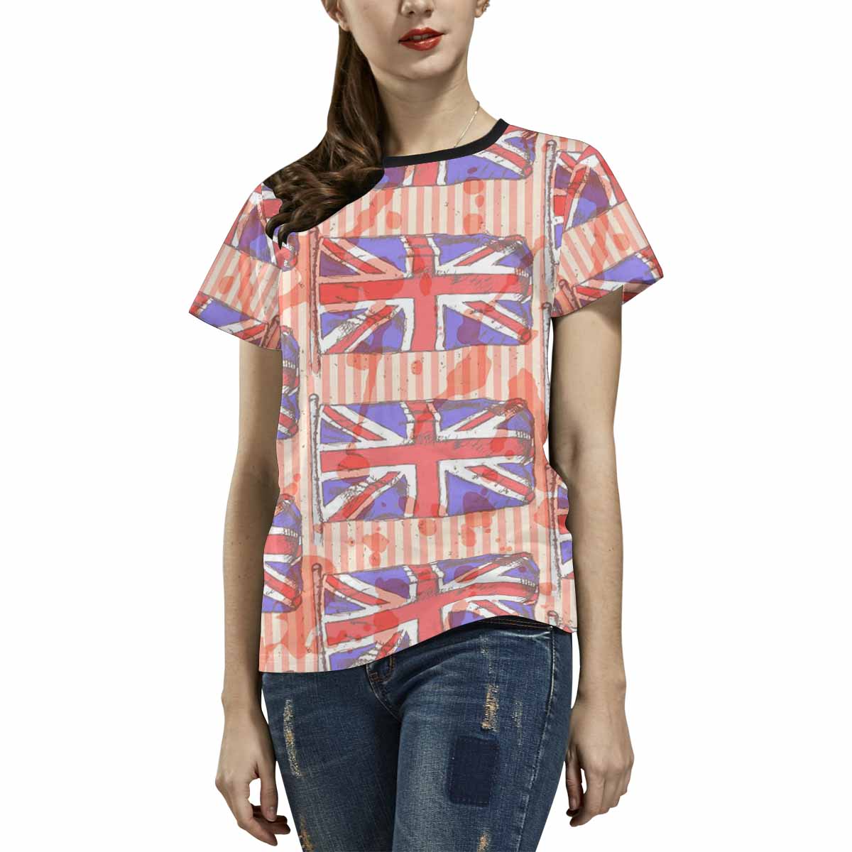 Womens graphic T-Shirts print with retro england flag pattern