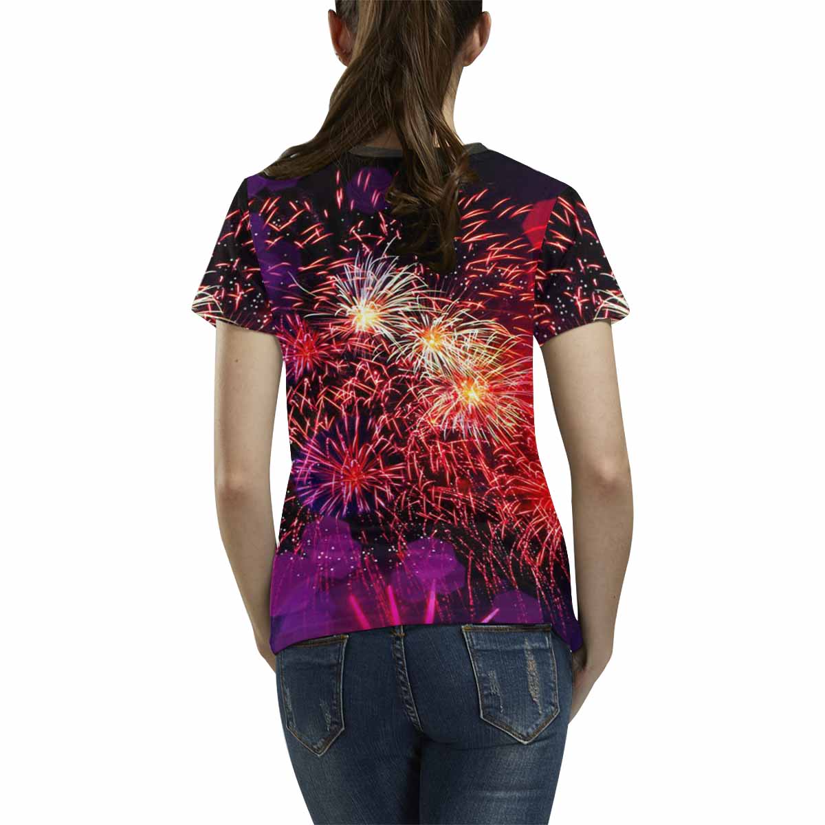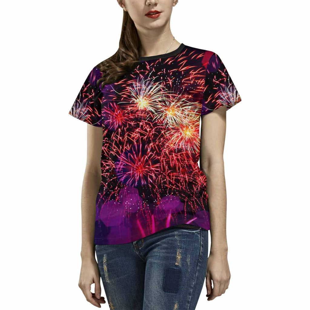 Womens tops t-shirts print with bright fireworks